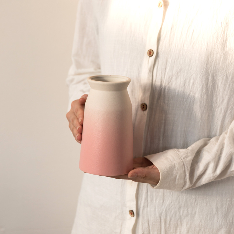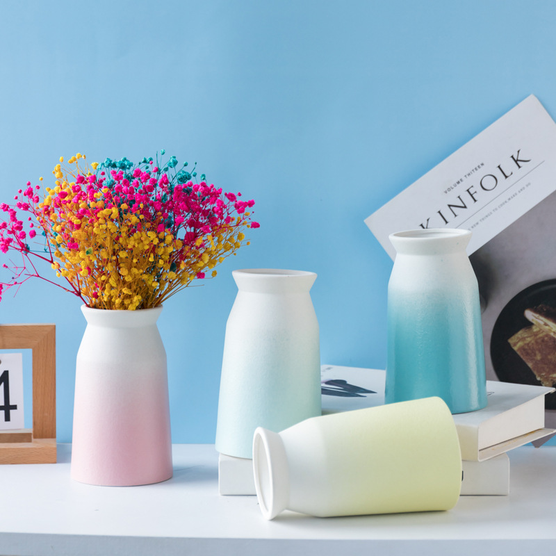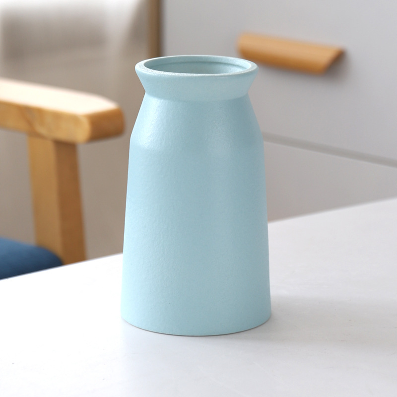 德化磨砂描金陶瓷工艺品花瓶粗陶简约家居摆件欧式复古清新白黄蓝