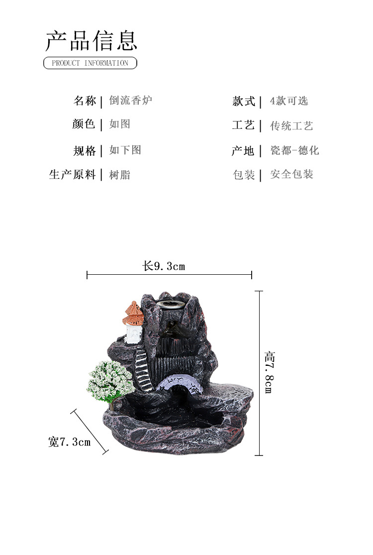 倒流香炉树脂新款创意家居办公室薰香炉香道摆件厂家跨境一件代发