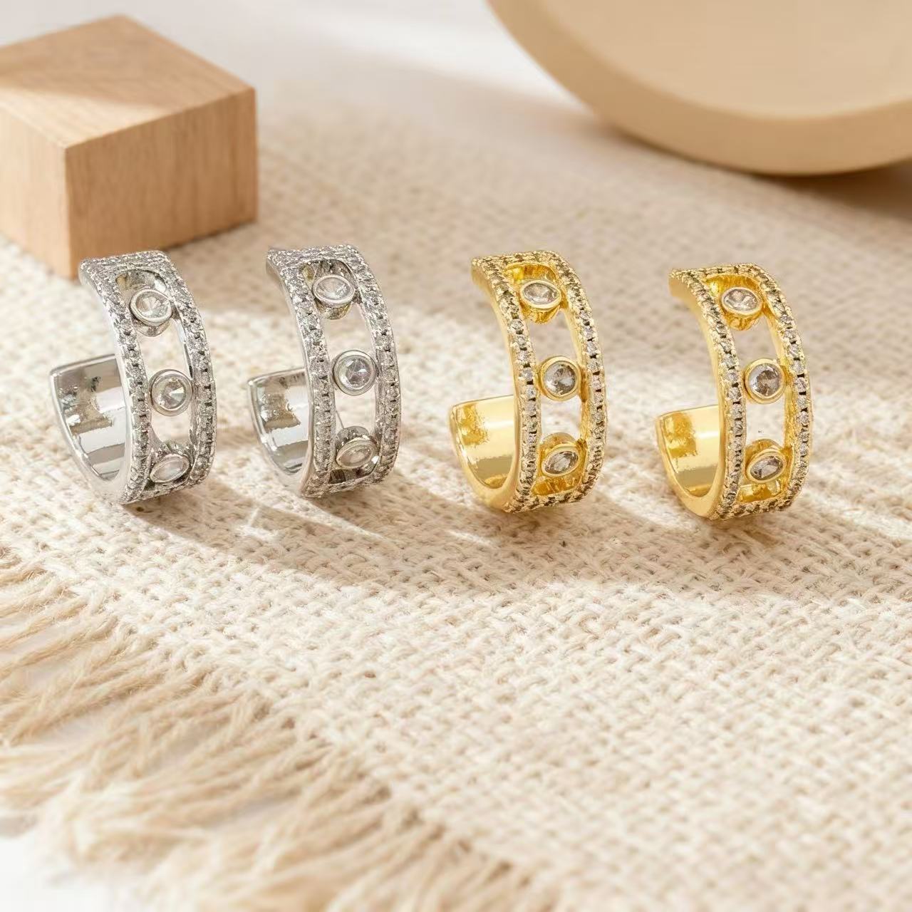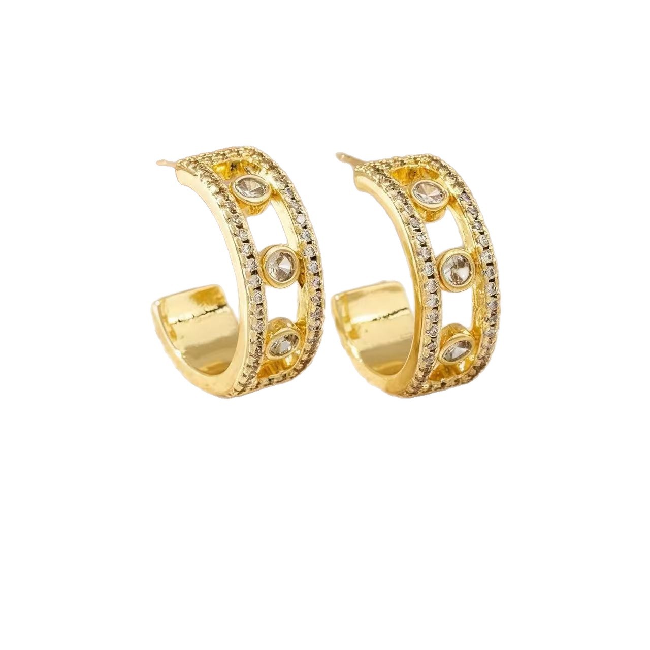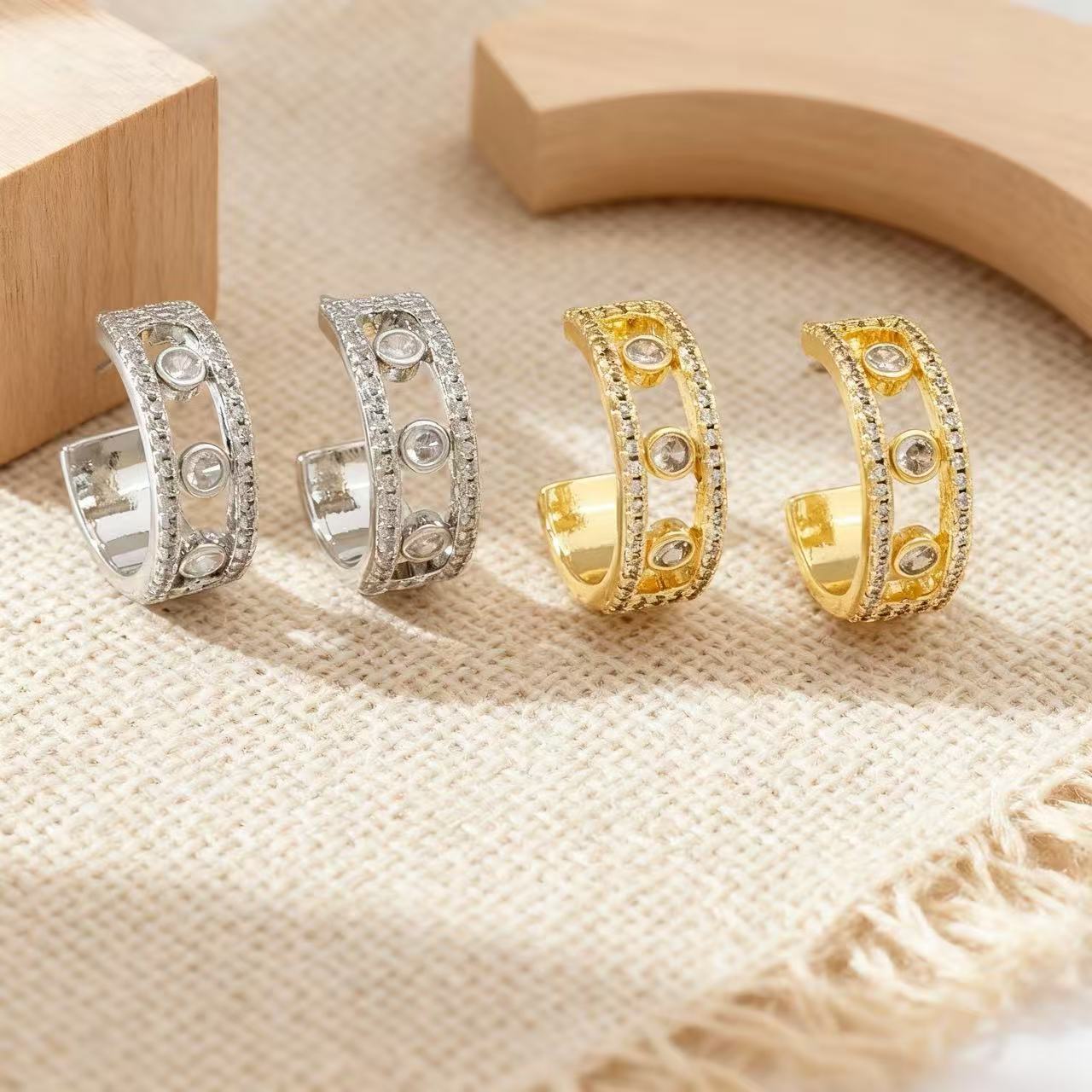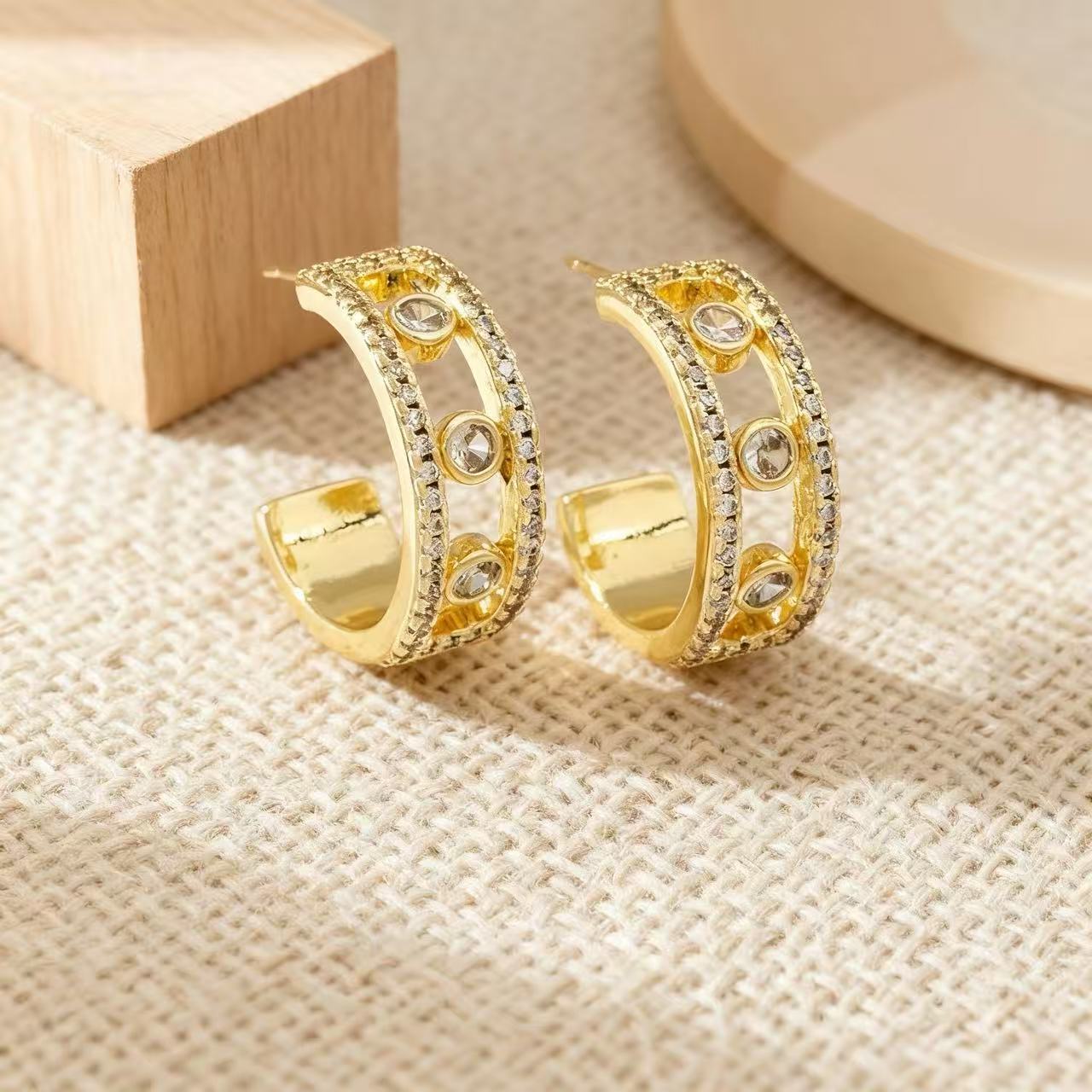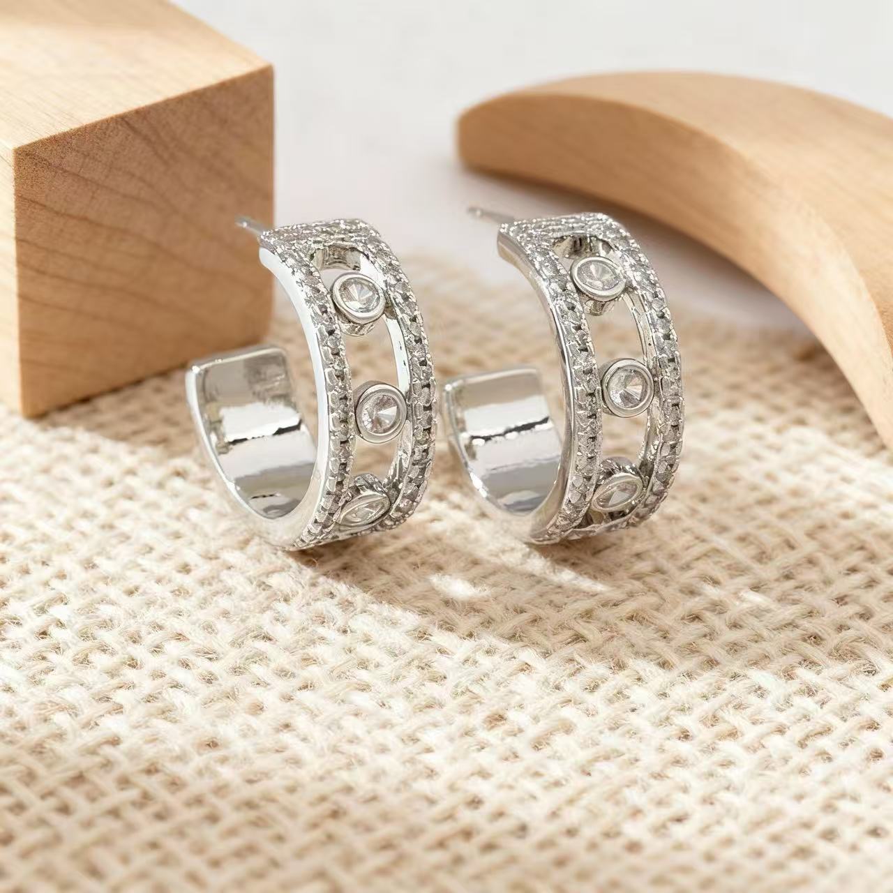 精工高版本轻奢时尚秋冬款耳环镶镂空设计锆石镶钻小巧精致耳饰品