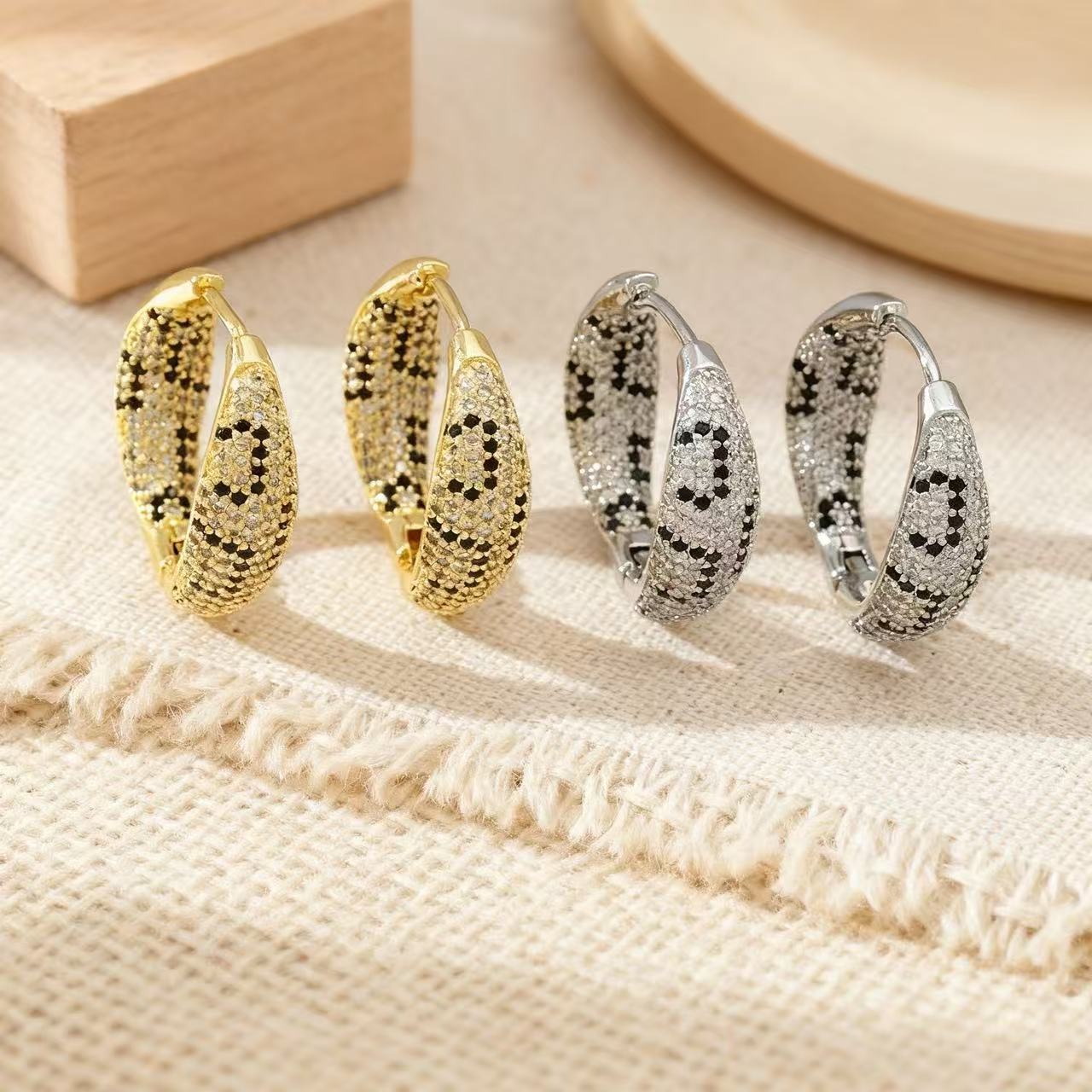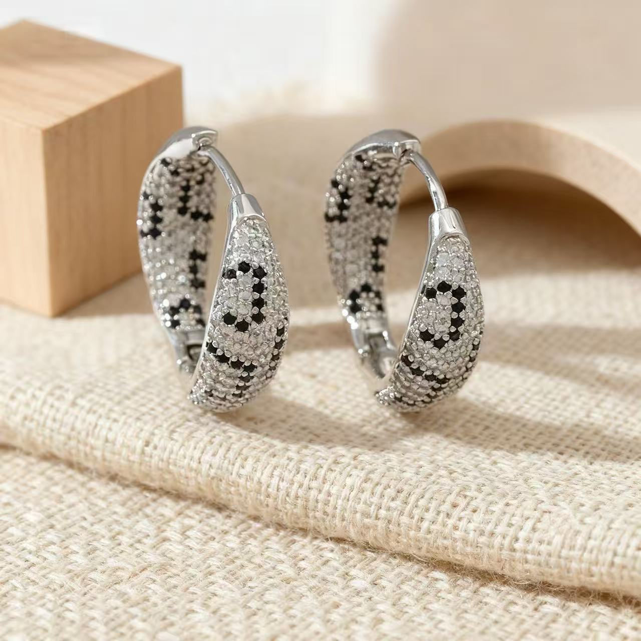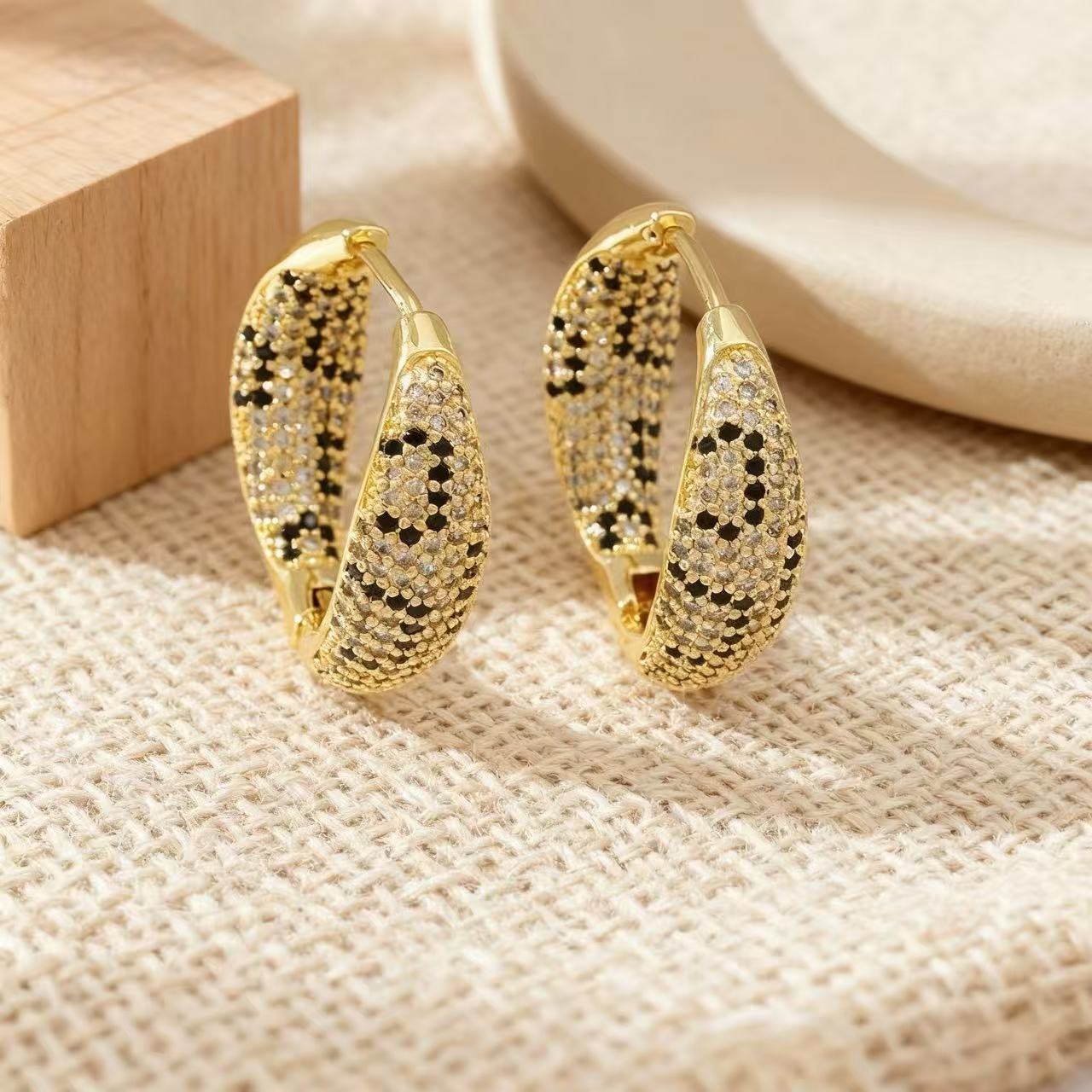 欧美风跨境小众豹纹耳圈高级感微镶锆石耳圈满钻豹纹图案轻奢气质