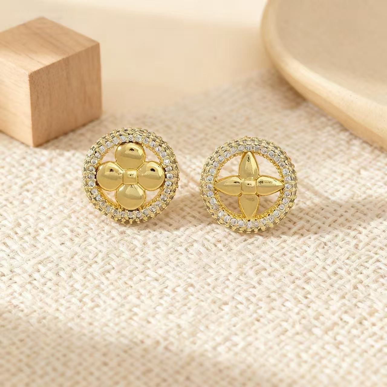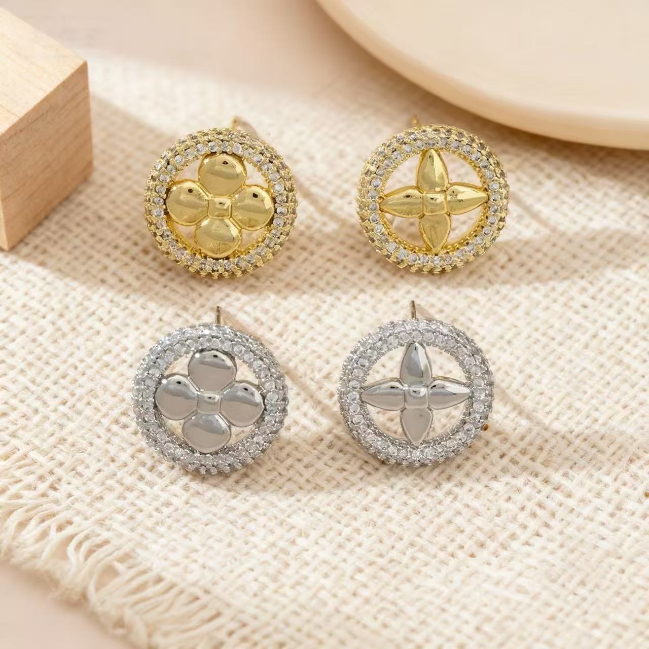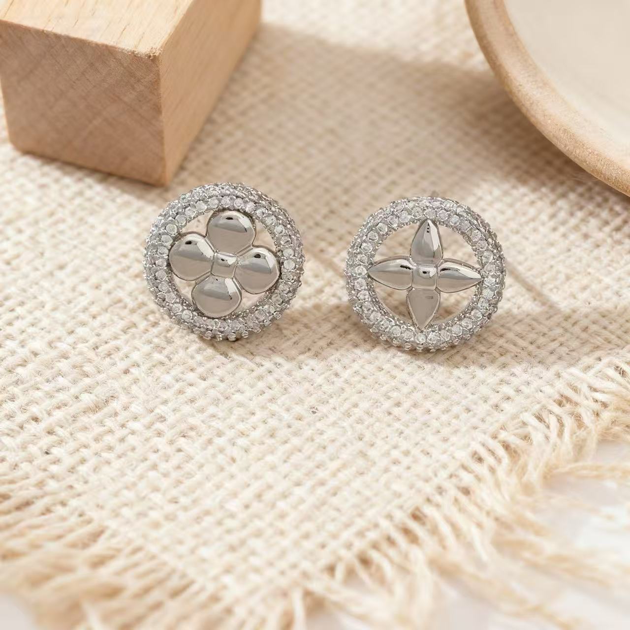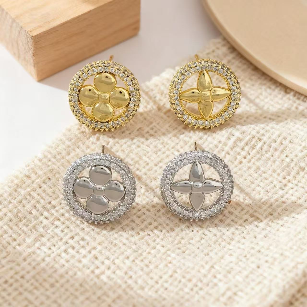 新款时尚高级设计感四叶草微镶不对称小香风超闪经典气质个性耳钉