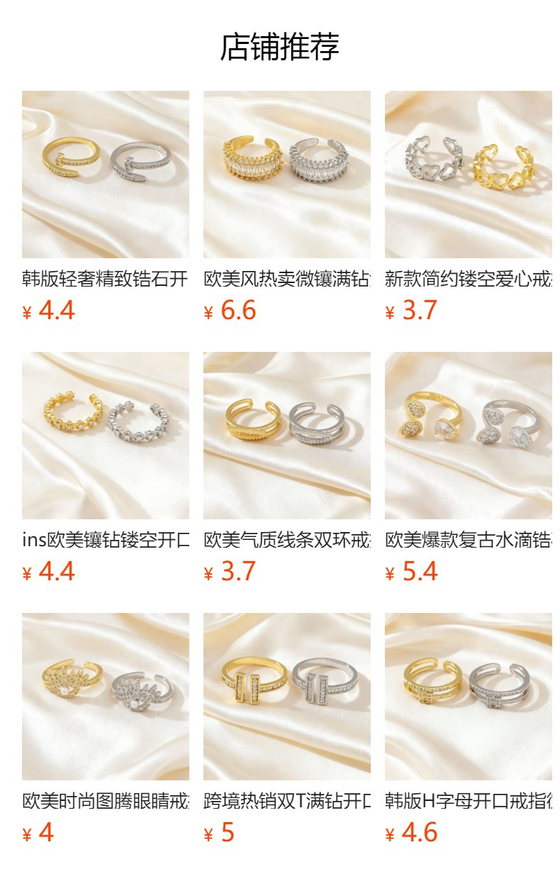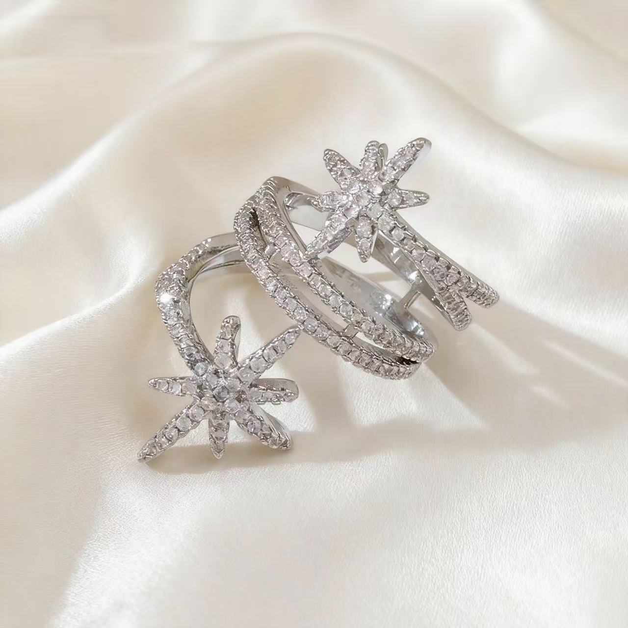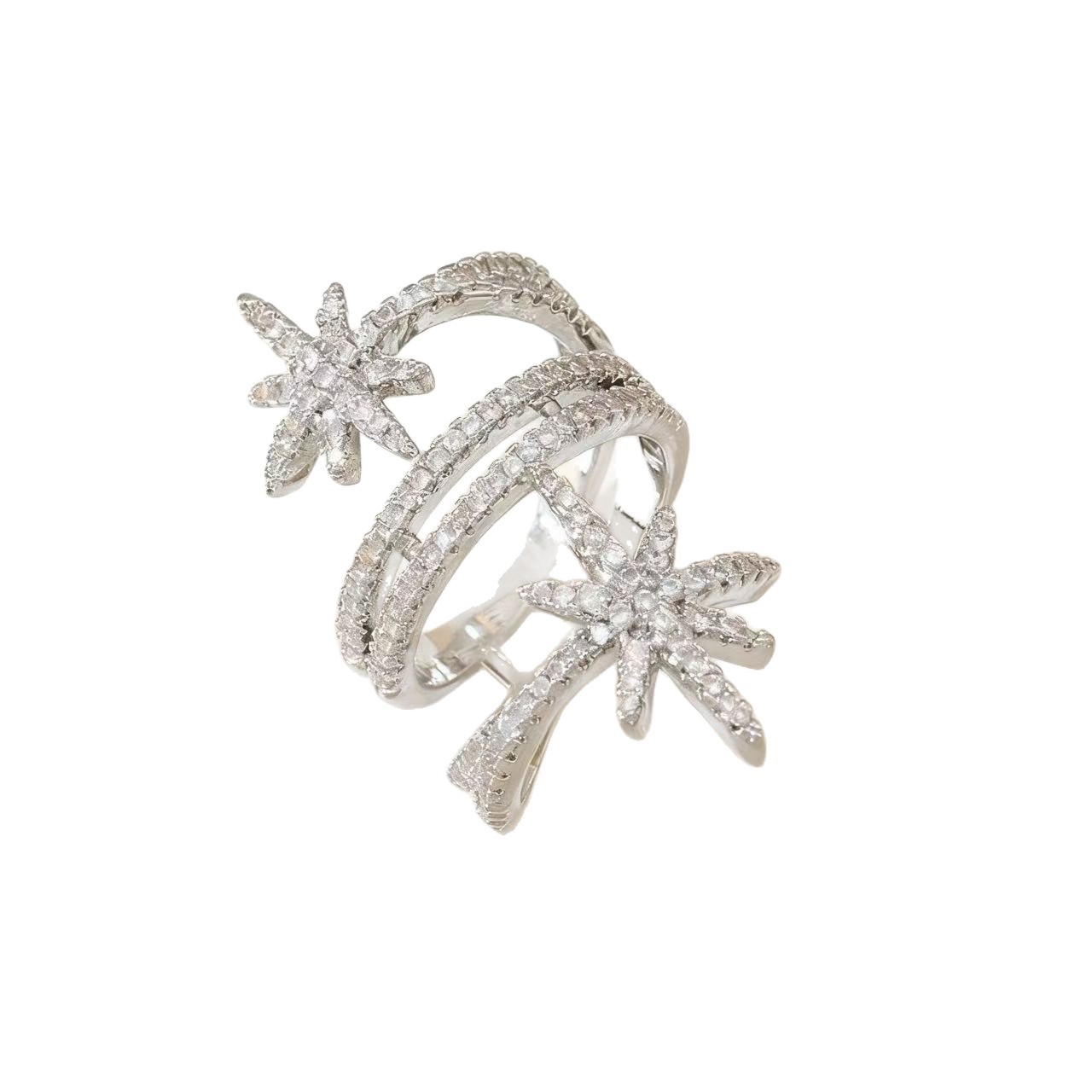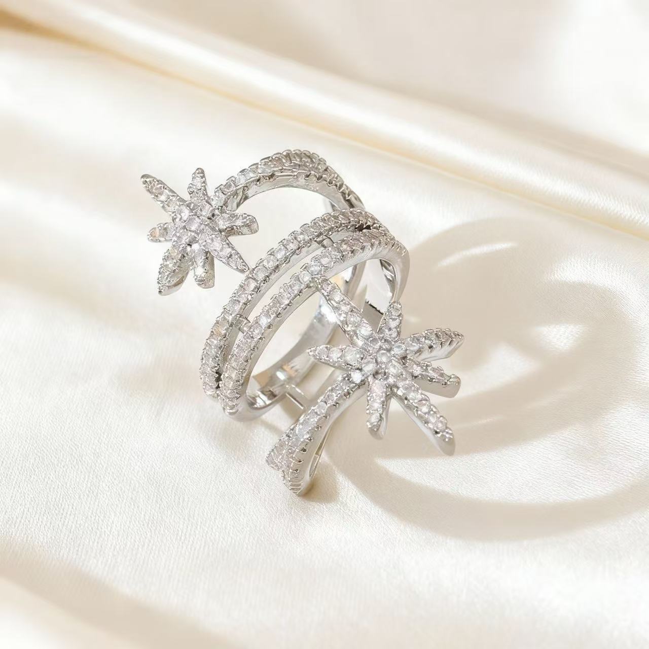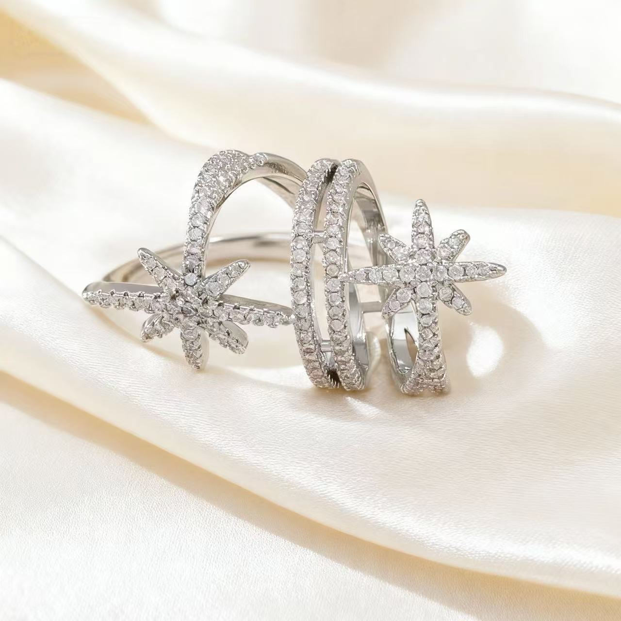 欧美轻奢满钻八芒星开口戒指锆石高级感戒指欧美时尚气质百搭指环