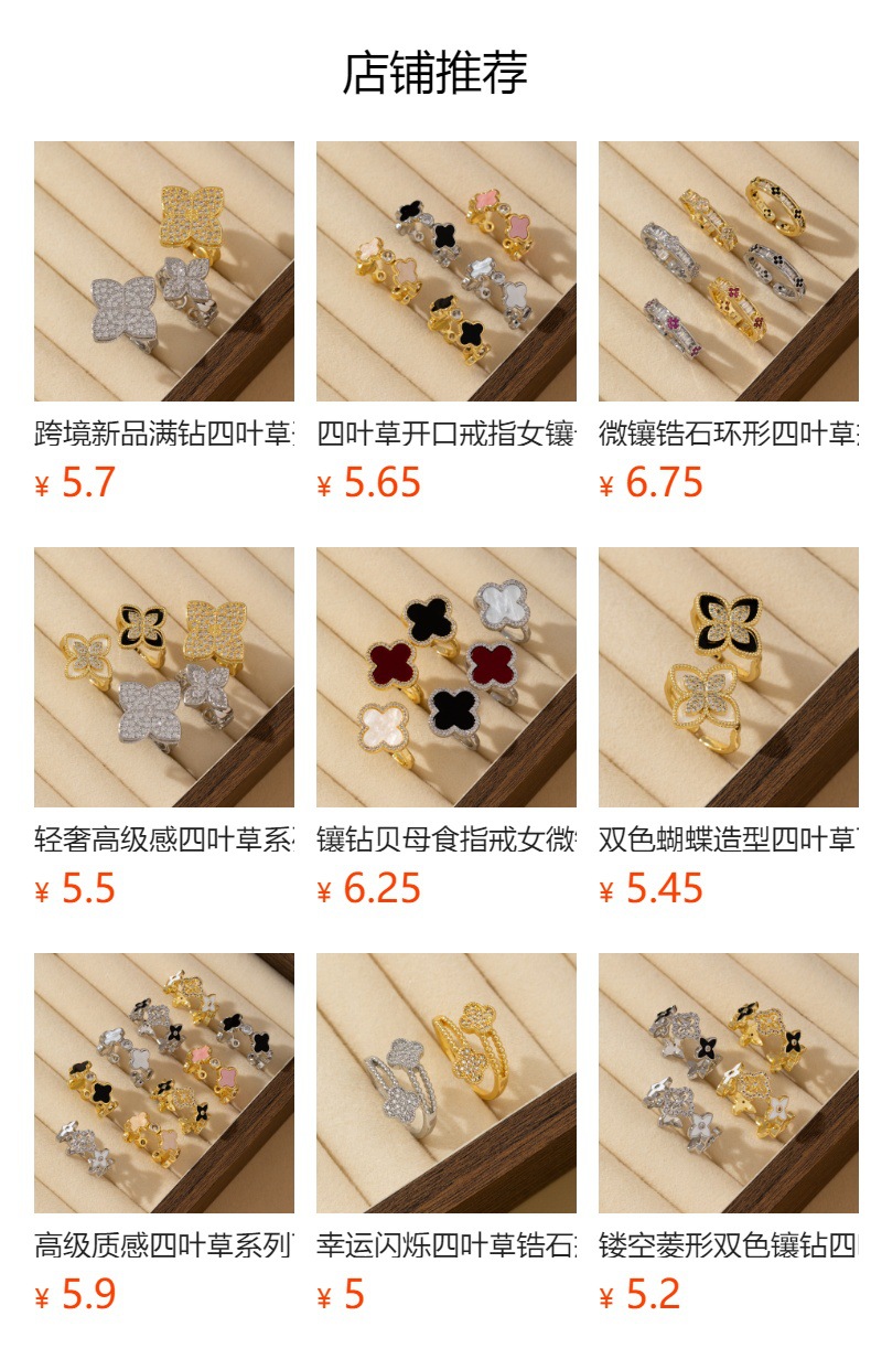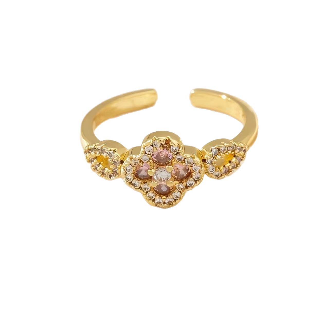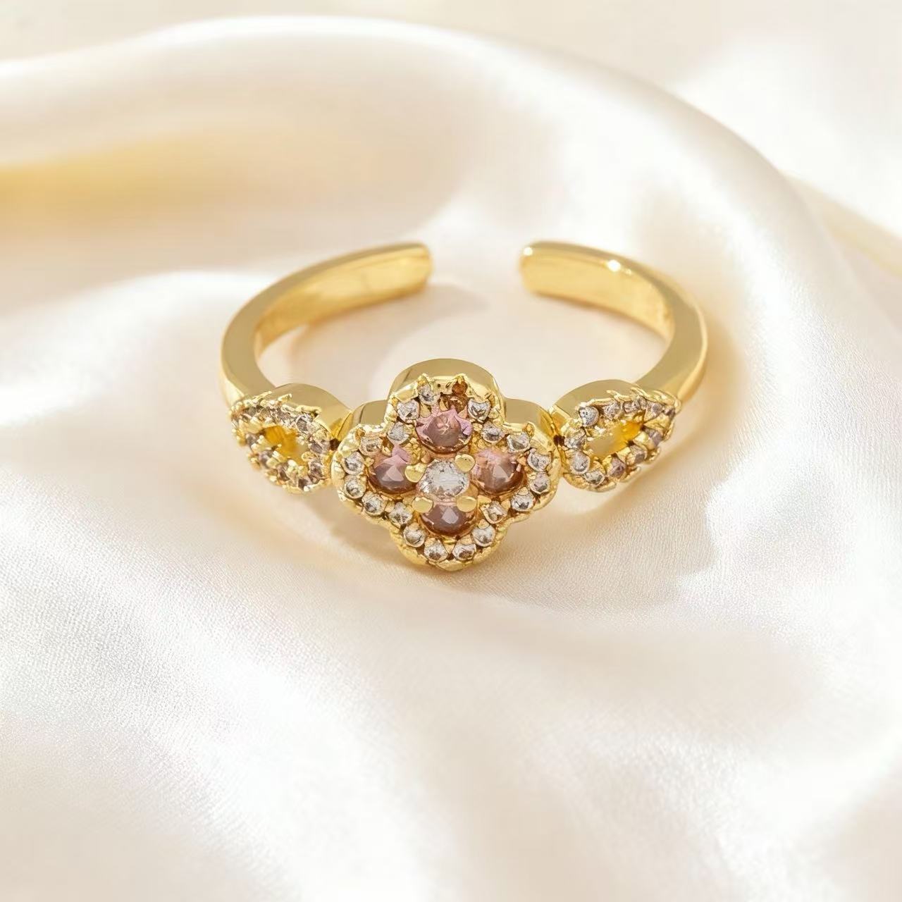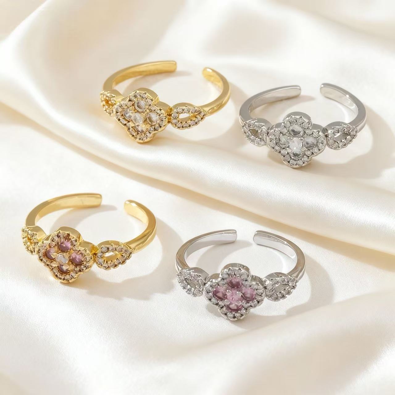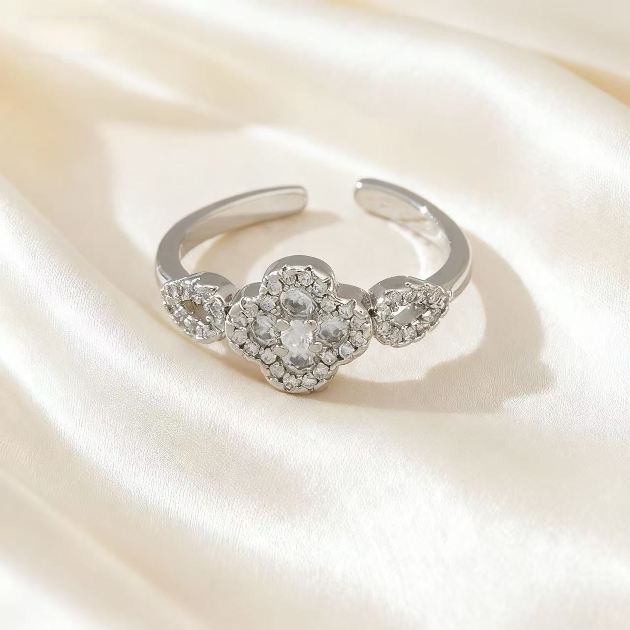 跨境货源高版本四叶草开口戒指锆石戒指轻奢高级感百搭时尚指环女