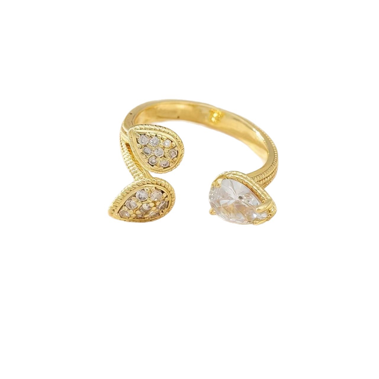 欧美爆款复古水滴锆石开口戒指女羽毛水滴形满钻戒指时尚创意指环