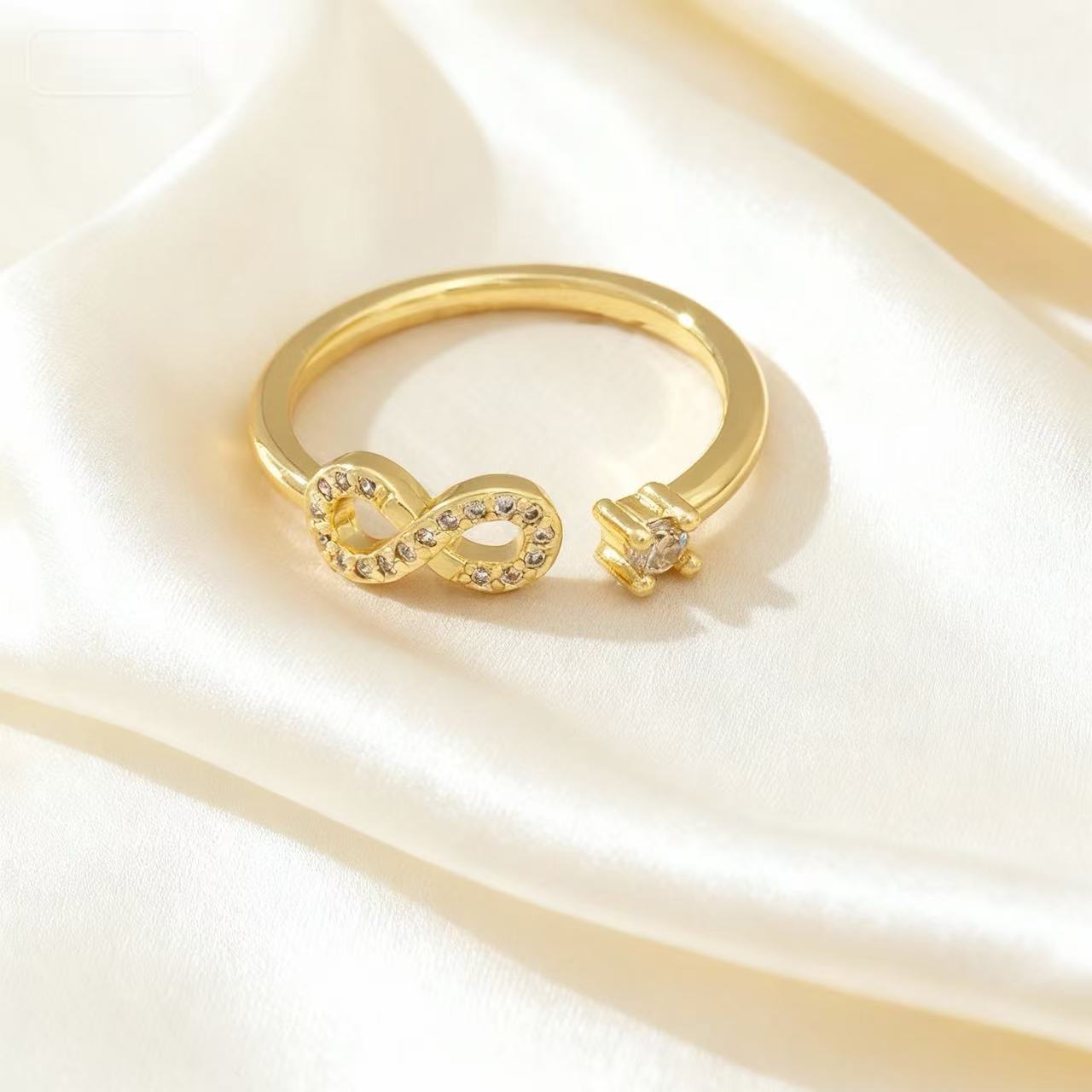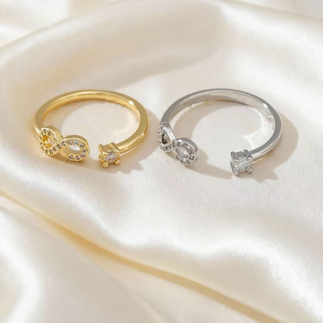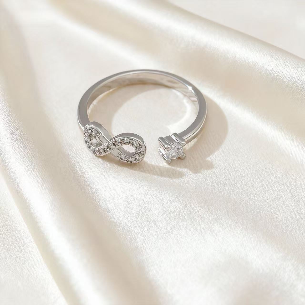 跨境超闪锆石开口戒指高级感可调节指环时尚几何形不对称百搭指环