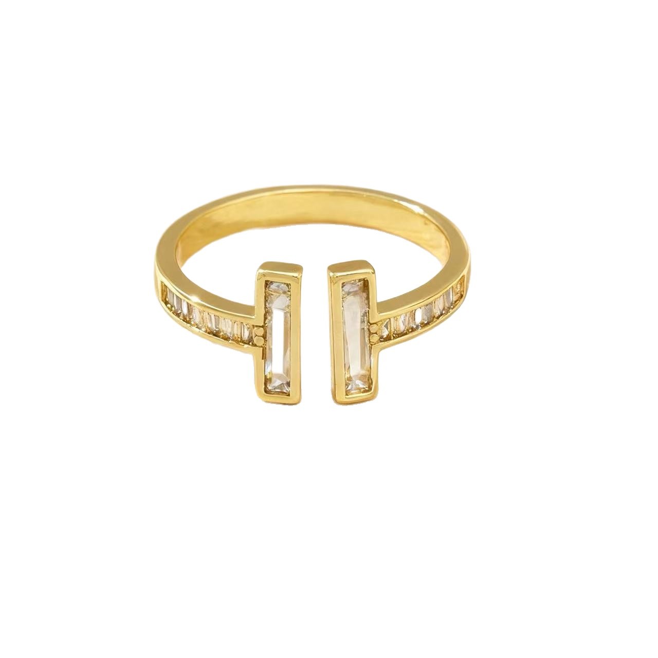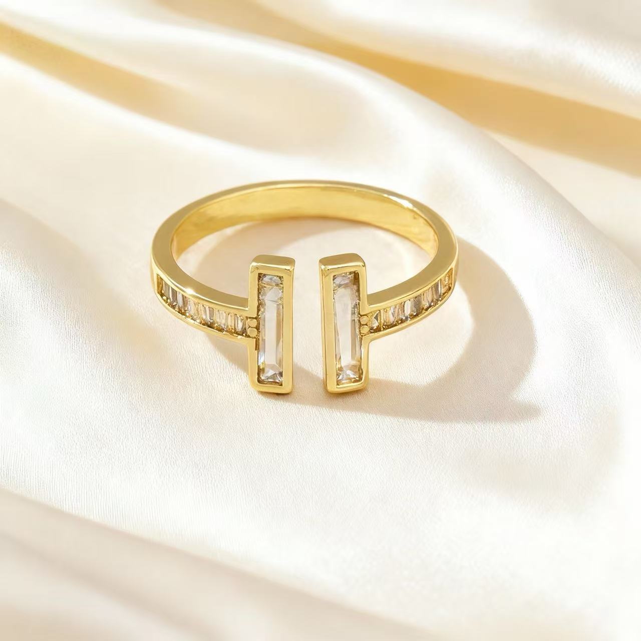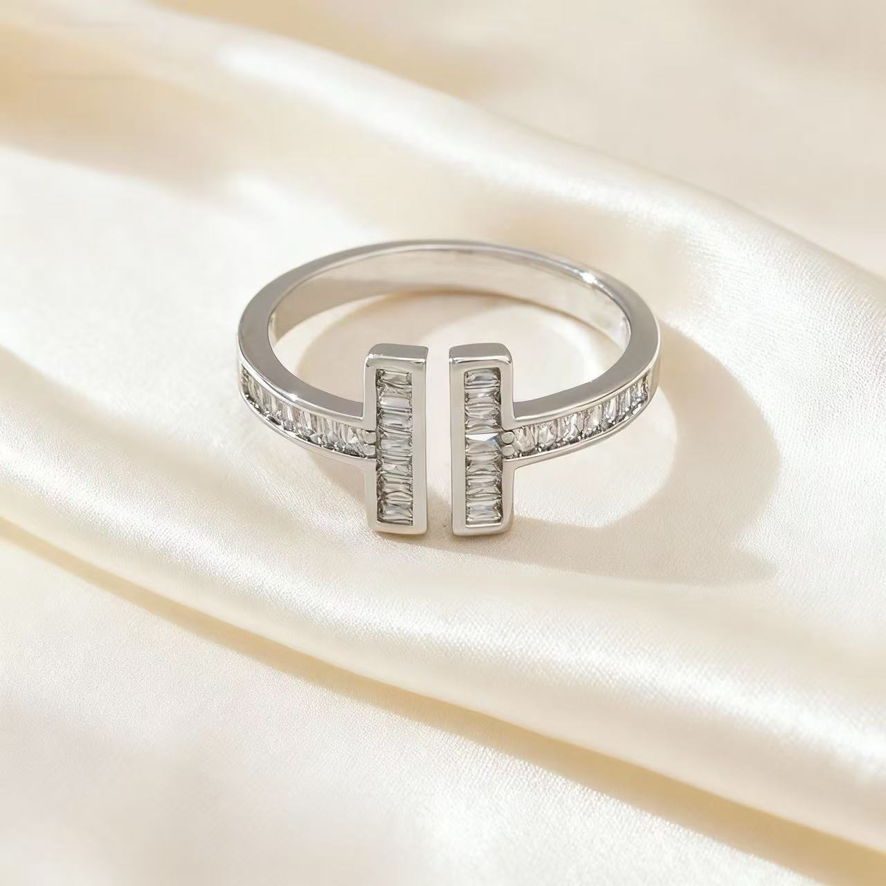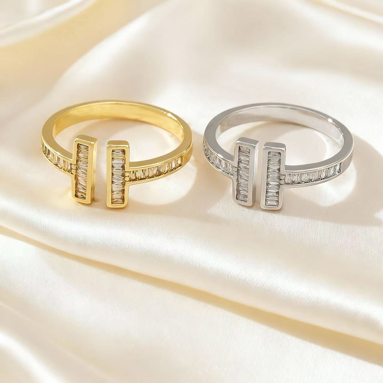 跨境热销双T满钻开口戒指轻奢高级时尚几何形指环时尚字母指环女