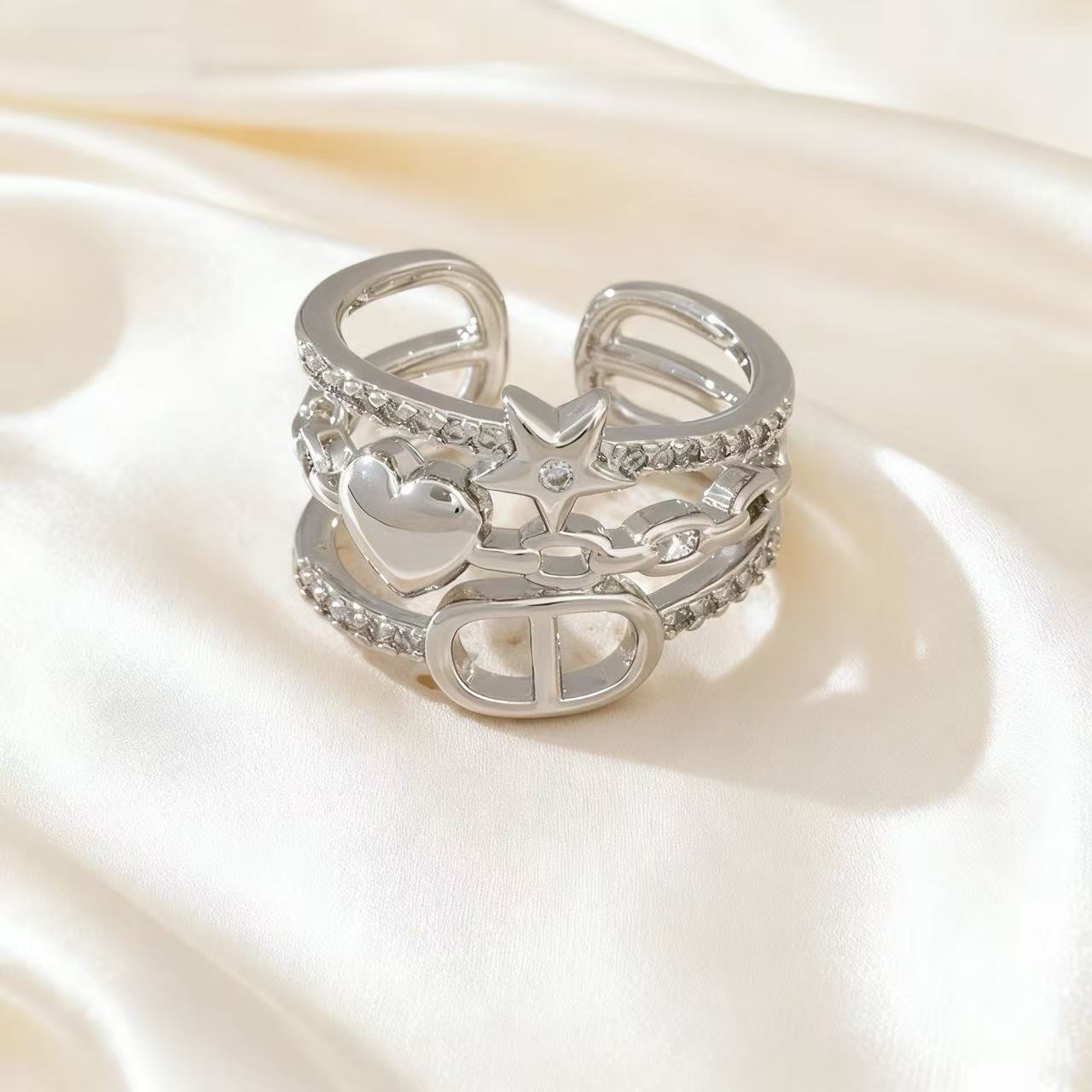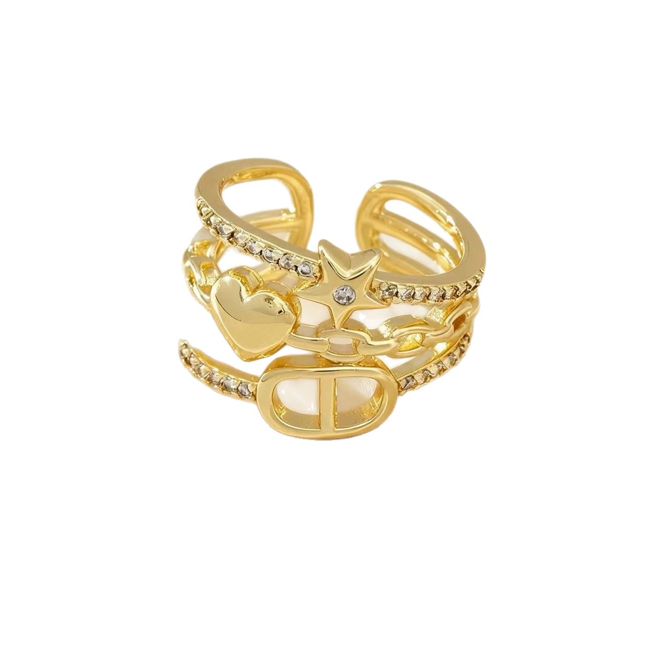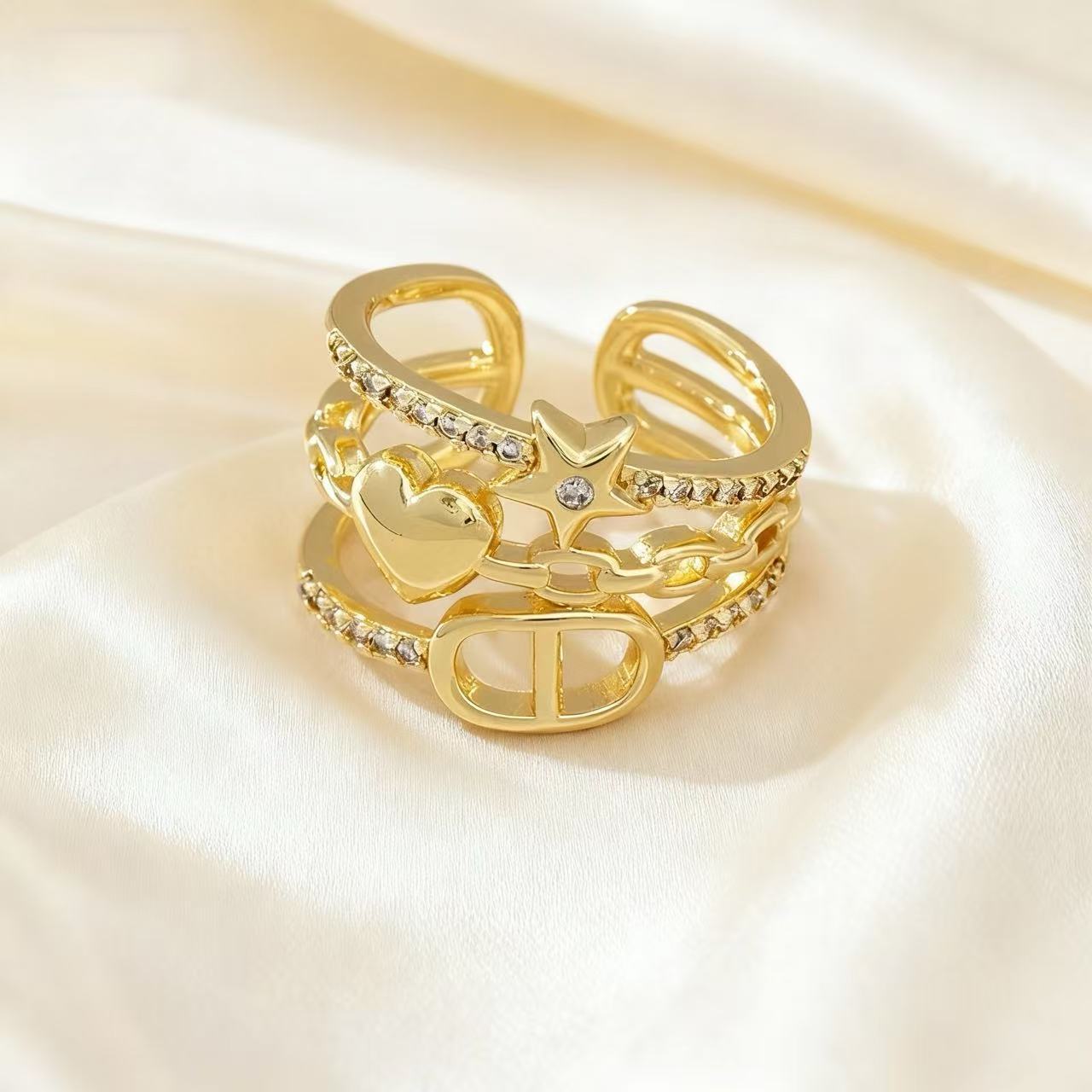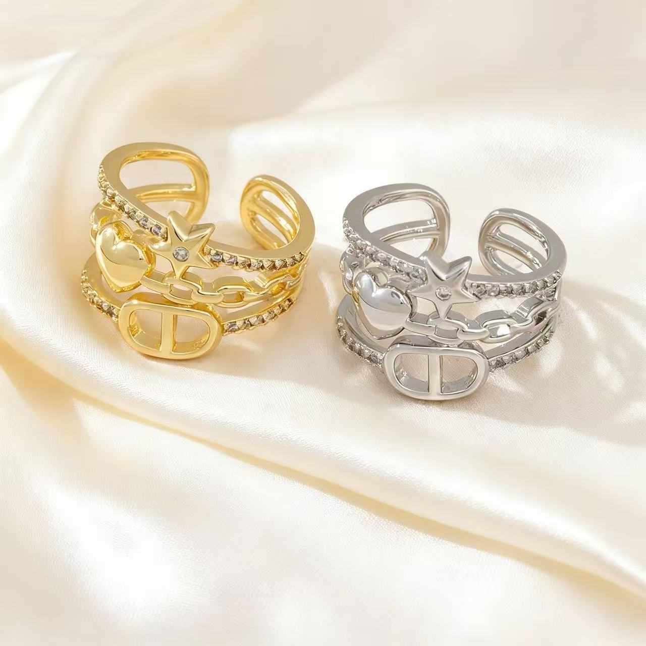 CD字母星星珍珠戒指时尚ins风百搭镂空镶嵌钻指环网红爆款