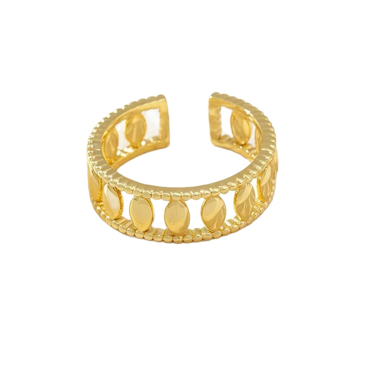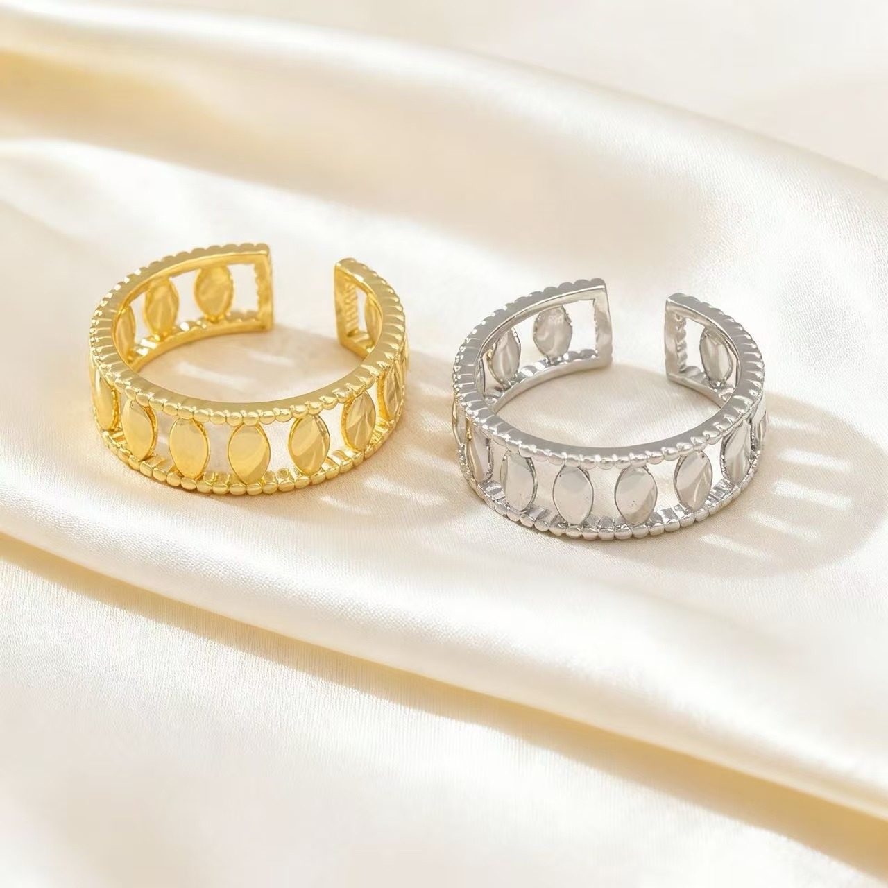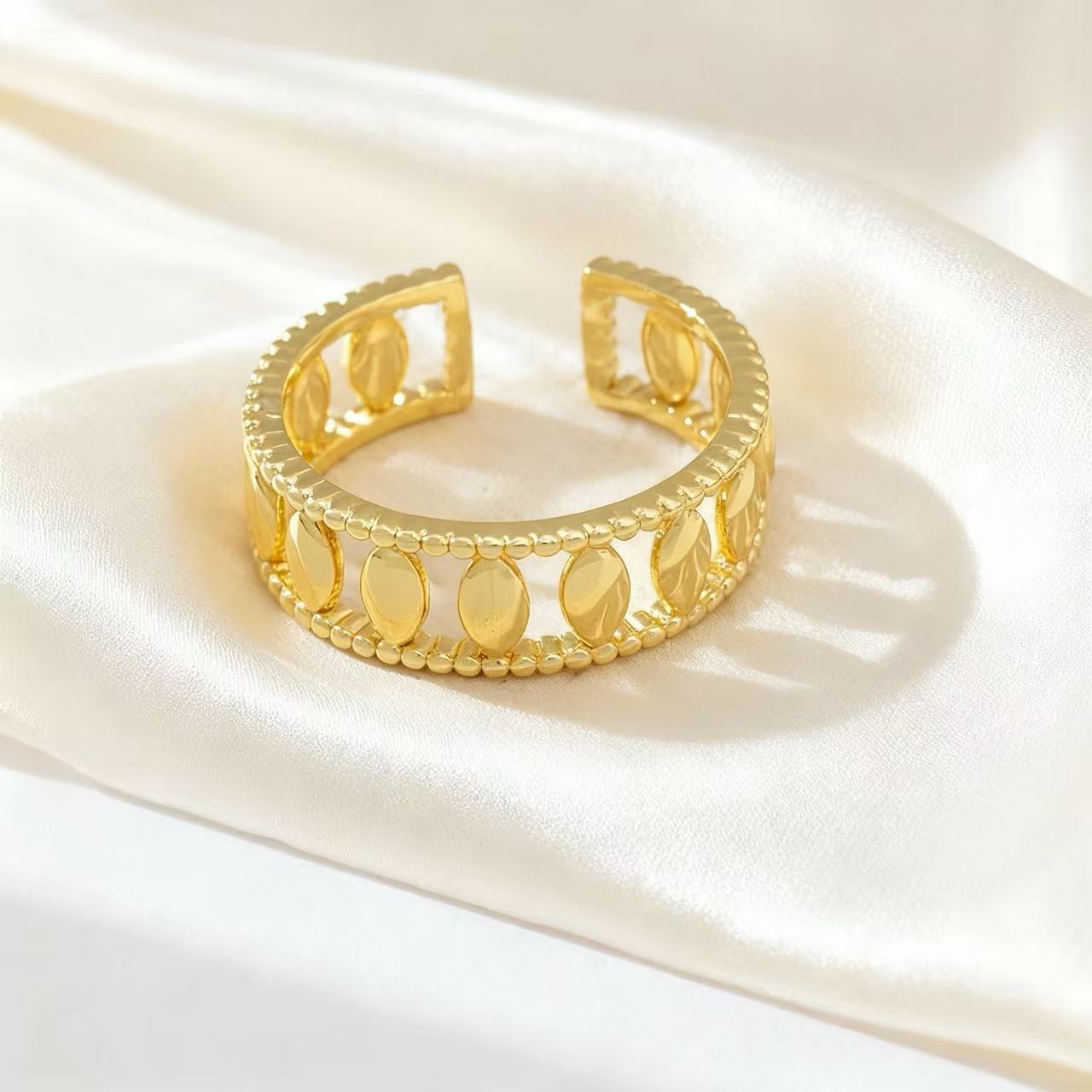 欧美法式复古气质叶片指环双环镂空几何轻奢高级感镀金开口戒指女