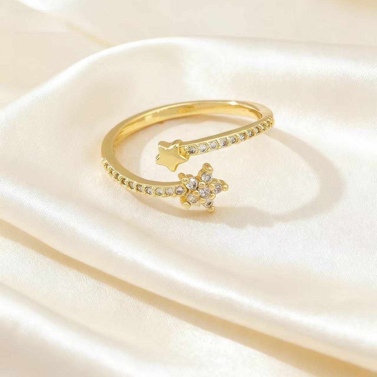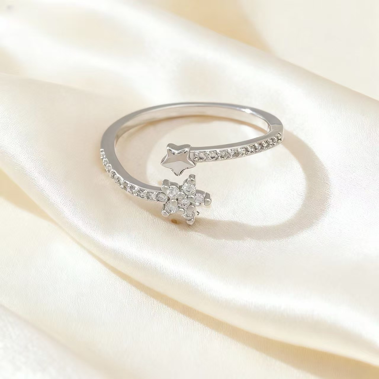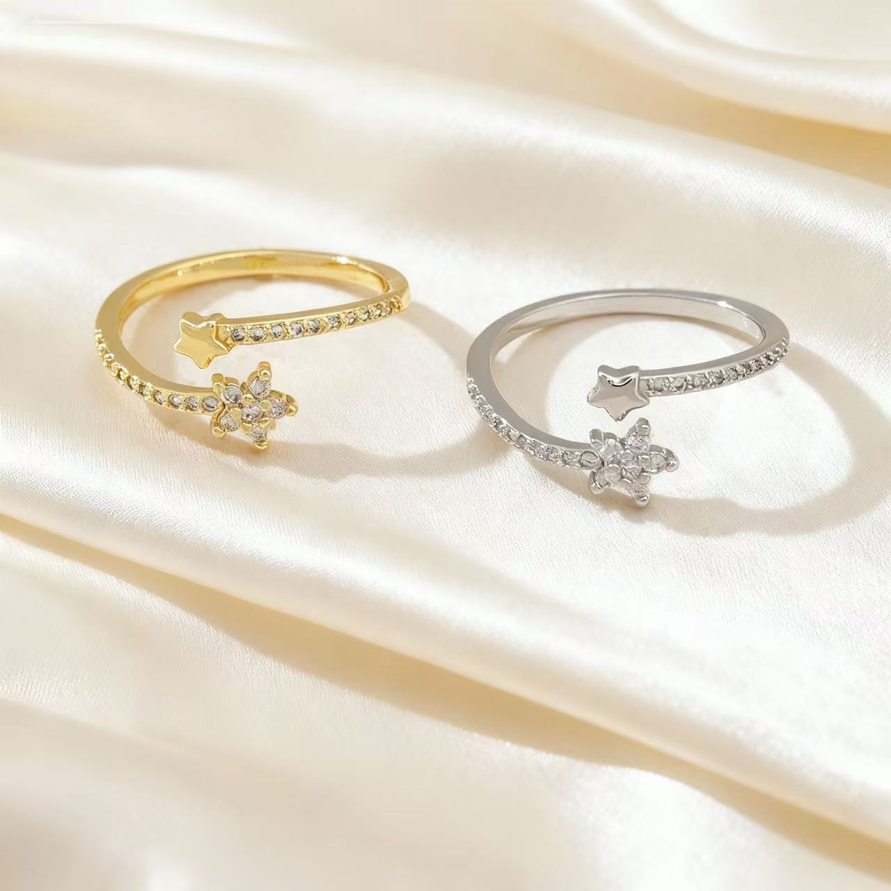 ins风跨境时尚满天星微镶锆石简约戒指女星星气质冷淡风轻奢指环