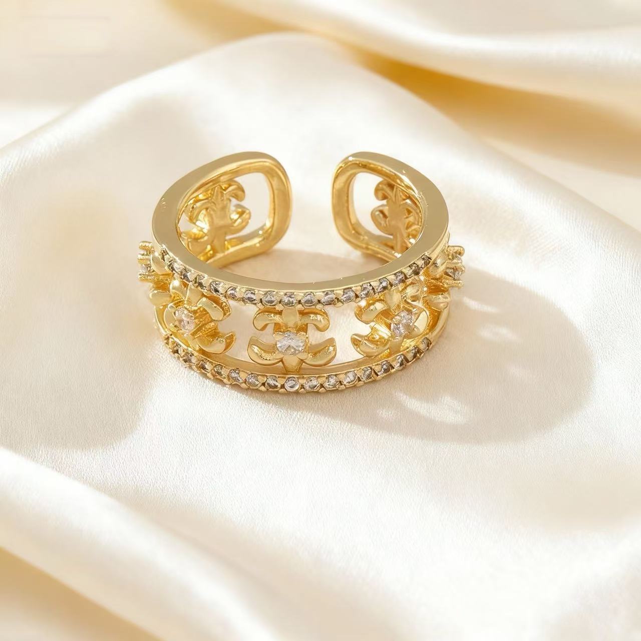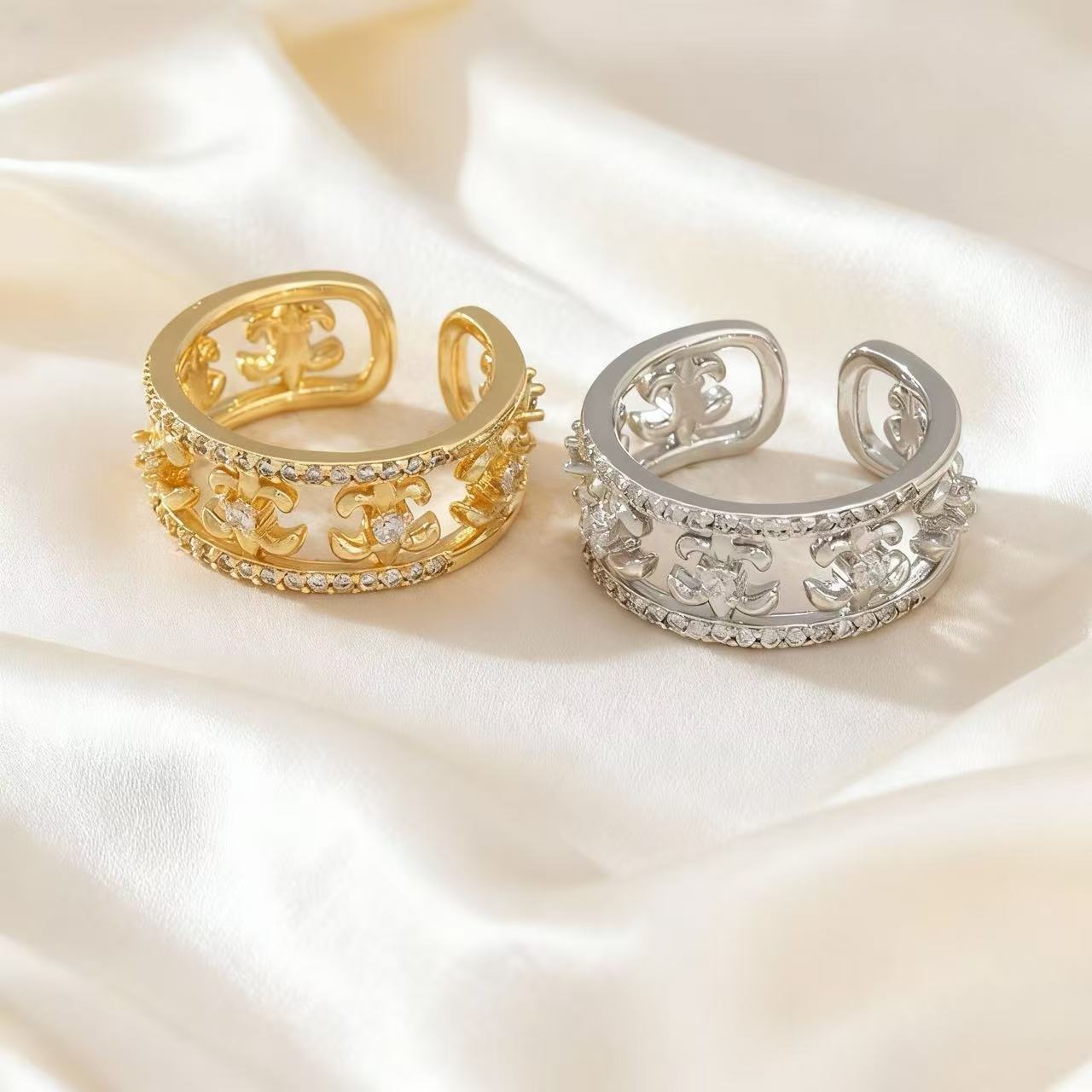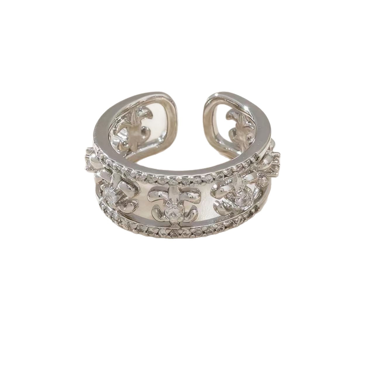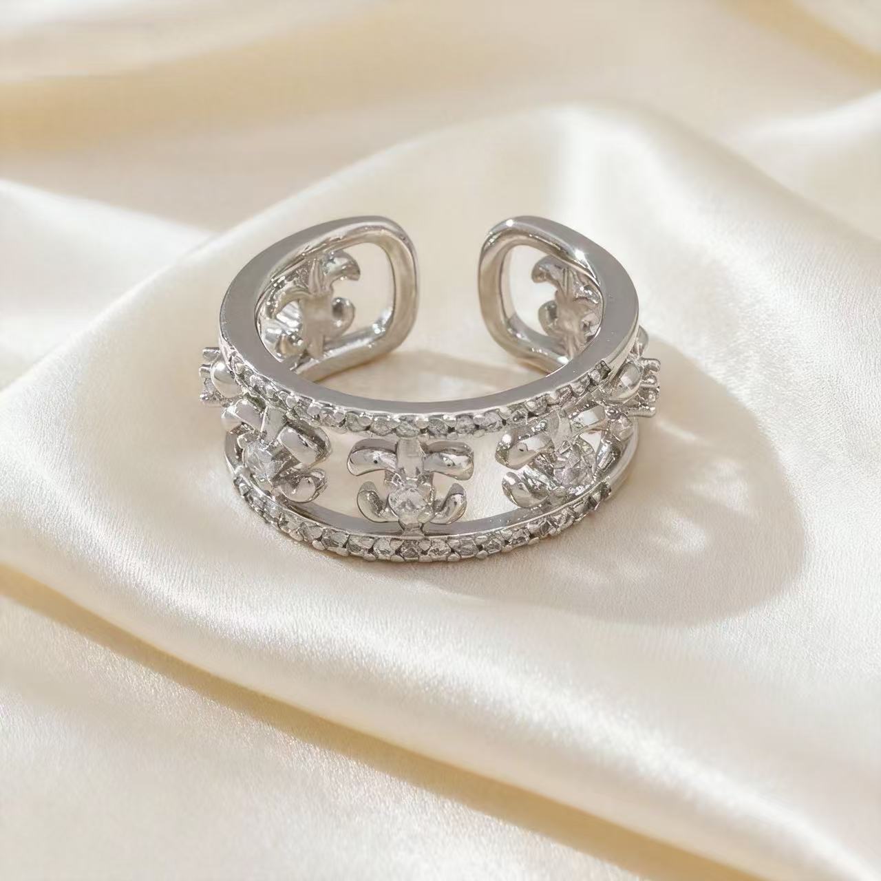 新版克罗心轻奢镂空微镶锆石戒指古典宽版活口可调节食指戒指环女
