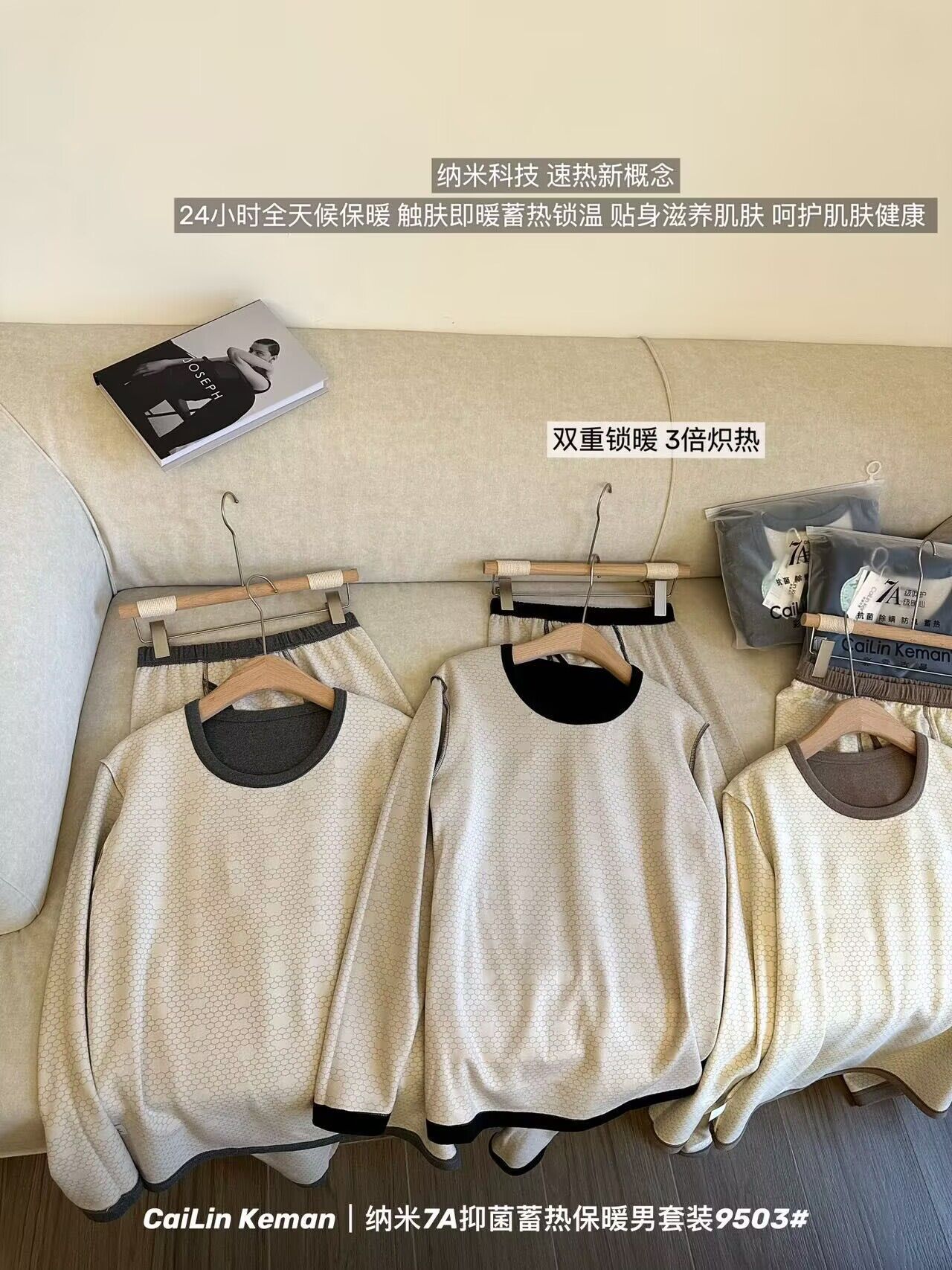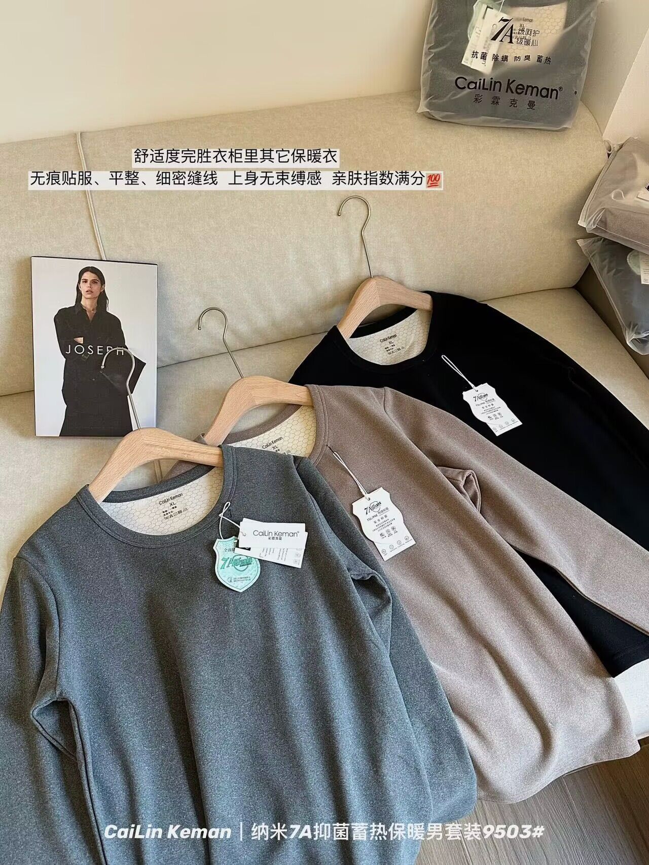 羊绒蚕丝秋冬保暖男士套装加厚加绒高弹内搭打底秋衣秋裤