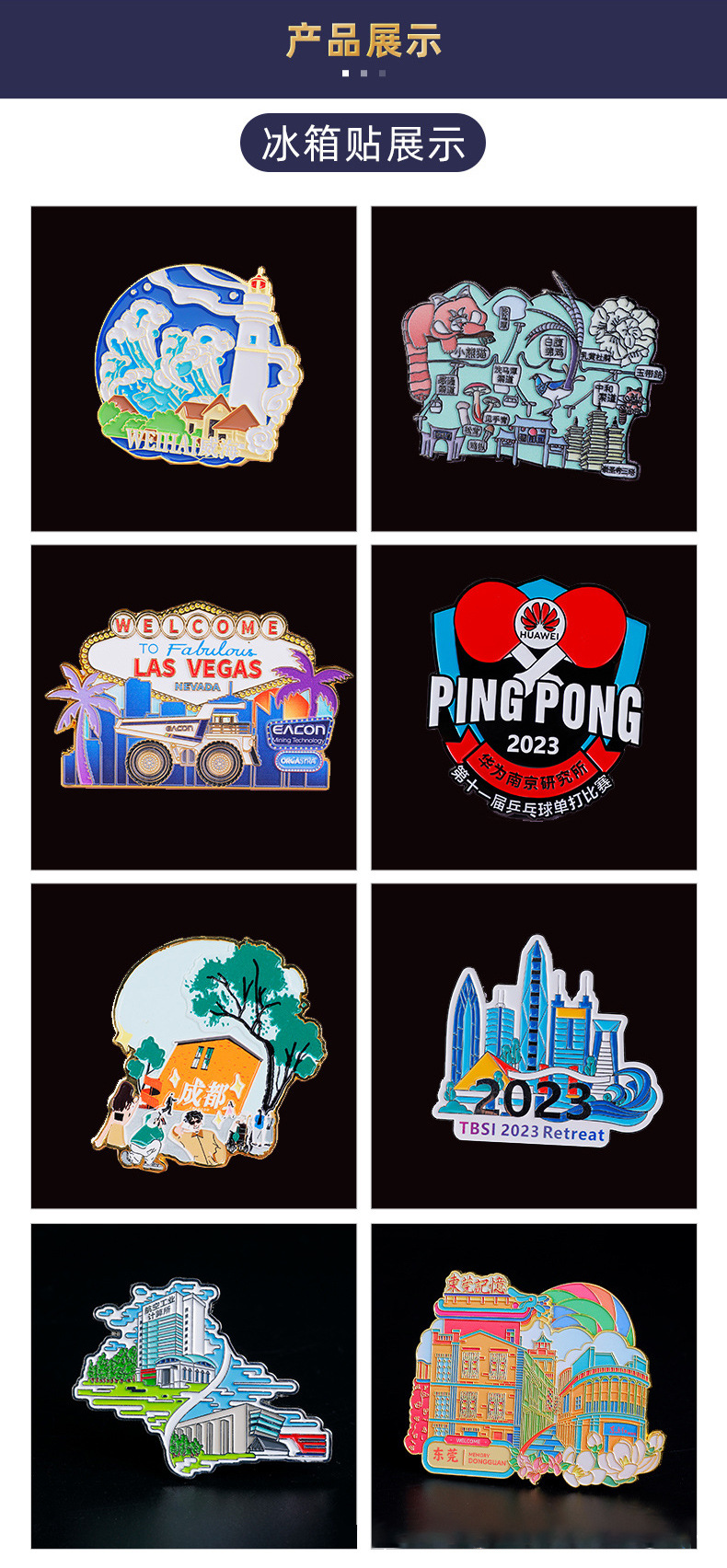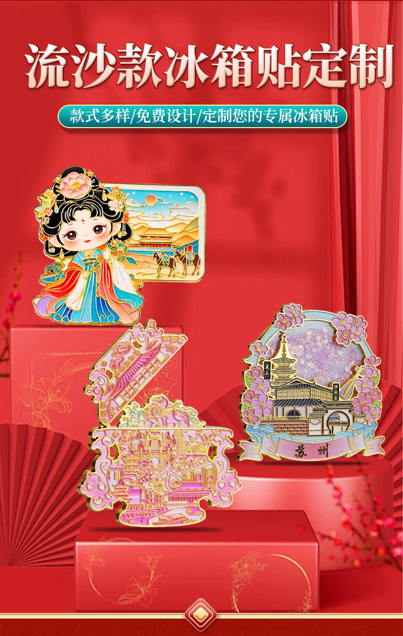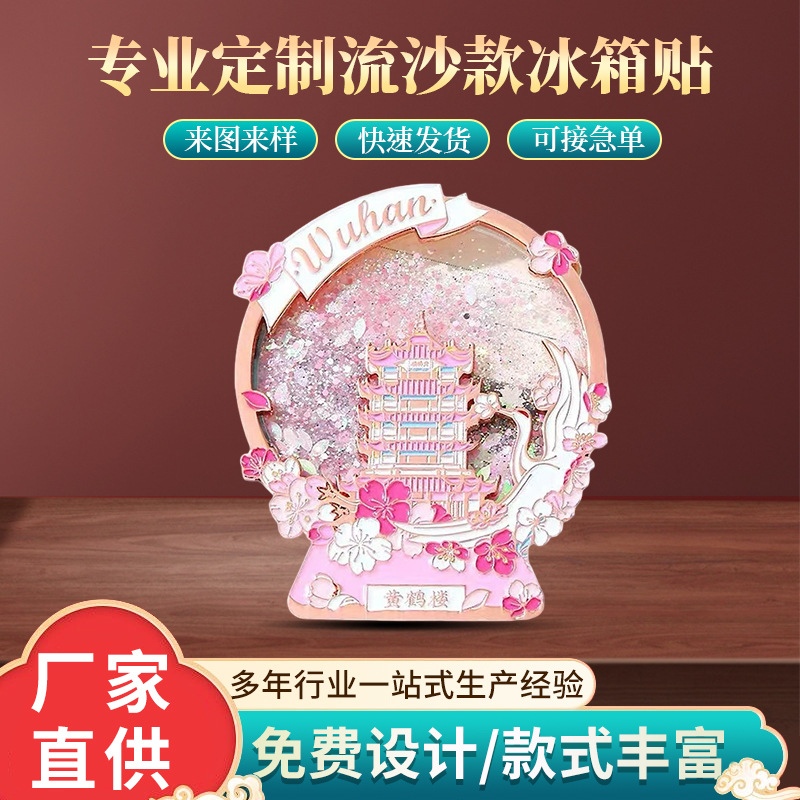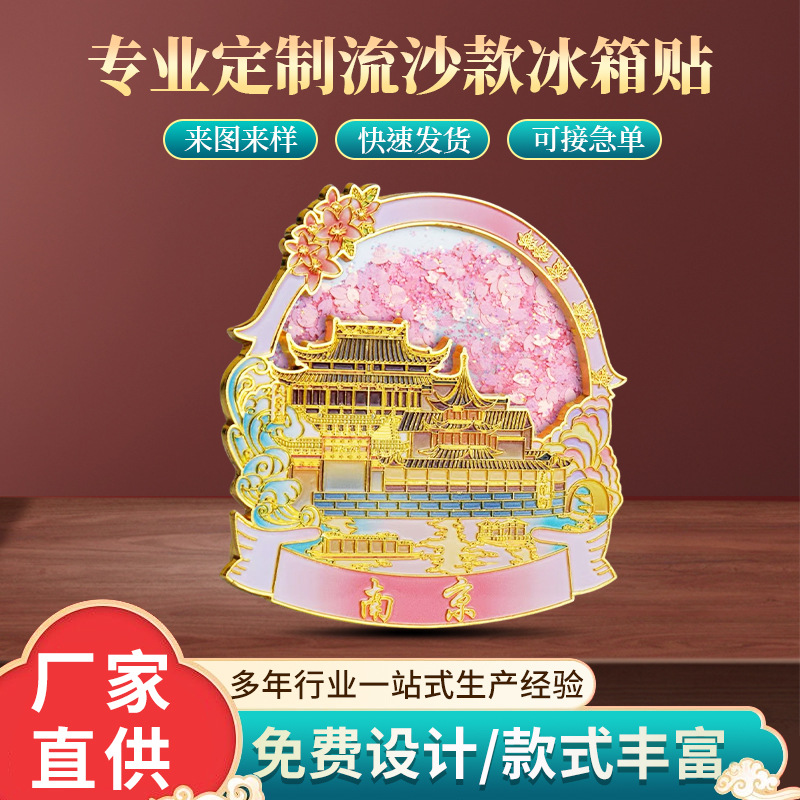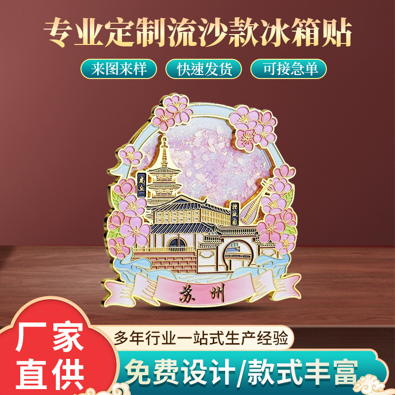 金属冰箱贴定制流沙旋转滑轨文创城市景区滴胶烤漆珐琅磁吸贴批发