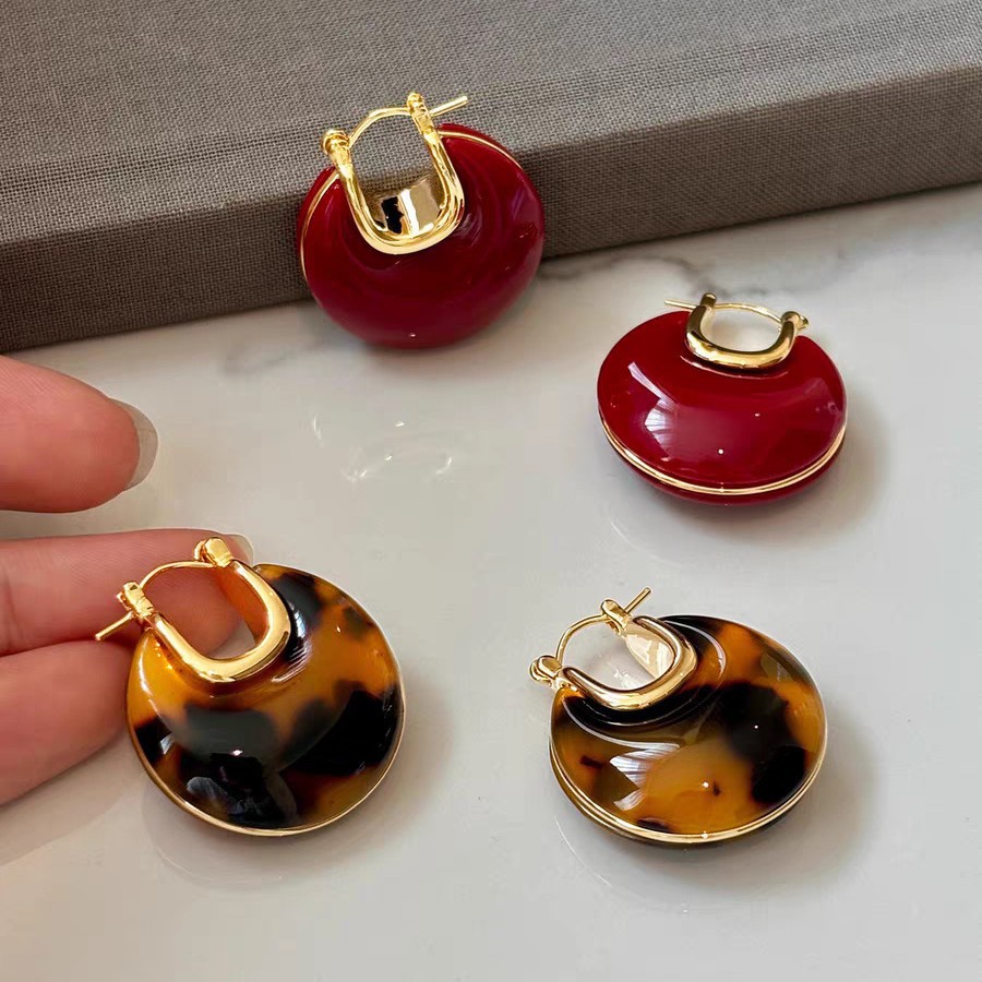 真金电镀小众高级感独特秋冬复古耳饰S925银豹纹琥珀色圆形耳环女