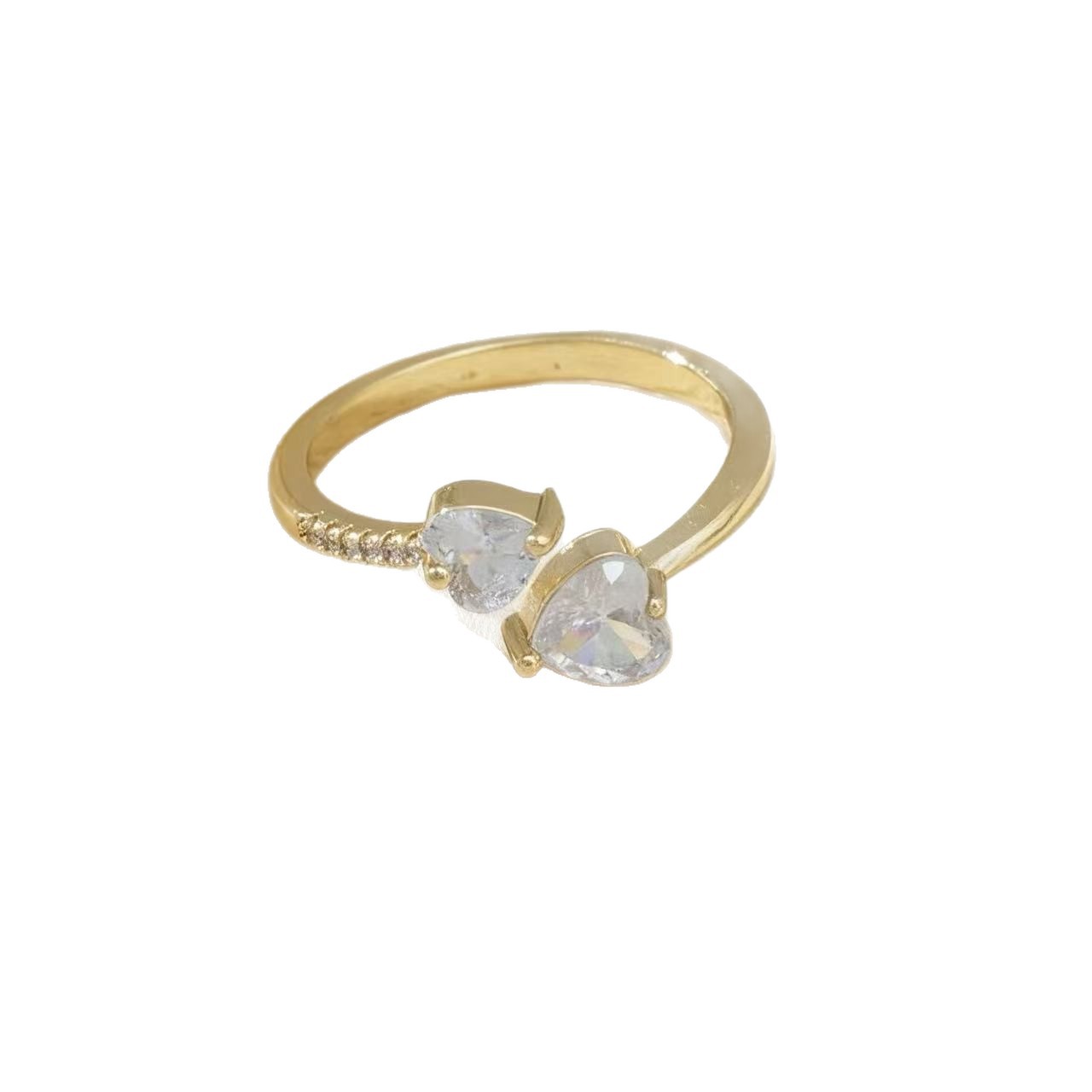 跨境气质韩版双心满钻时尚开口戒指活口可调节锆石女指环圣诞礼物