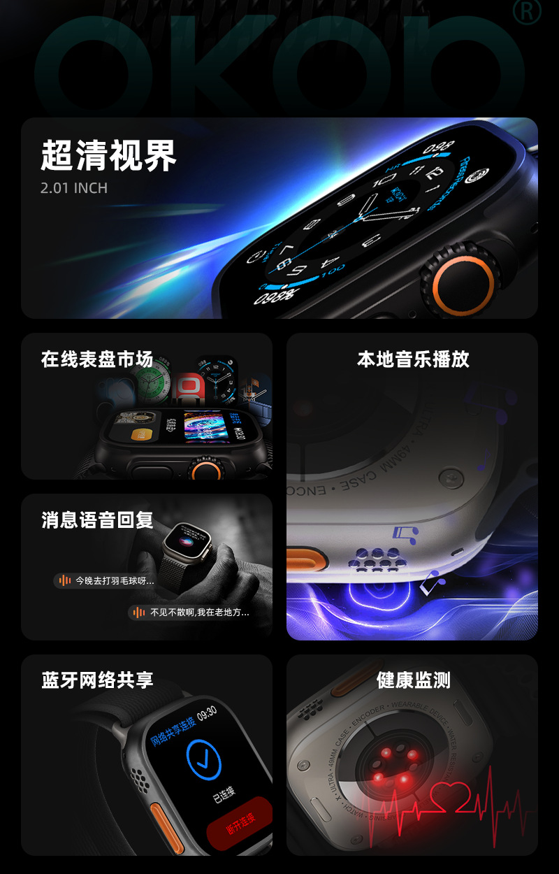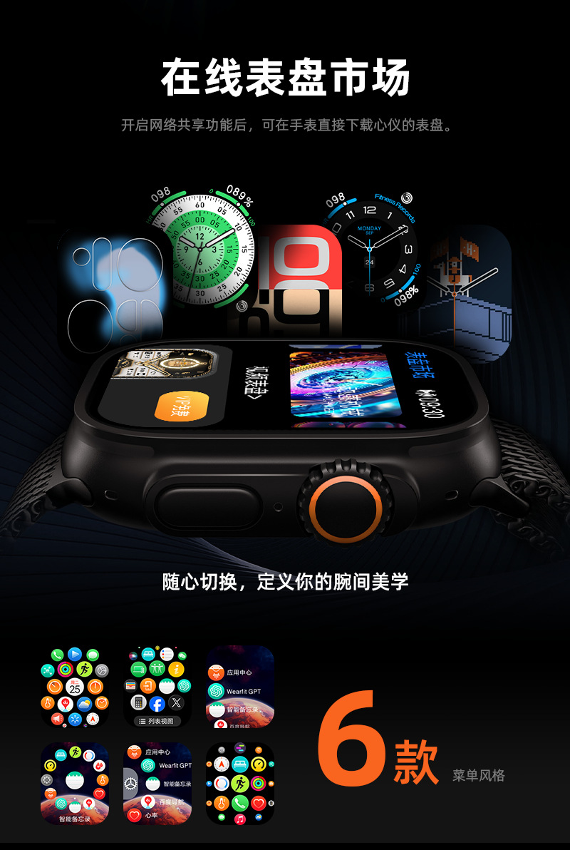 S104智能手表AI助手大屏健康血压血氧睡眠蓝牙通话多表盘运动防水