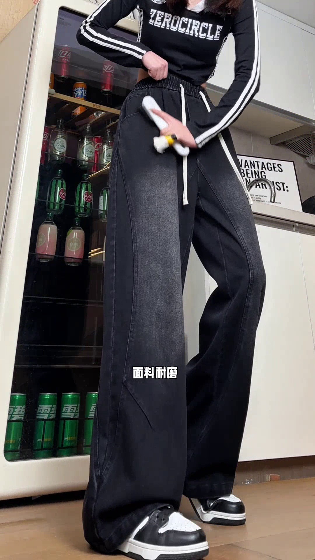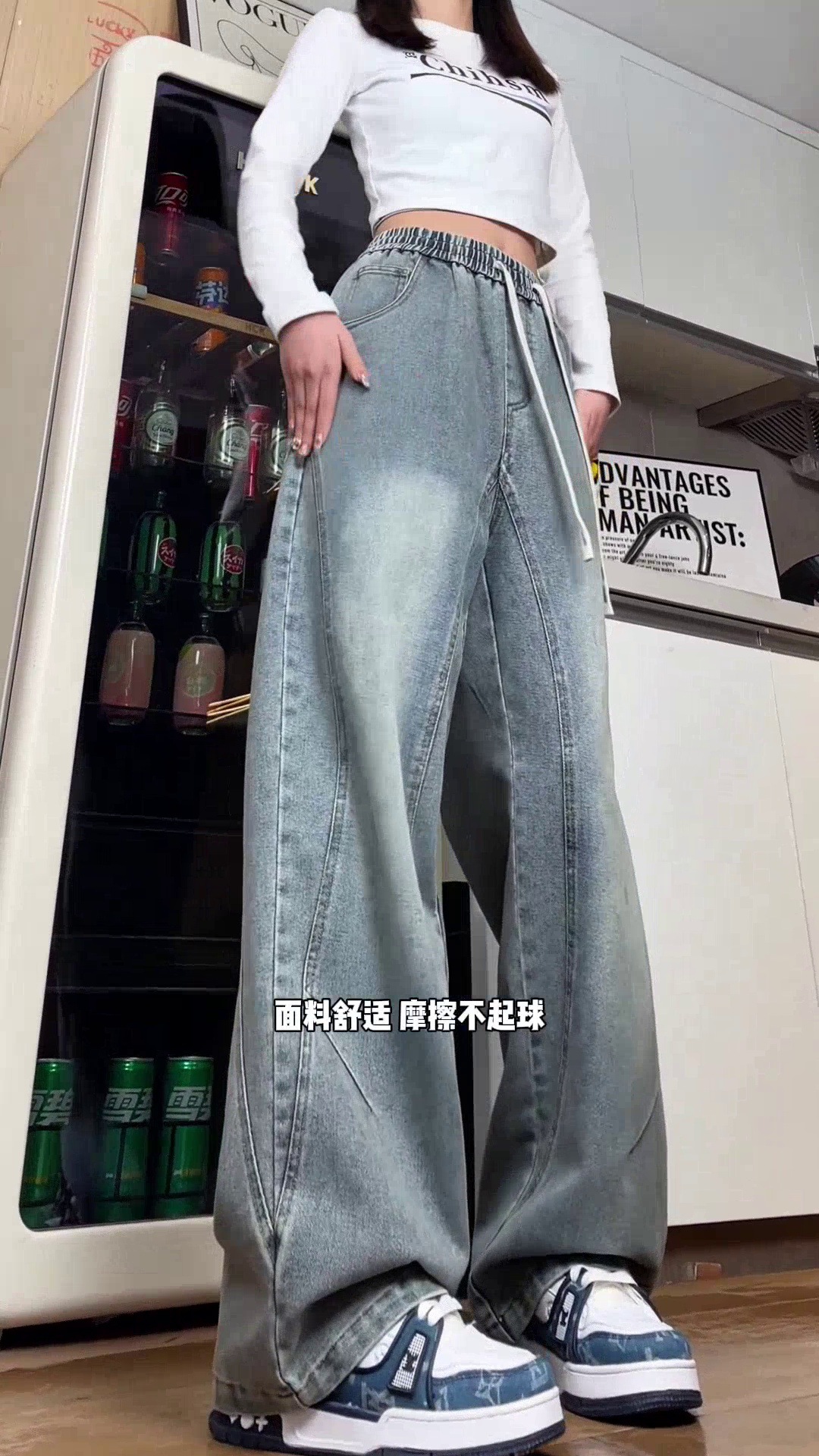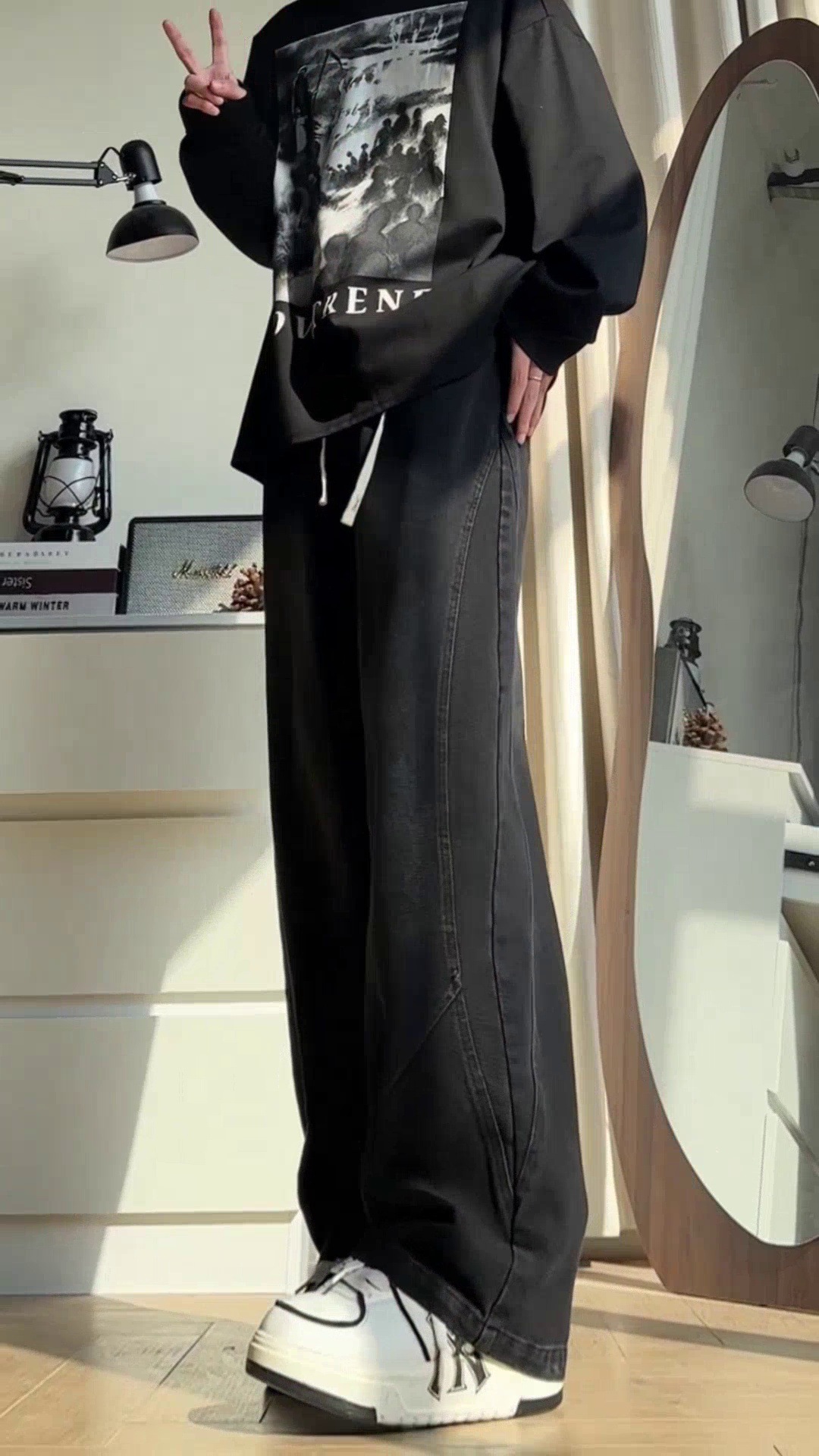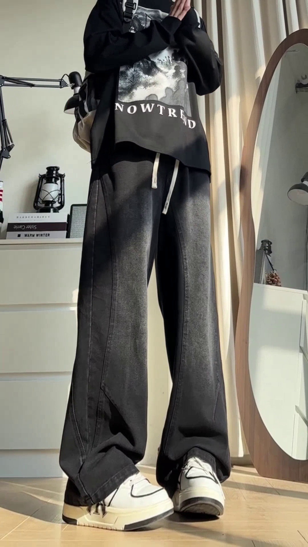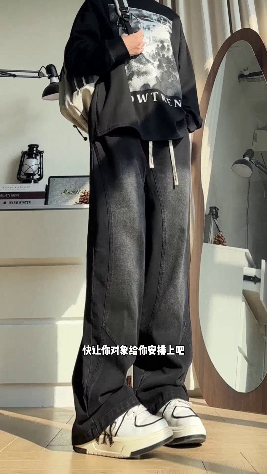 美式弯刀加绒牛仔裤男士冬季宽松大码男裤直筒复古高街厚款裤子
