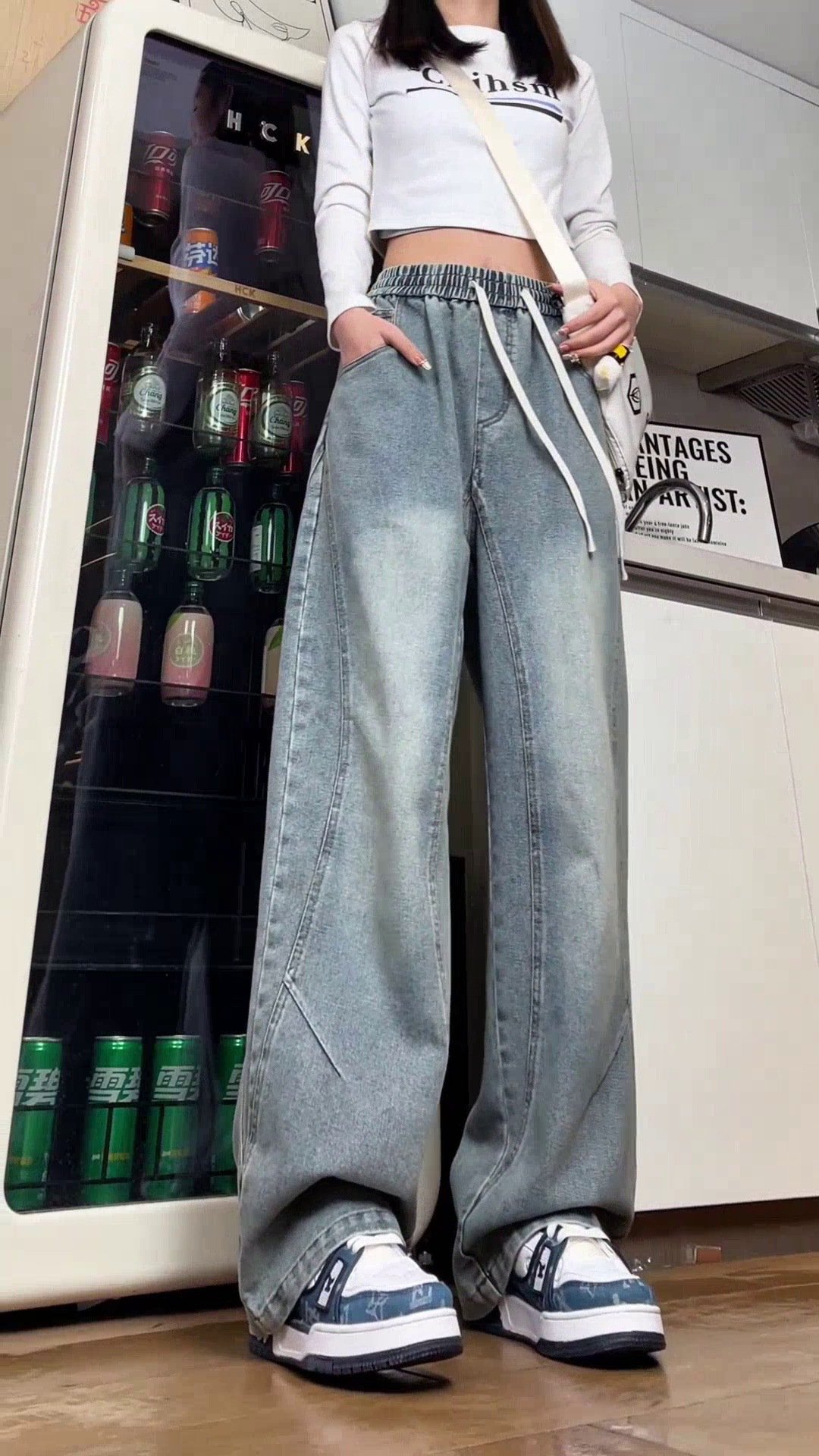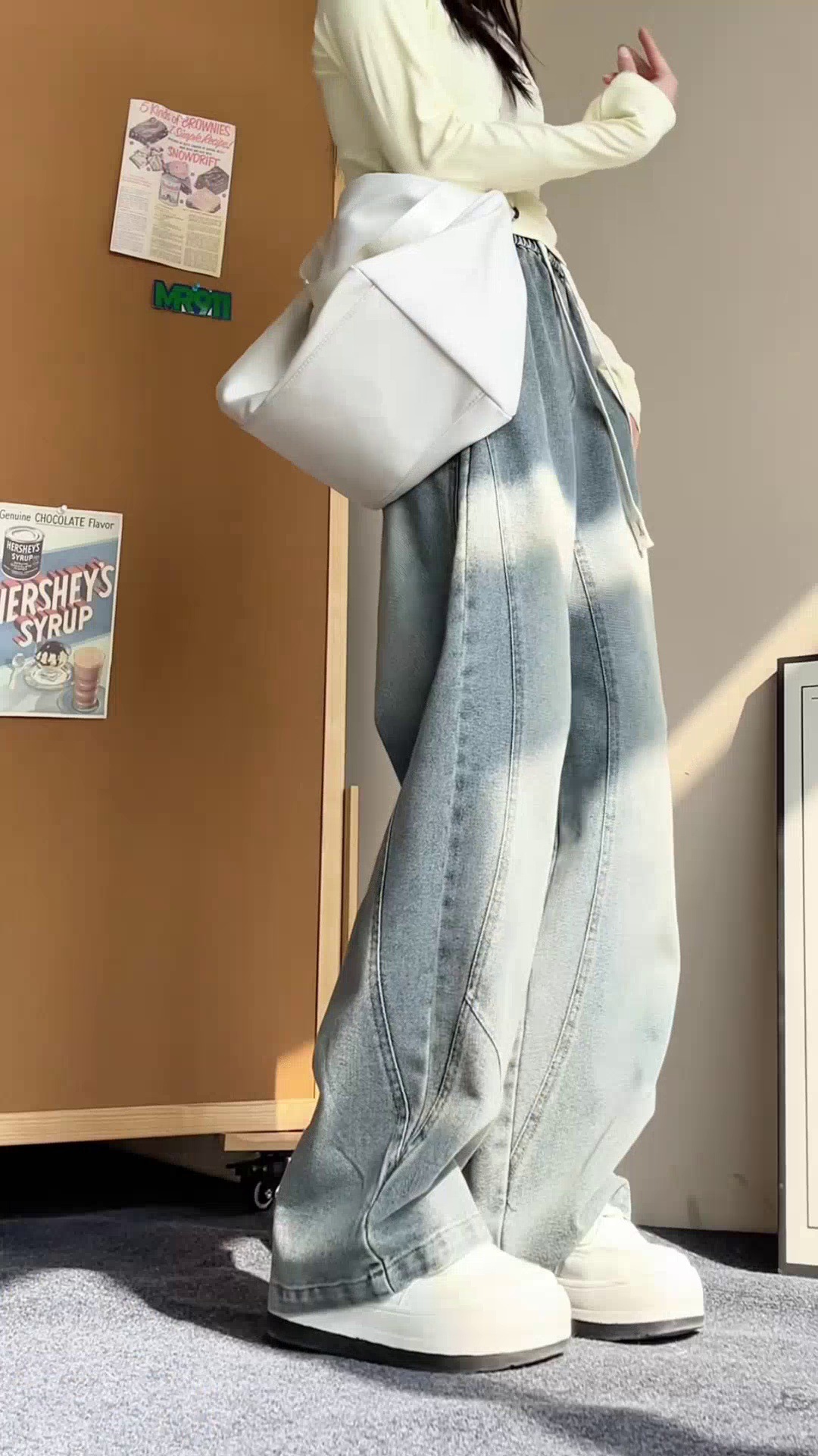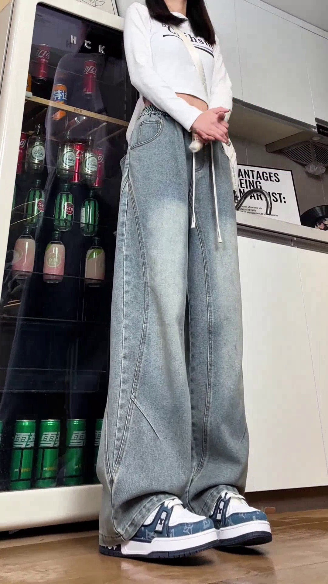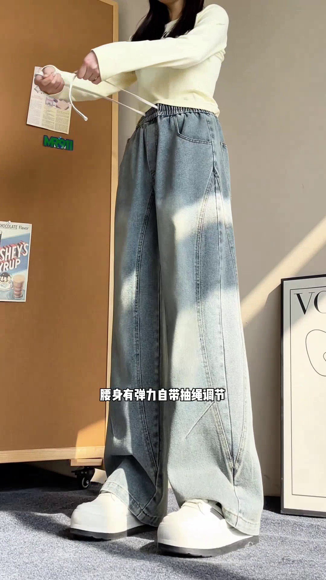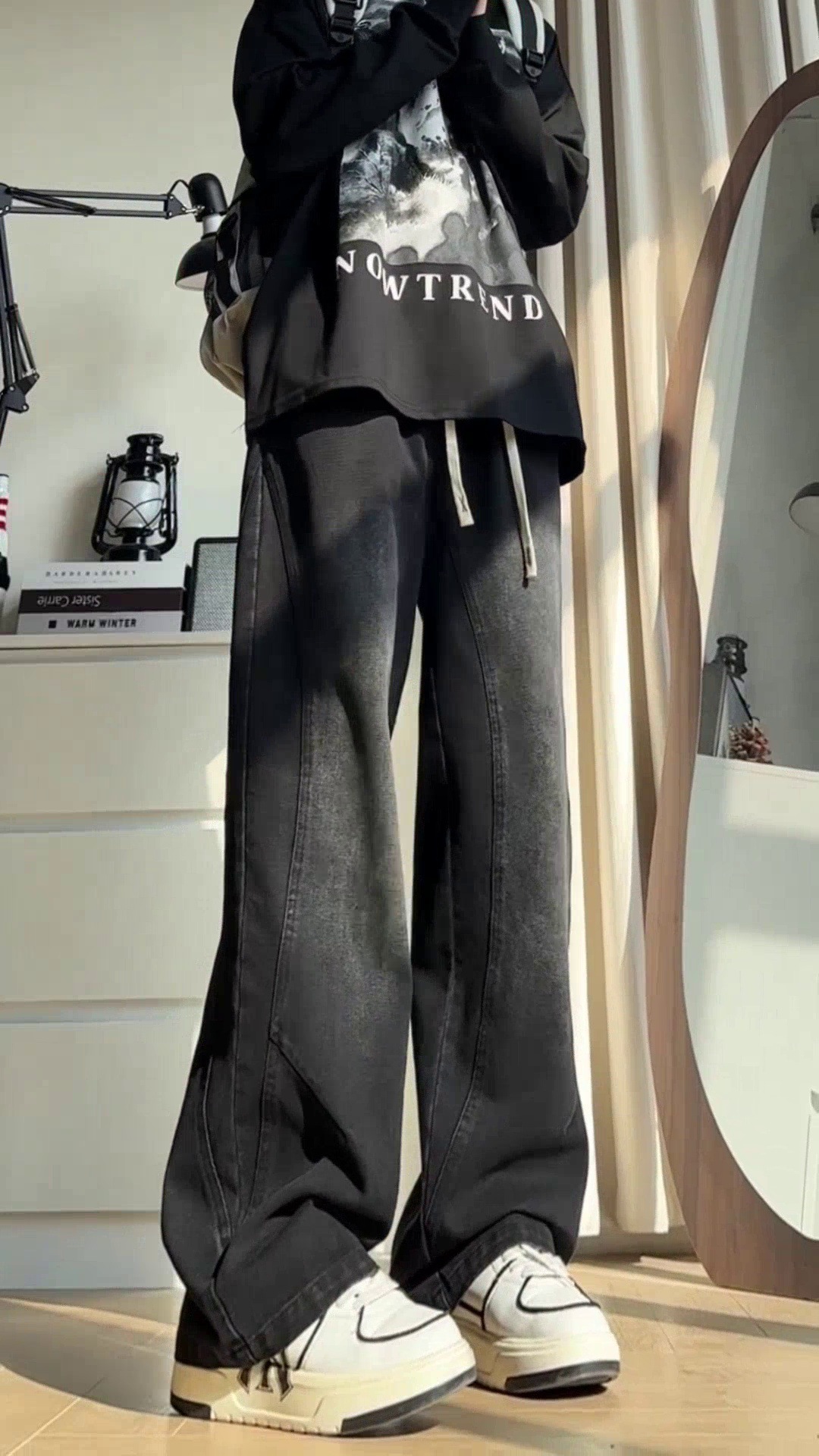 美式弯刀加绒牛仔裤男士冬季宽松大码男裤直筒复古高街厚款裤子