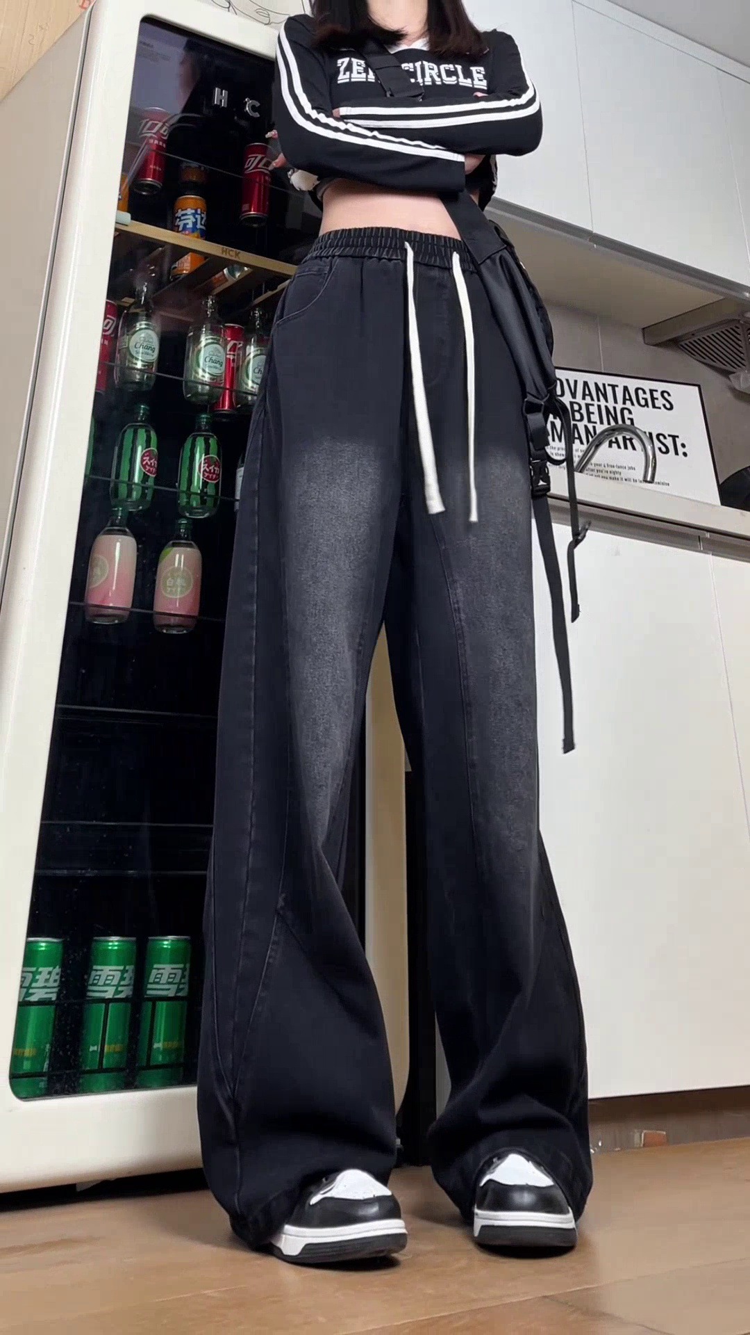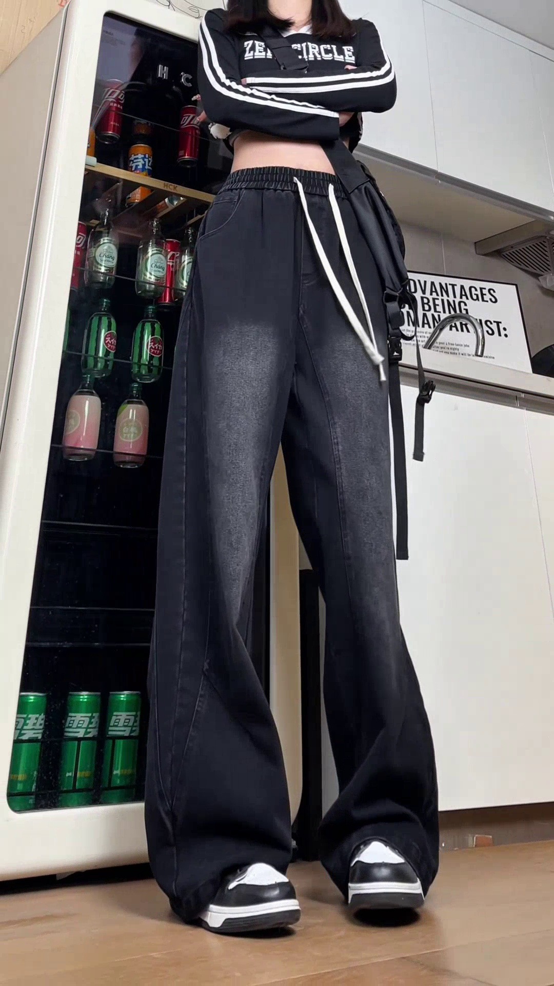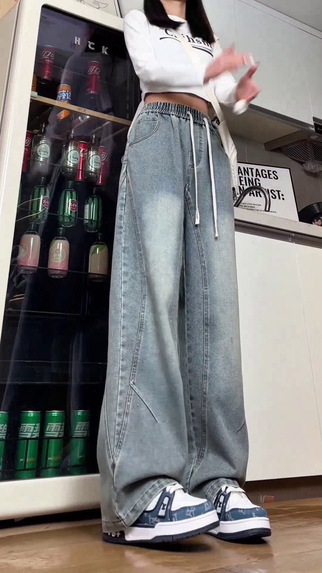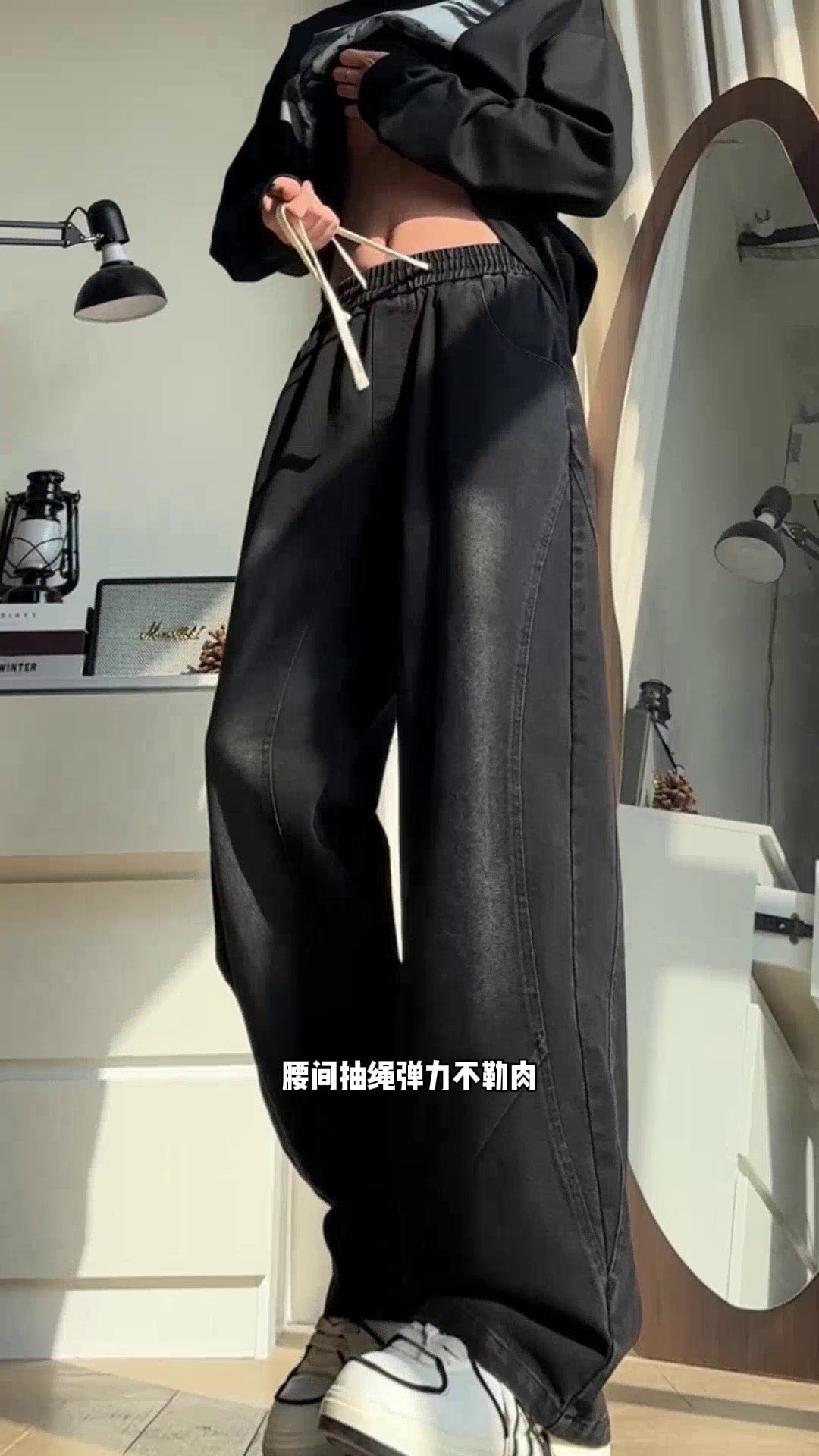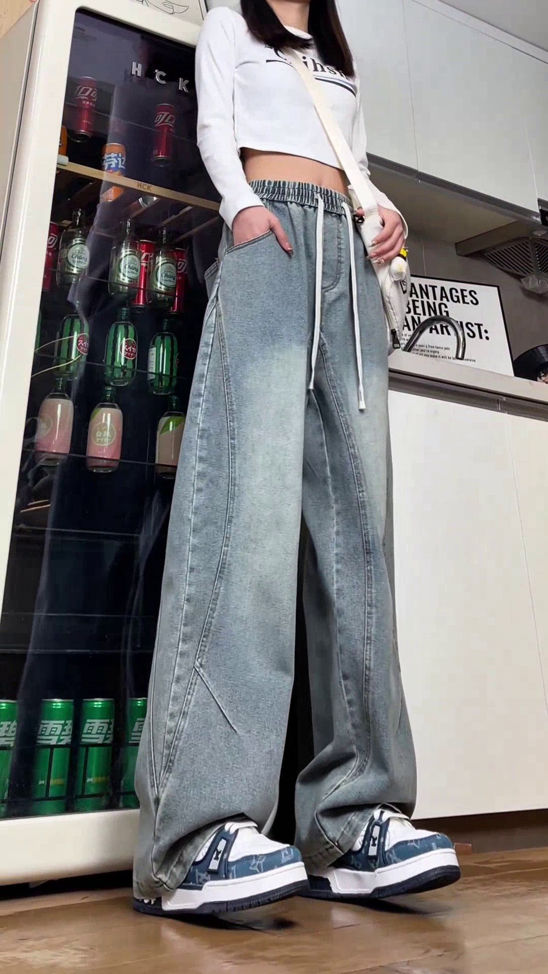 美式弯刀加绒牛仔裤男士冬季宽松大码男裤直筒复古高街厚款裤子