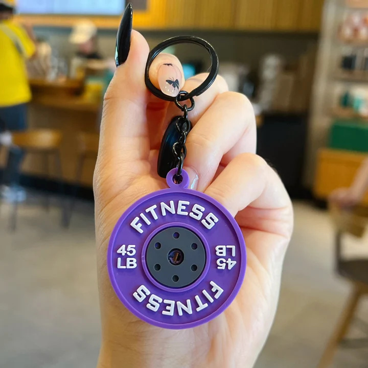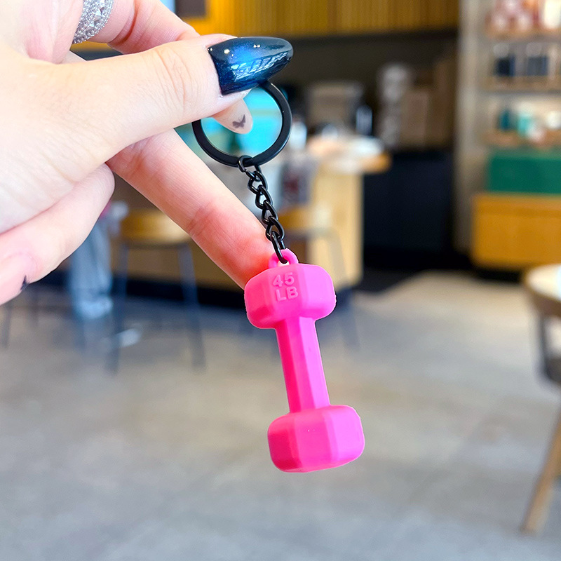 创意迷你健身杠铃片钥匙扣挂件情侣汽车包包钥匙链运动小挂饰批发