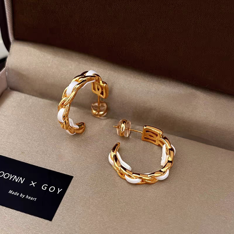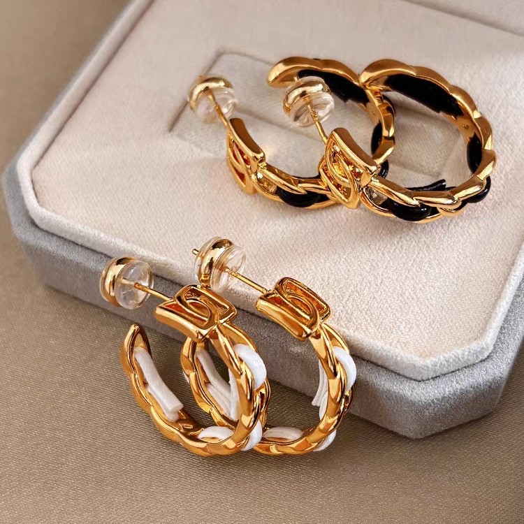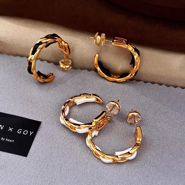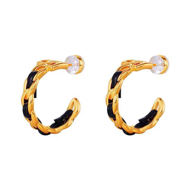 轻奢高级感秋冬耳圈耳饰黑色皮质小香风金色独特巨好看圆圈耳环女