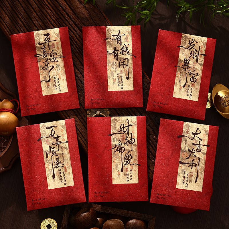 批发2026新款马年大吉方形红包书法创意春节祝福包利是封工厂直销