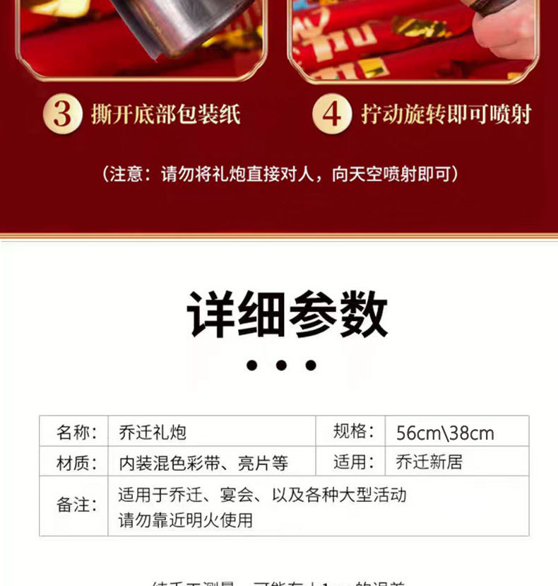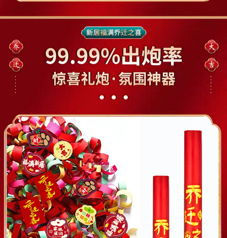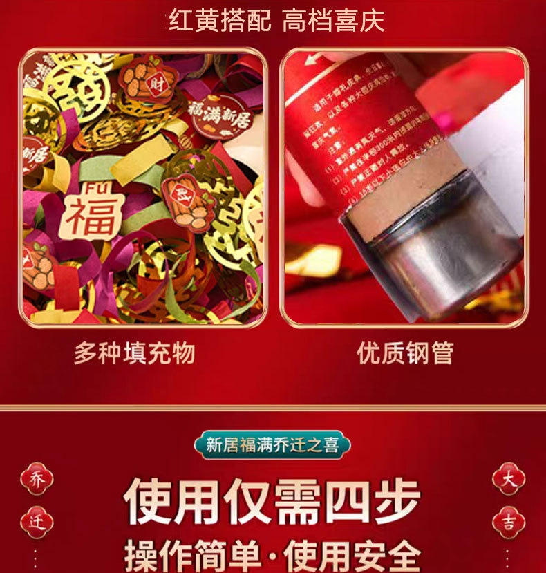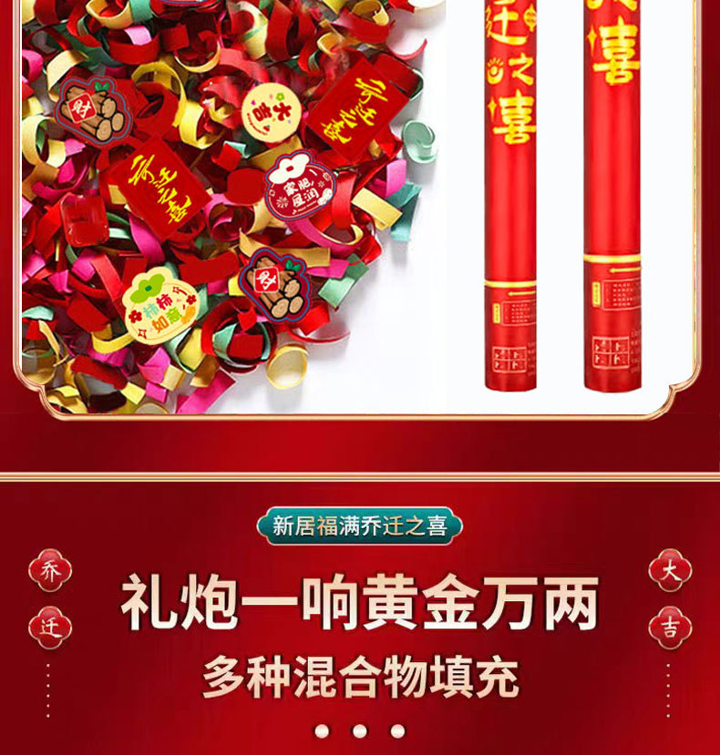 乔迁礼炮入宅仪式用品开工庆典礼花搬新家乔迁之喜开业手拧喷花筒