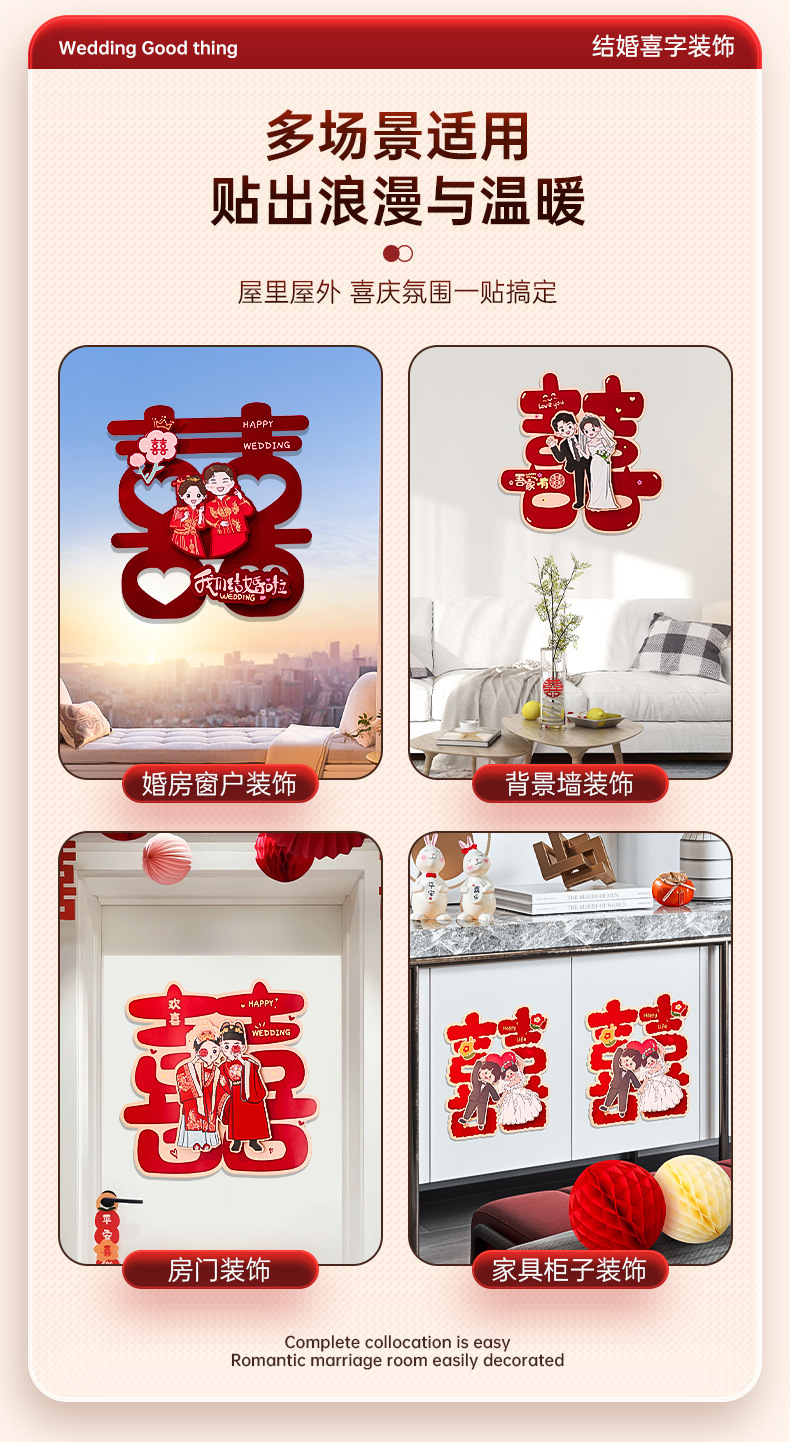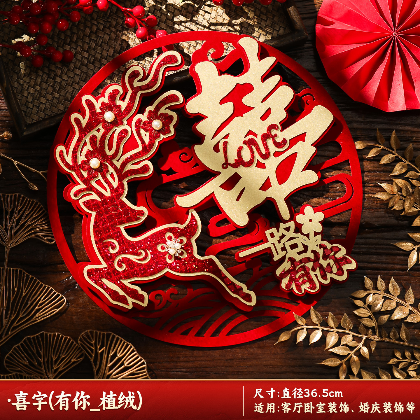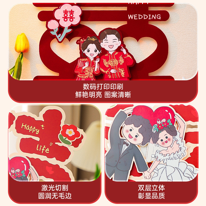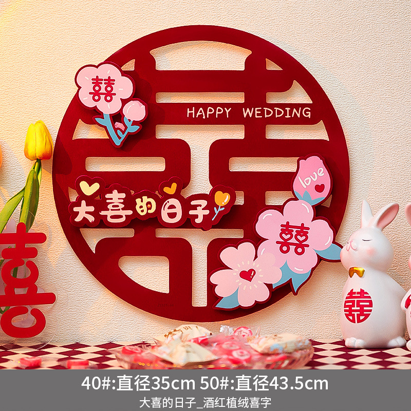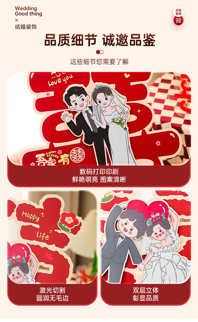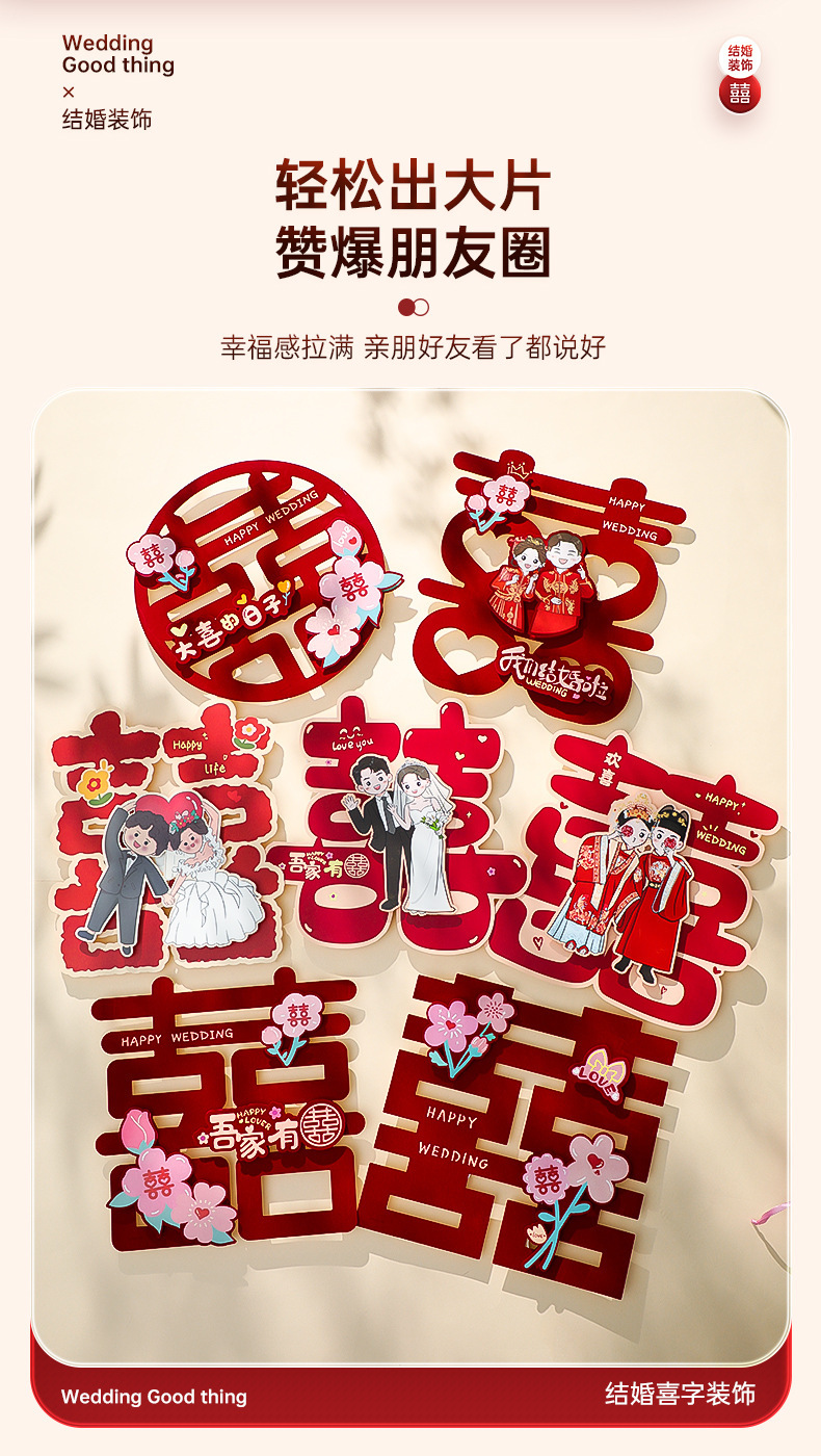 结婚喜字婚房布置用品卧室床头装饰入户大门立体囍字贴纸婚庆用品