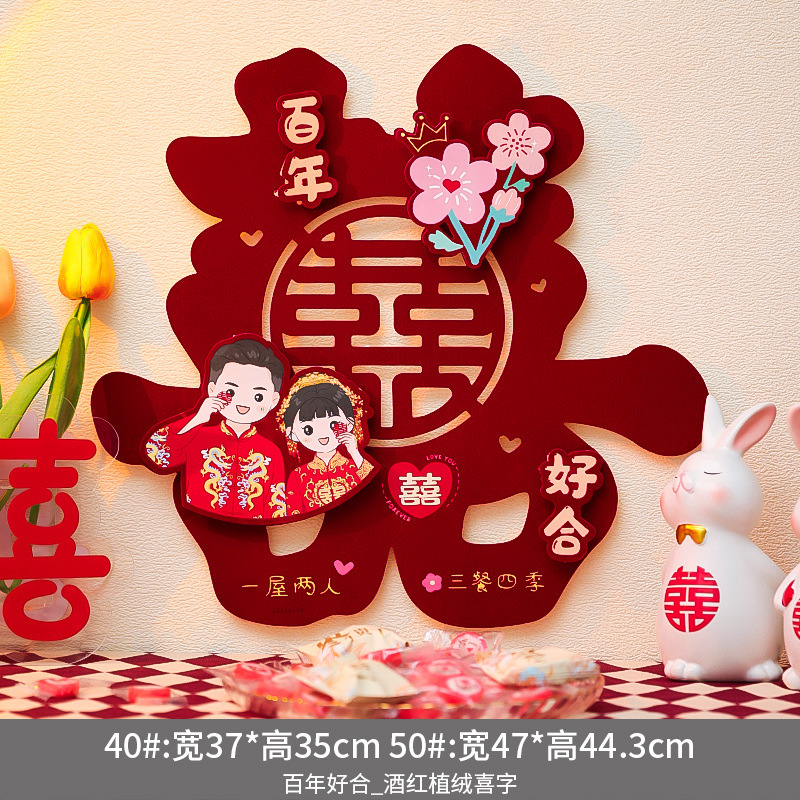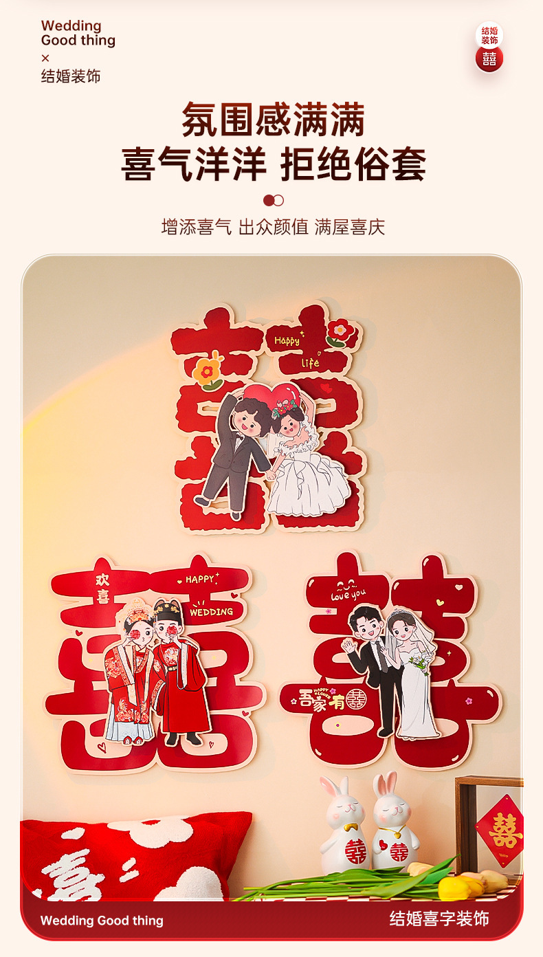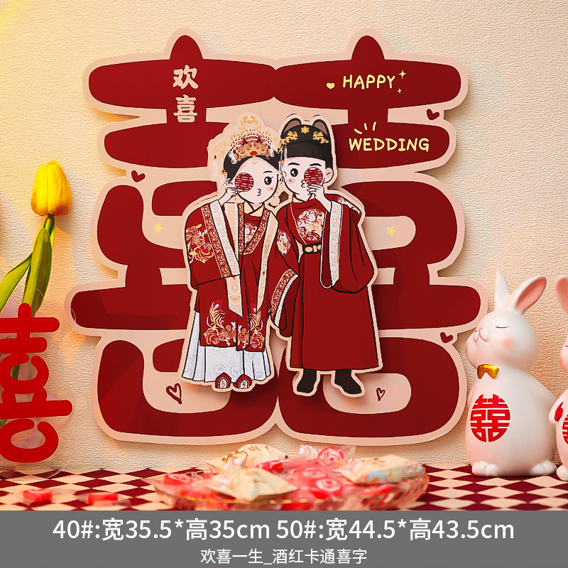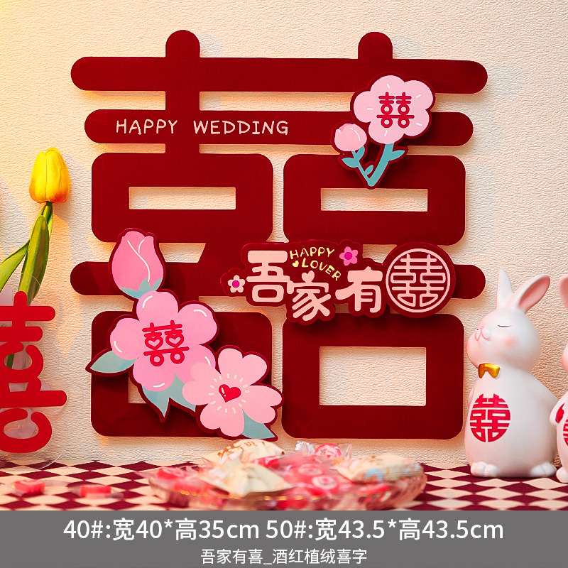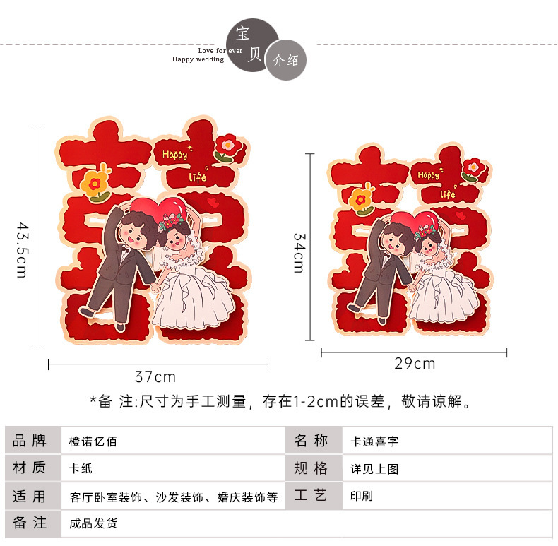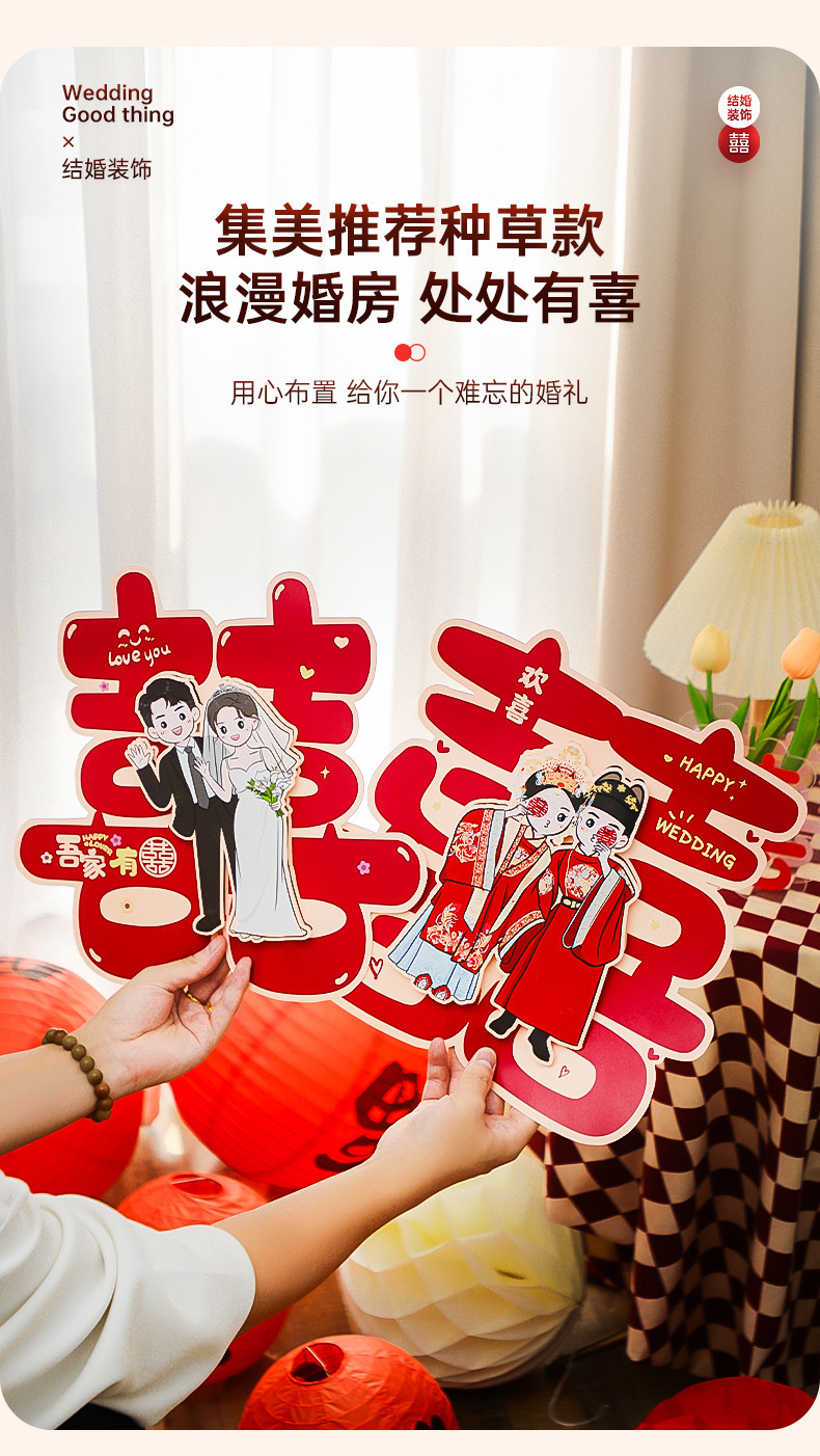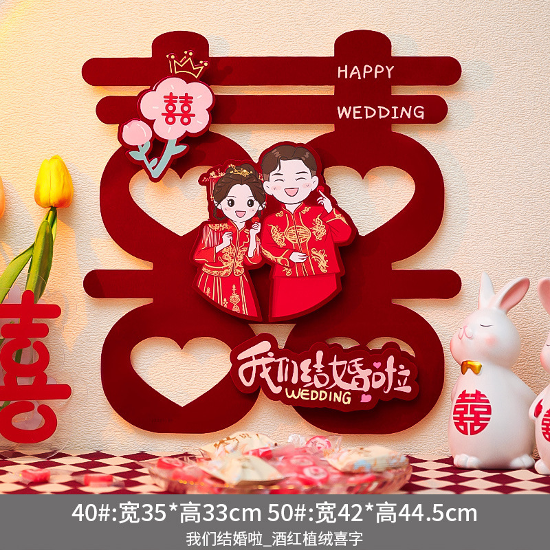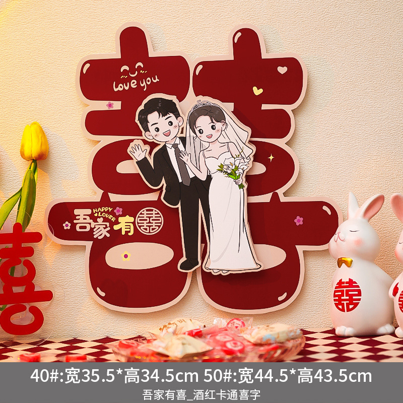 结婚喜字婚房布置用品卧室床头装饰入户大门立体囍字贴纸婚庆用品