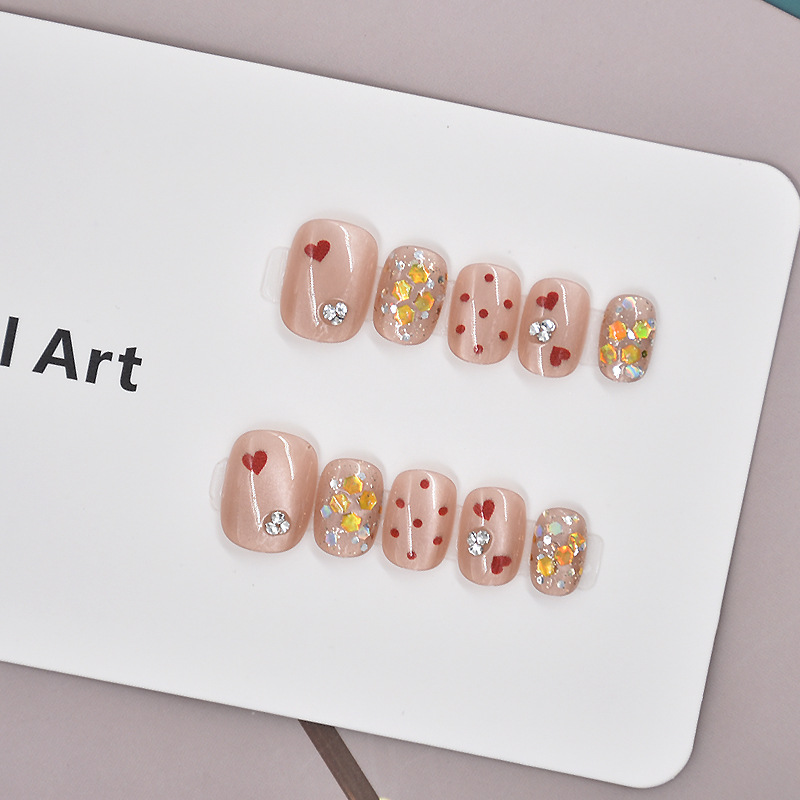 直播爆款新品手工贴钻穿戴美甲爱心猫眼气质显白手工预制甲批发