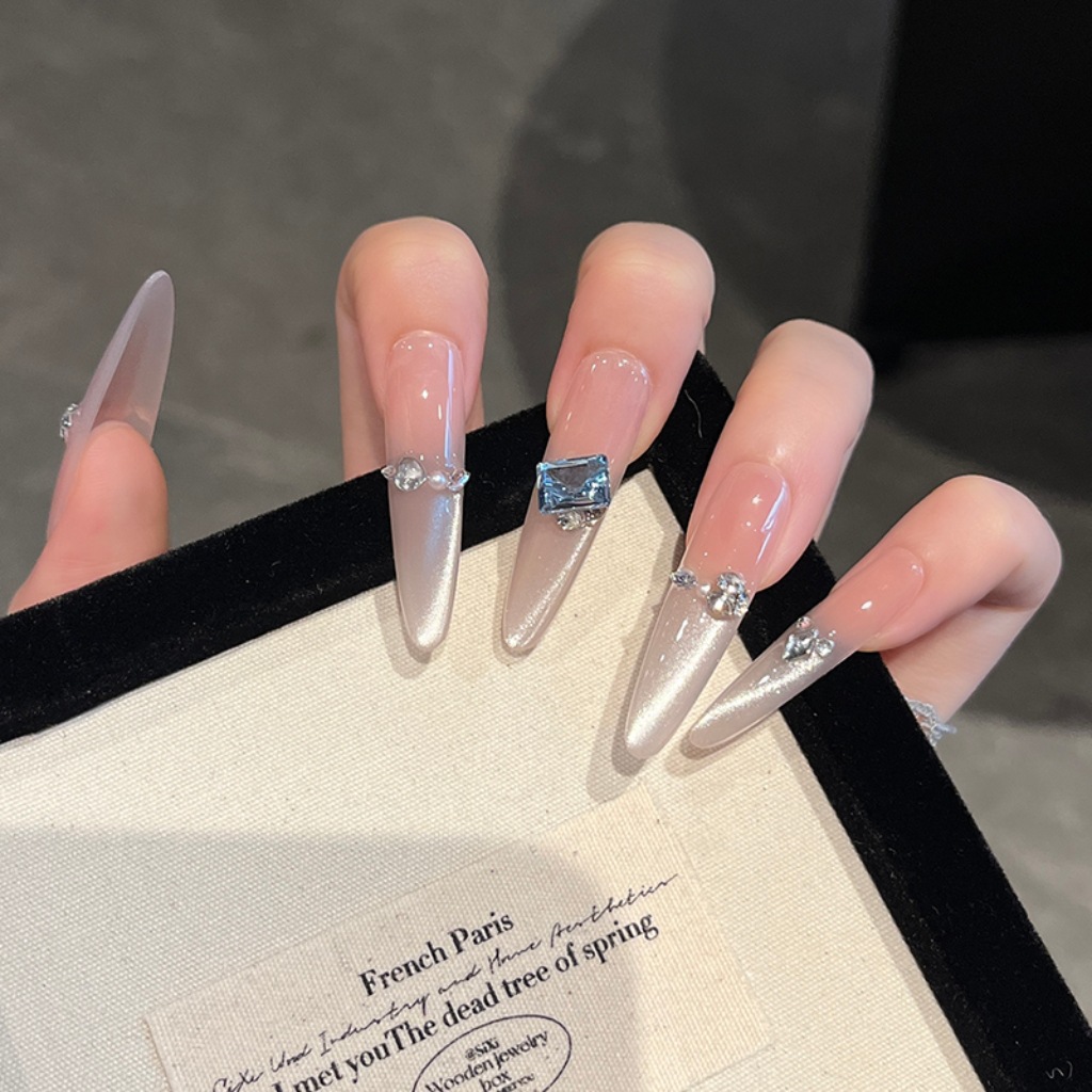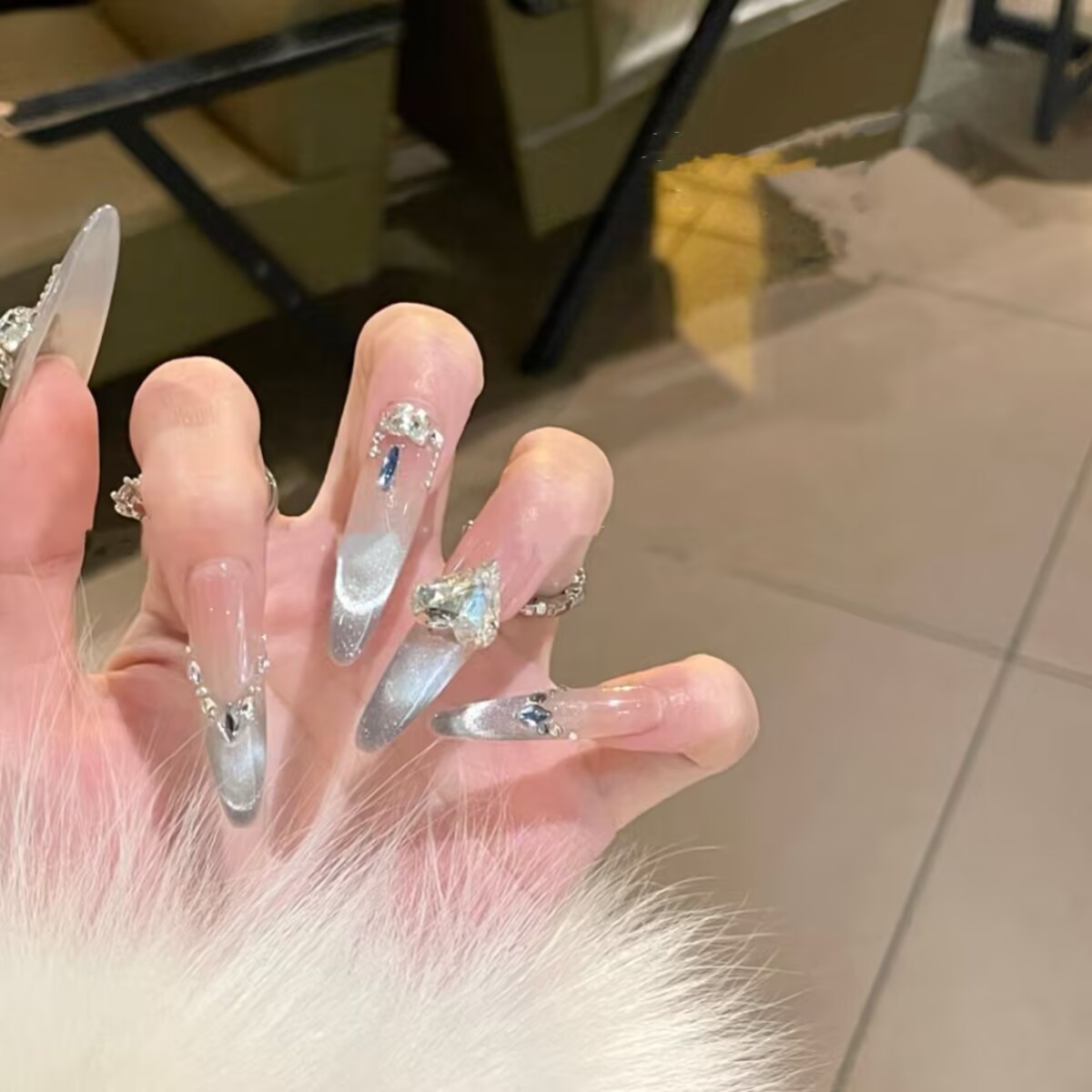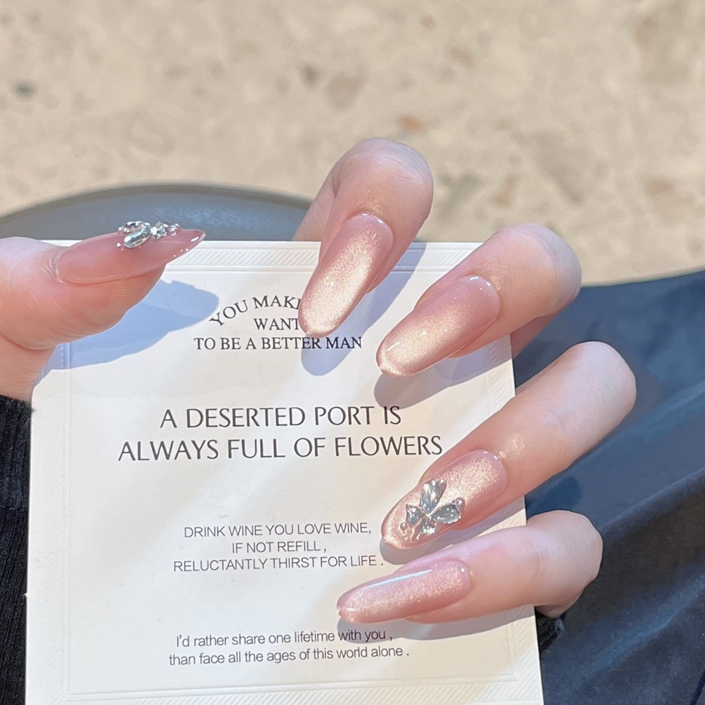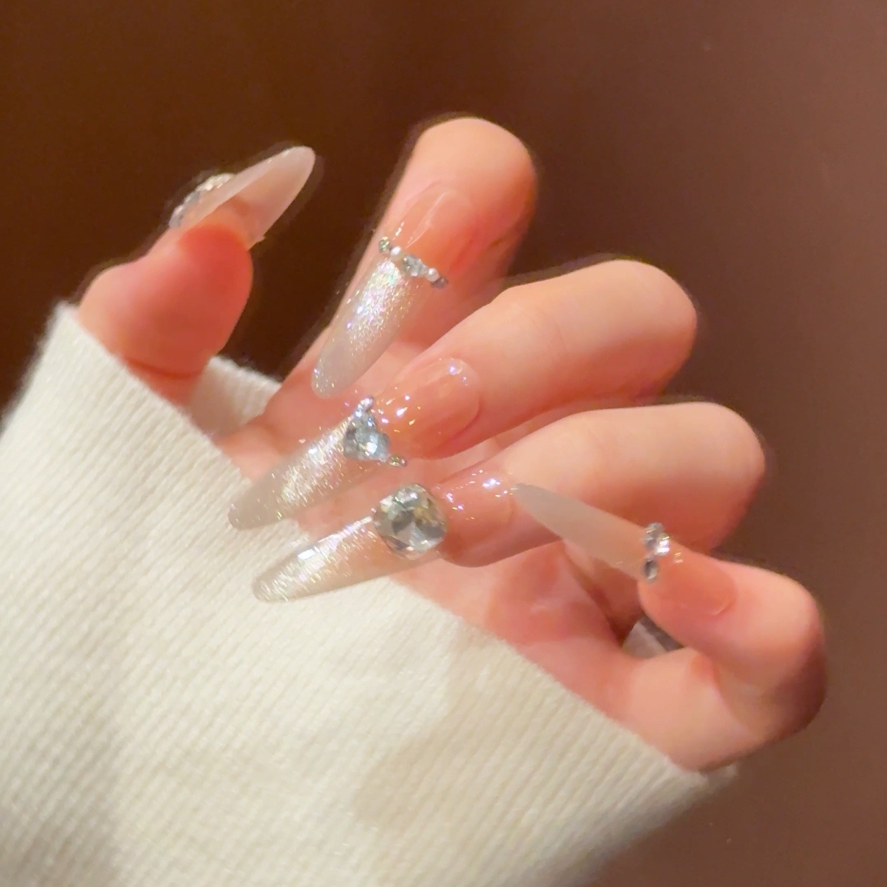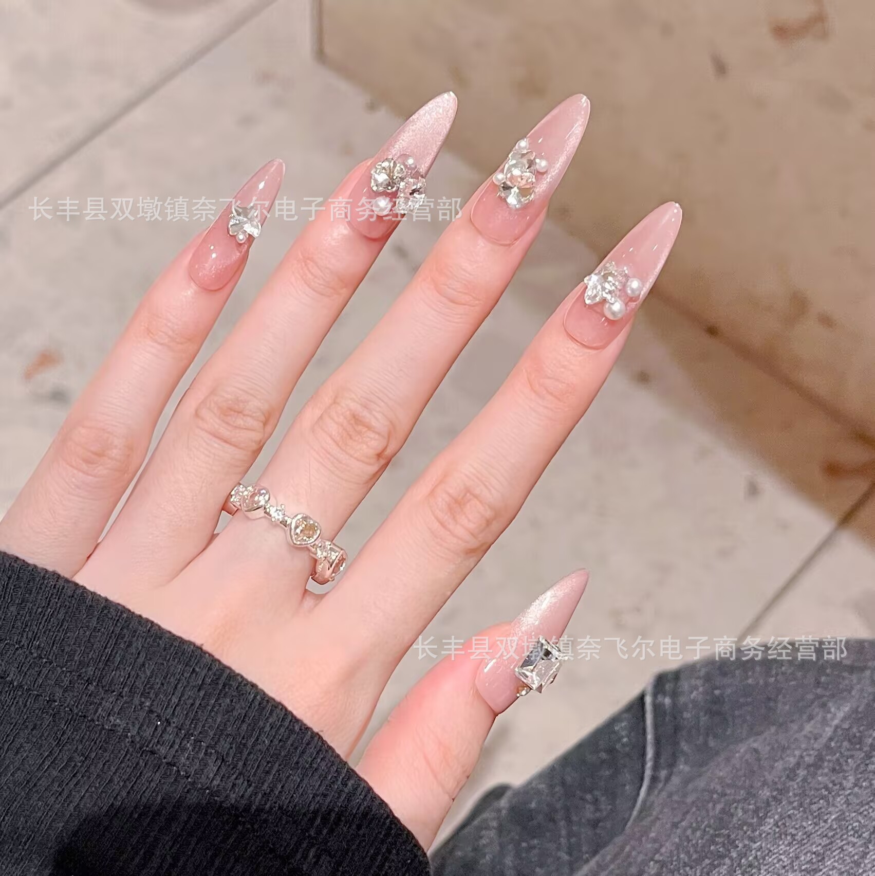 纯手工纯欲风穿戴甲细狗长款法式猫眼美甲甲片成品可拆卸厂家批发