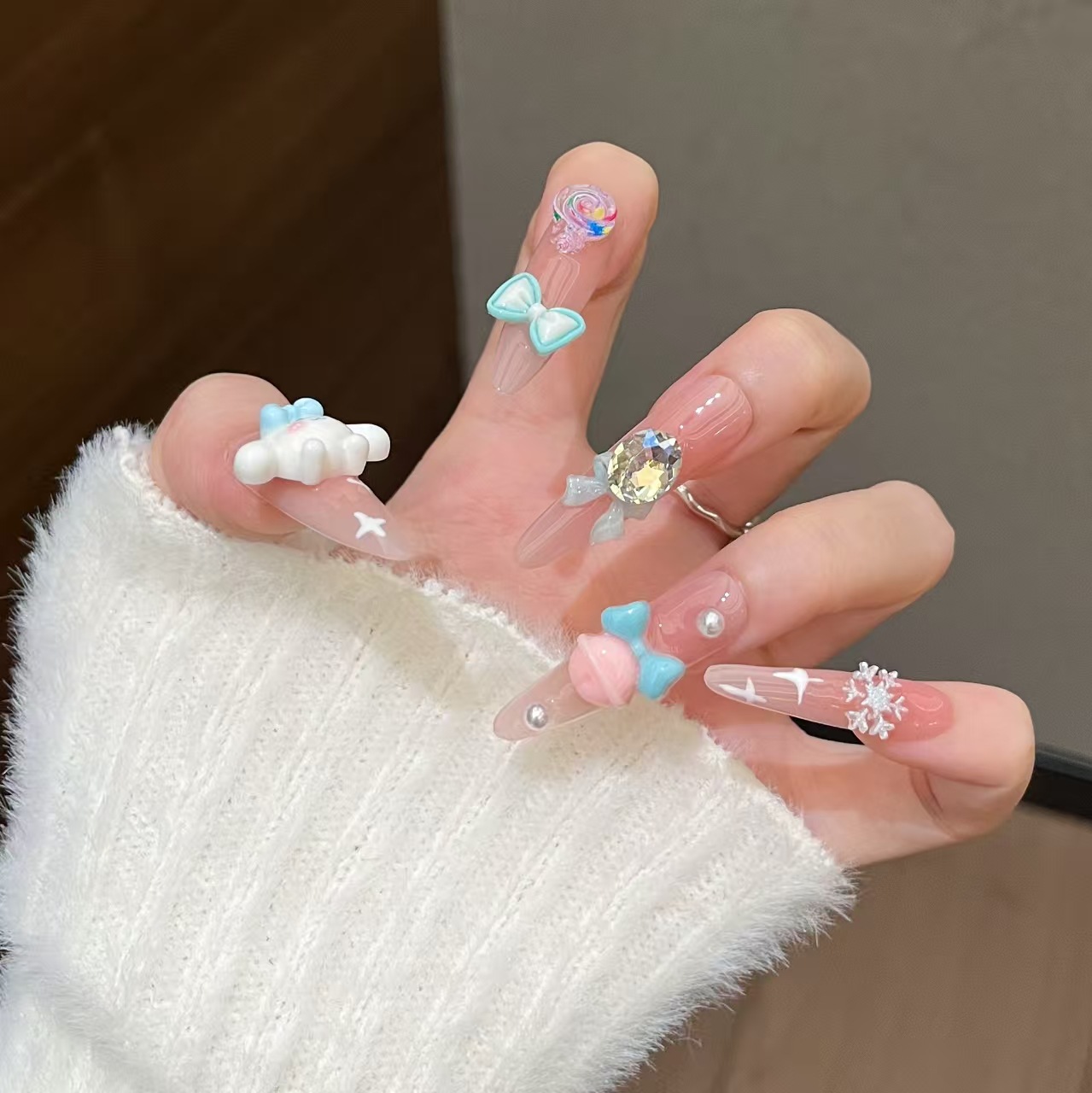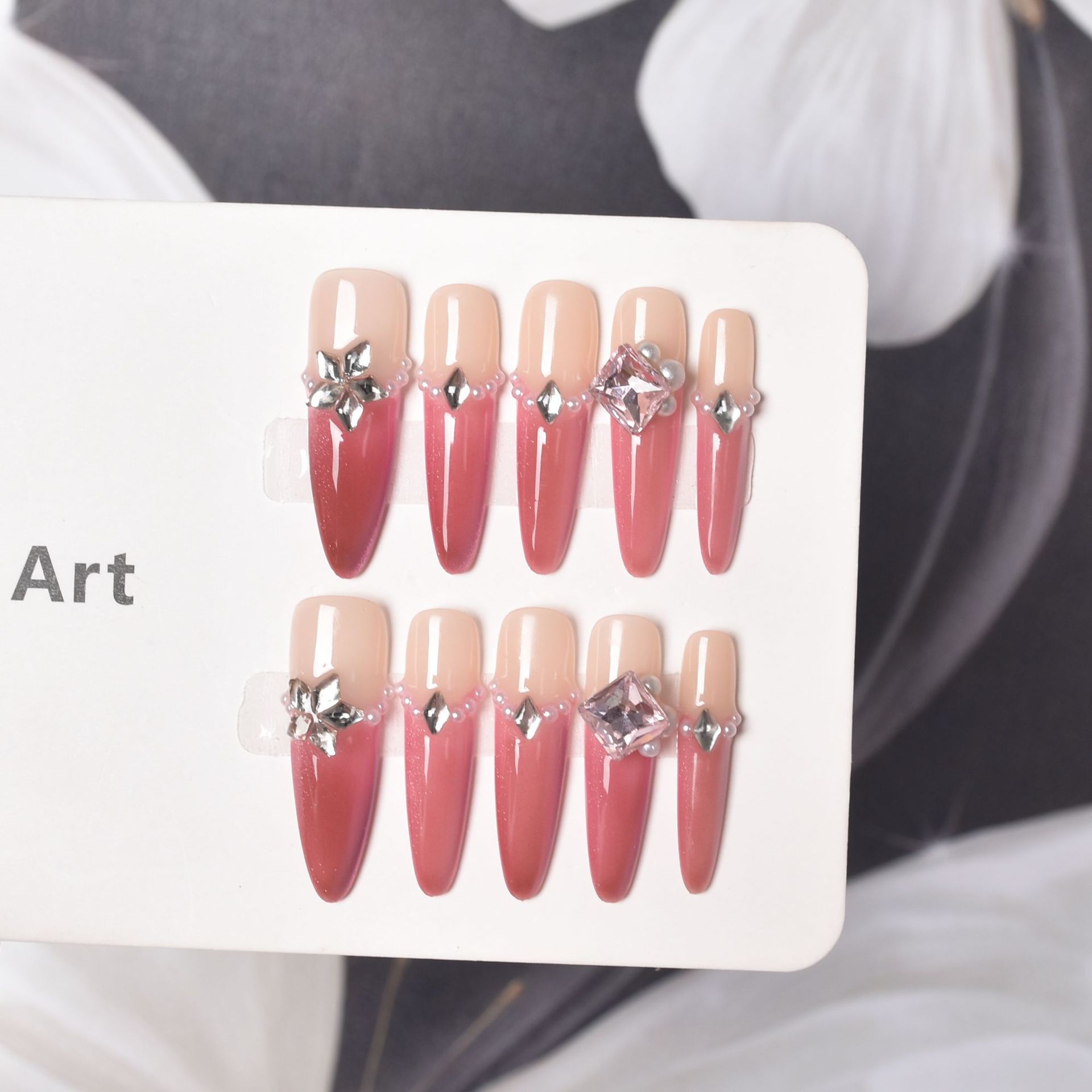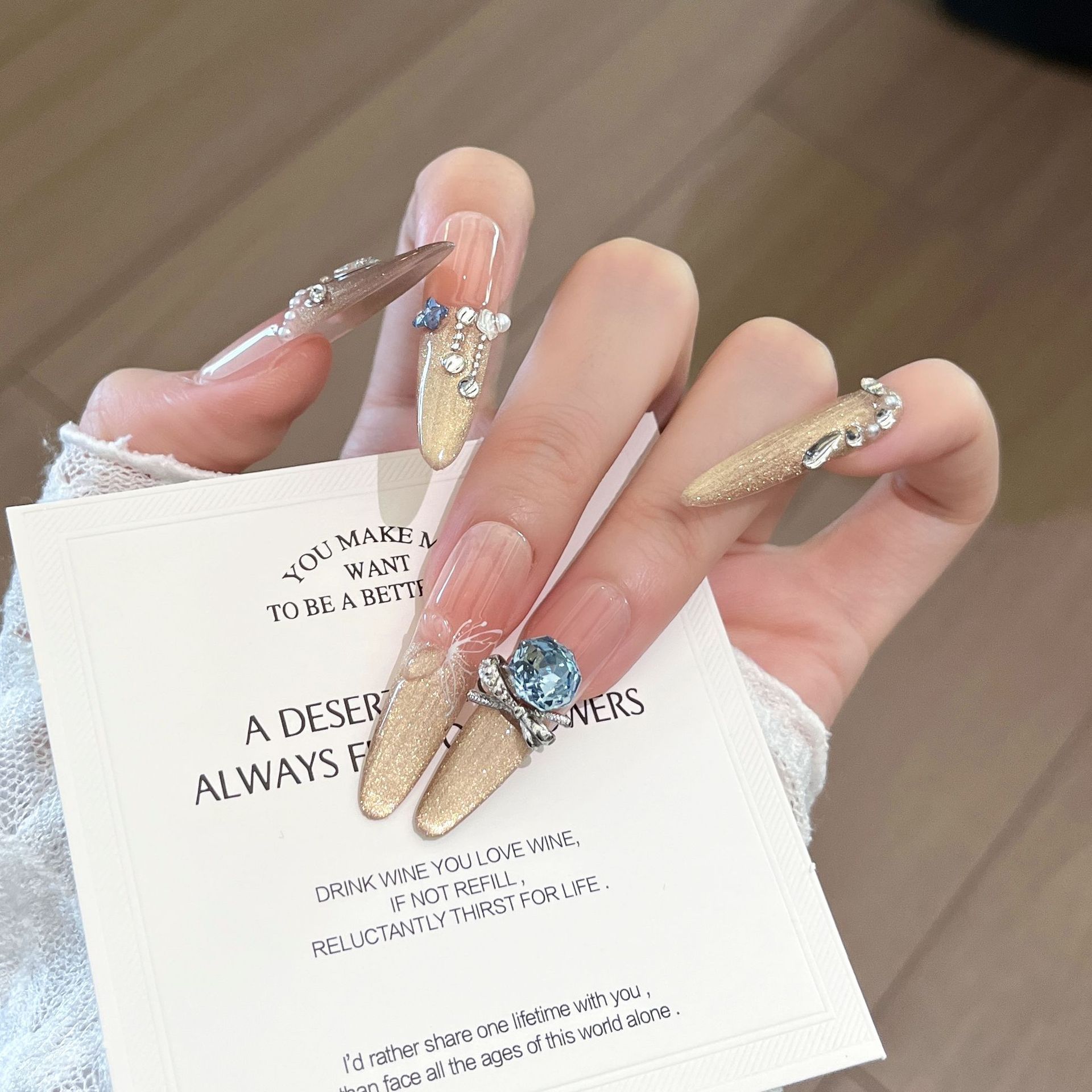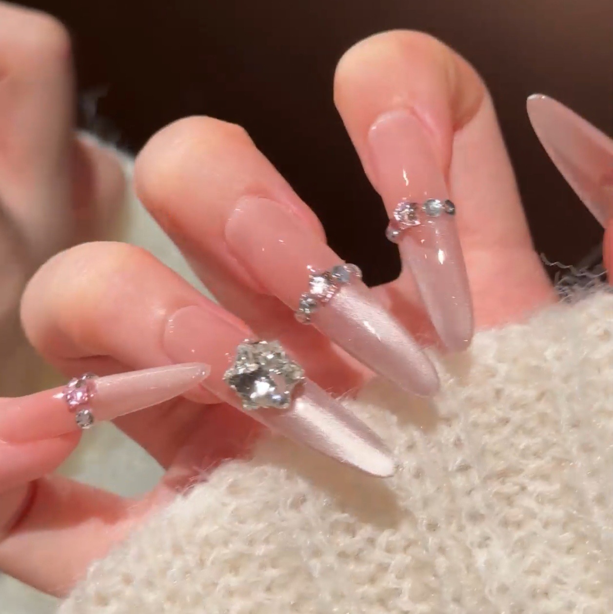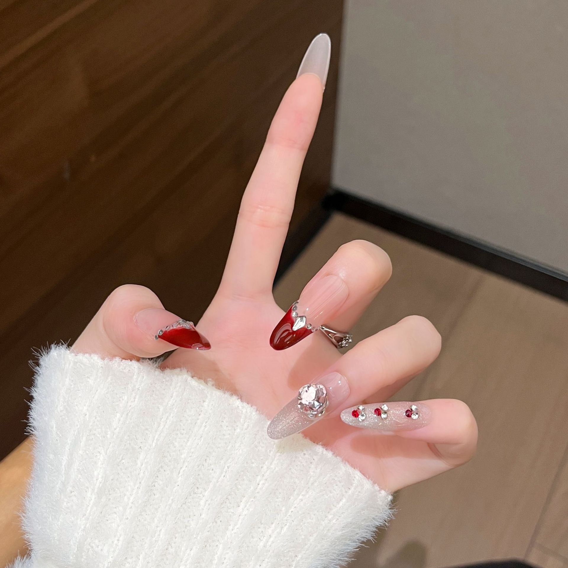 纯手工纯欲风穿戴甲细狗长款法式猫眼美甲甲片成品可拆卸厂家批发