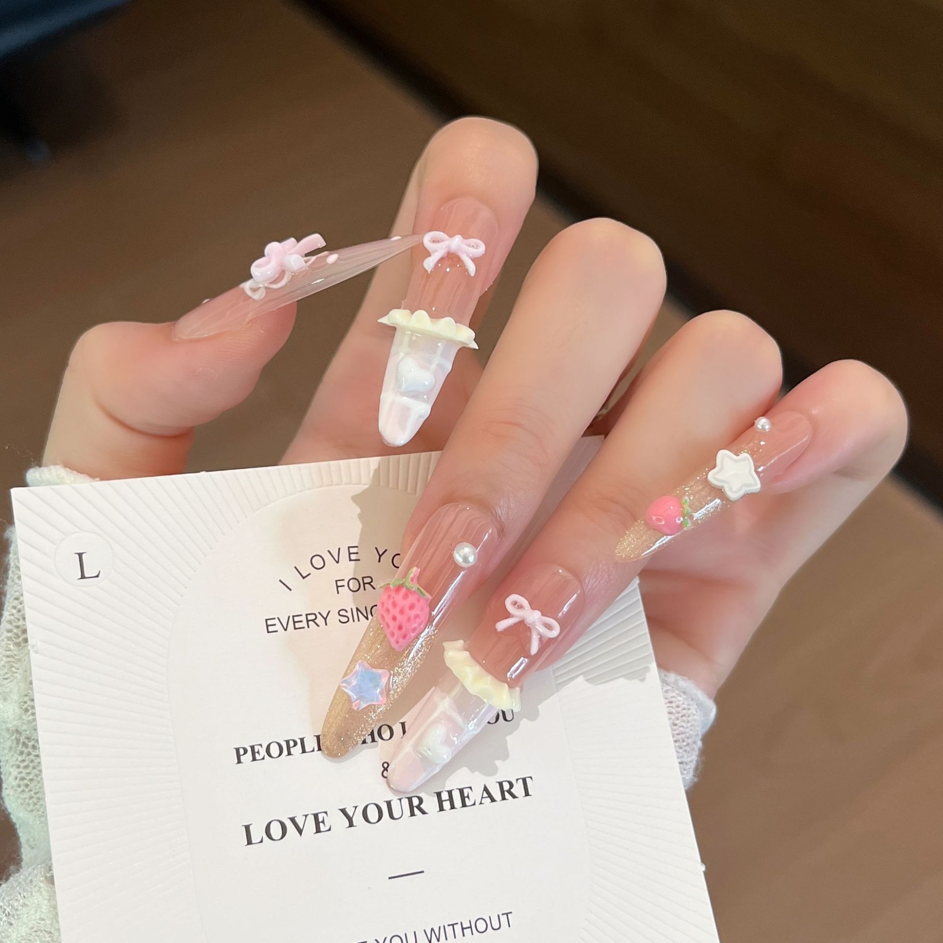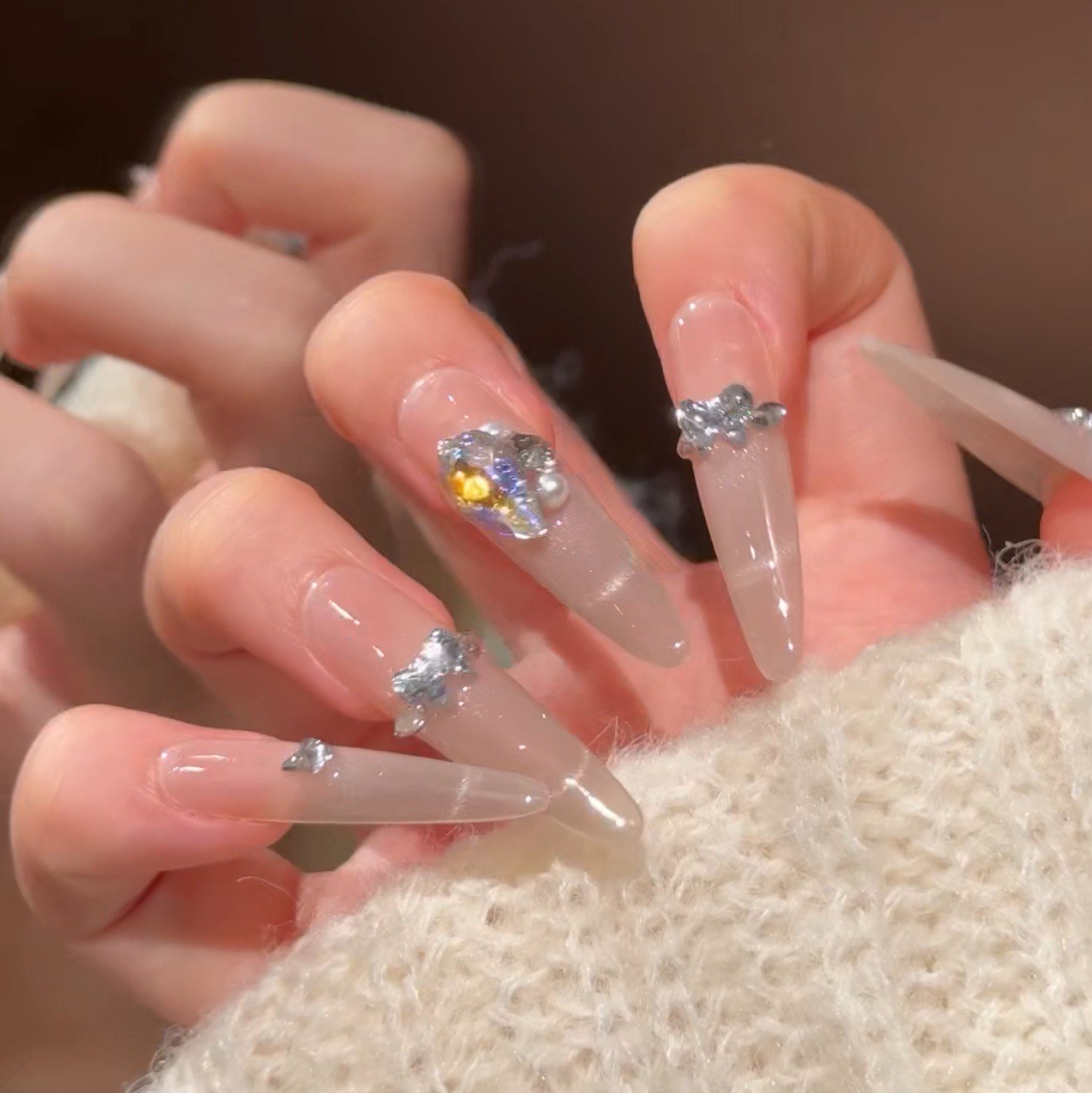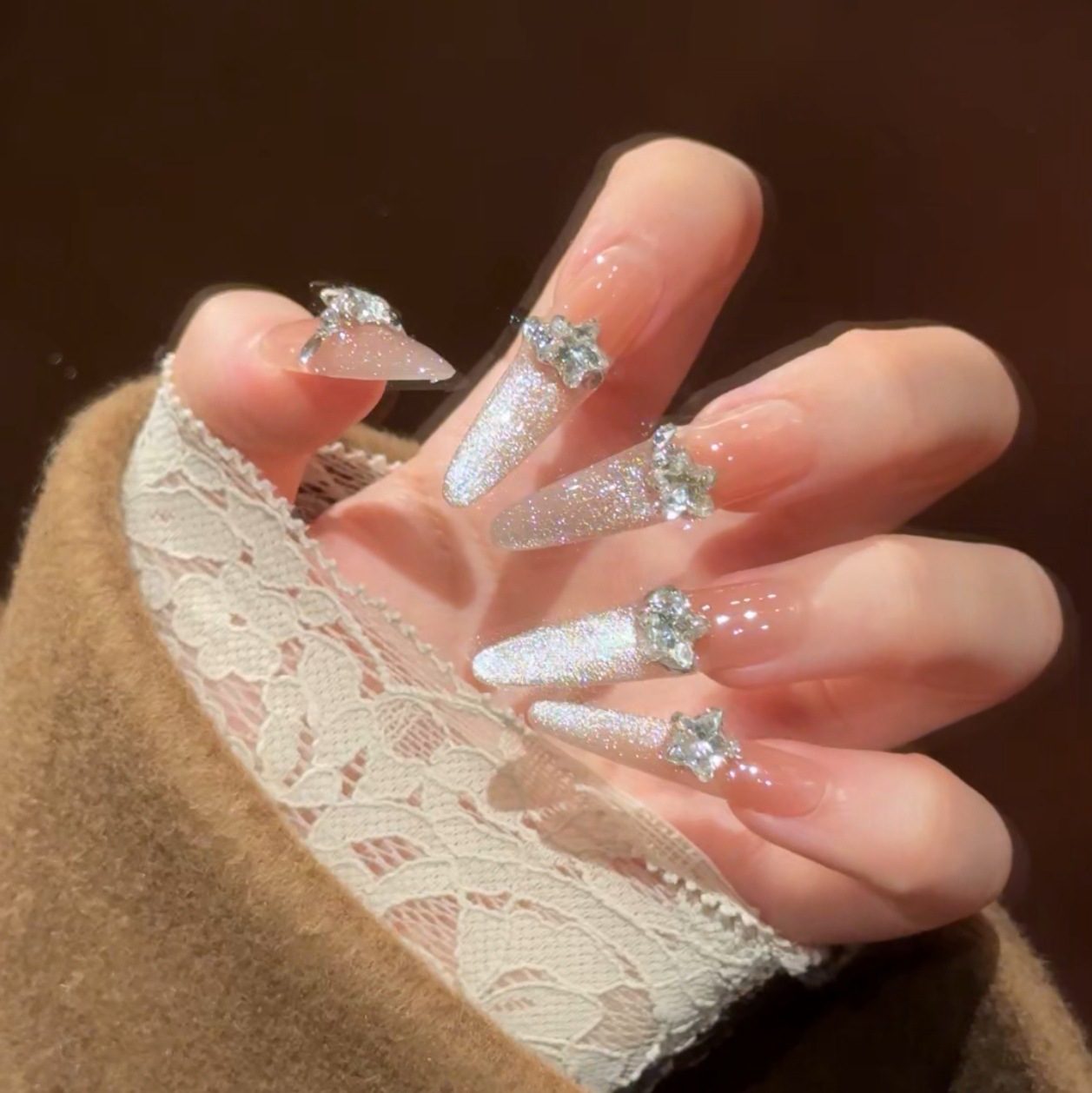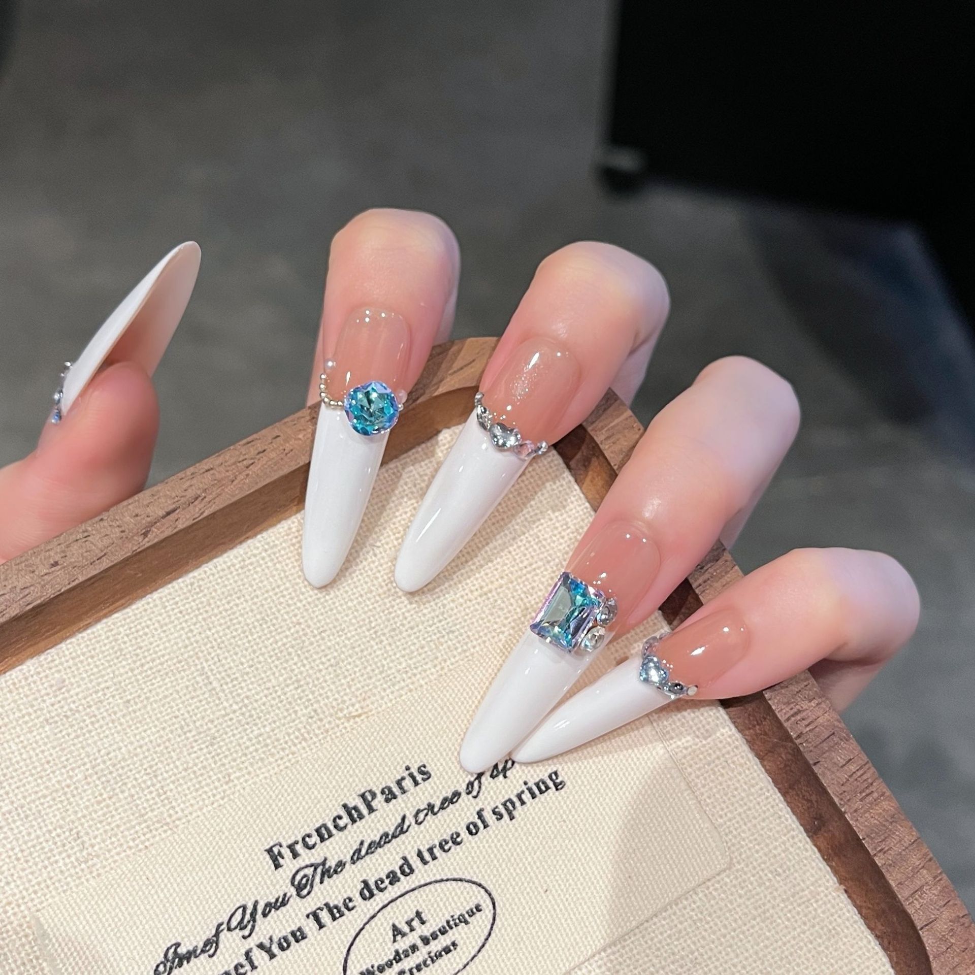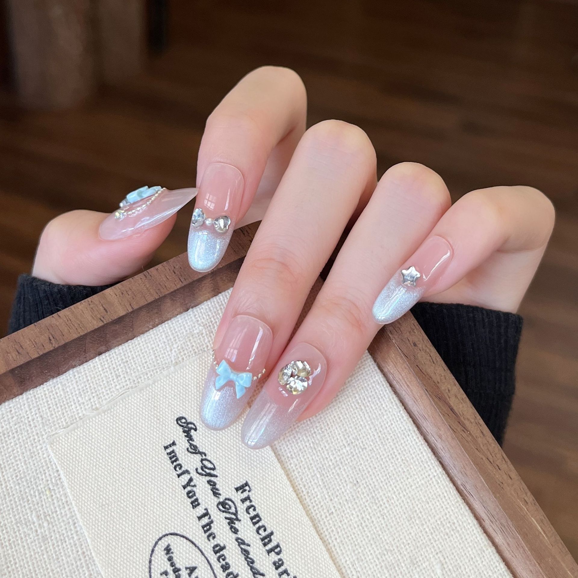 纯手工纯欲风穿戴甲细狗长款法式猫眼美甲甲片成品可拆卸厂家批发