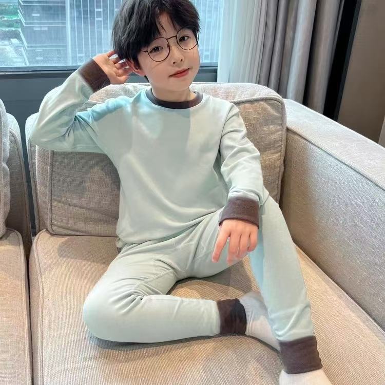 儿童秋衣秋裤宝宝秋冬季德绒保暖内衣套装男童磨毛睡衣家居服秋裤