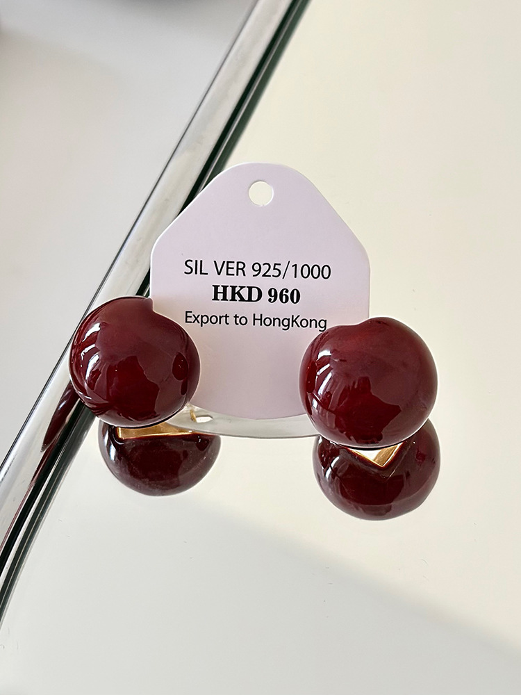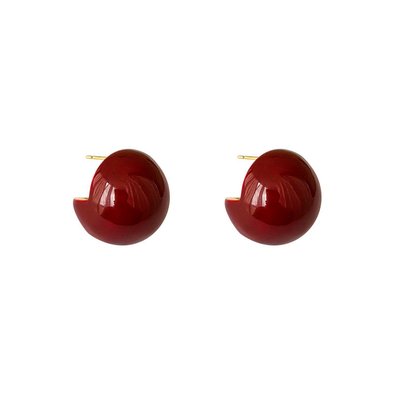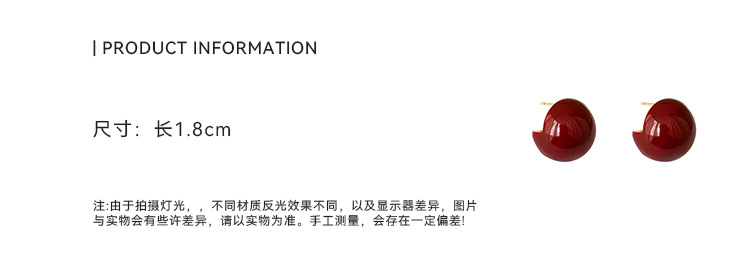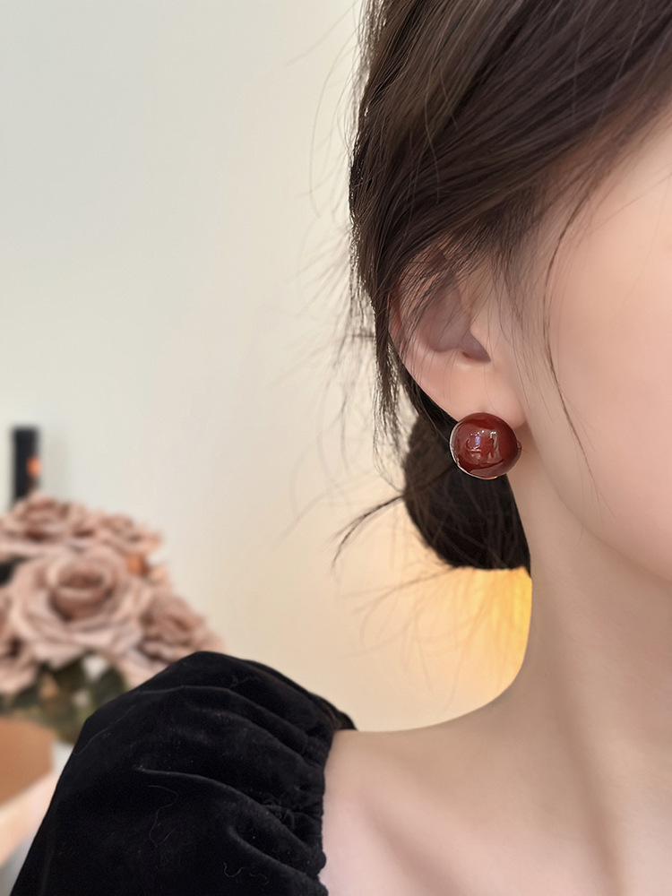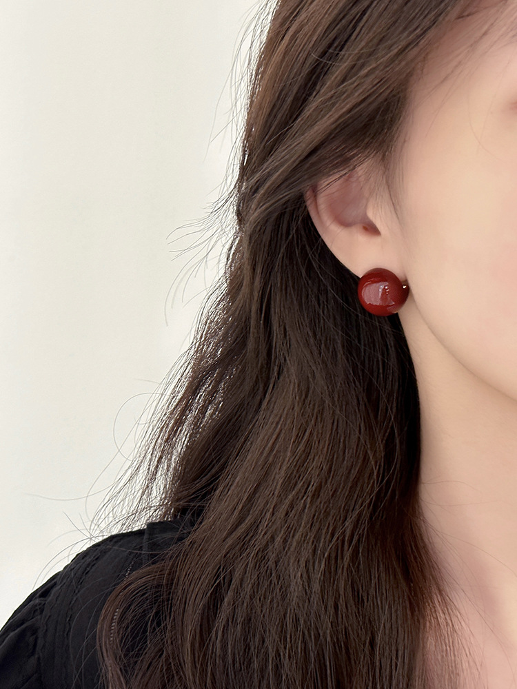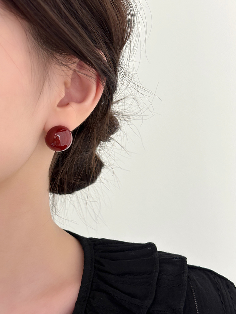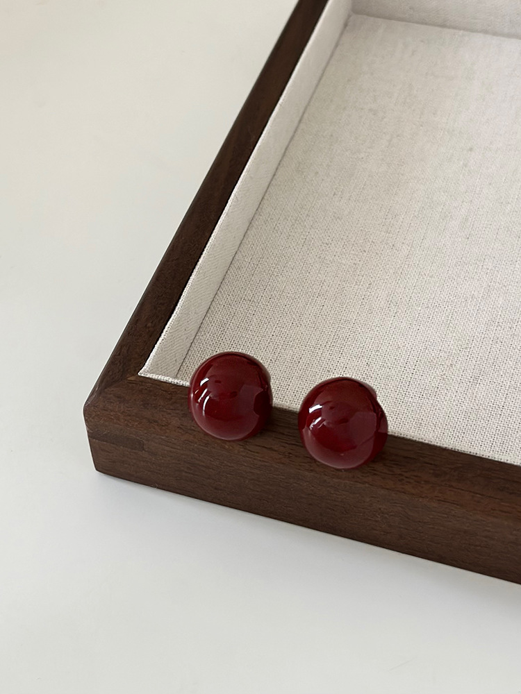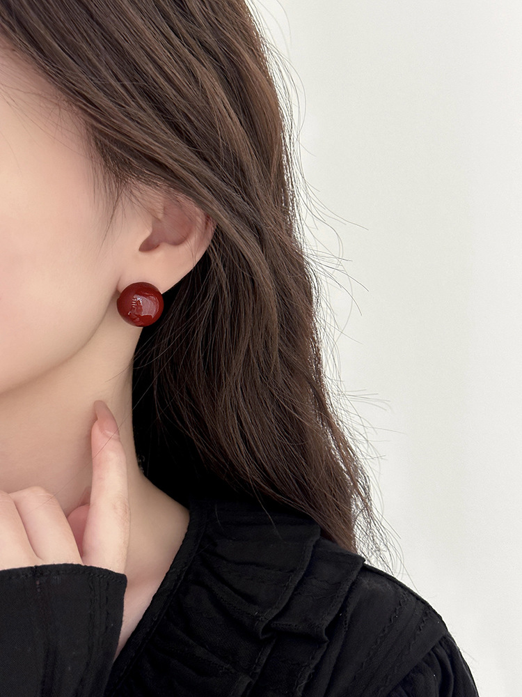 秋冬新年红色耳钉S925银针勃艮第红色滴油高级耳钉耳饰气质耳环