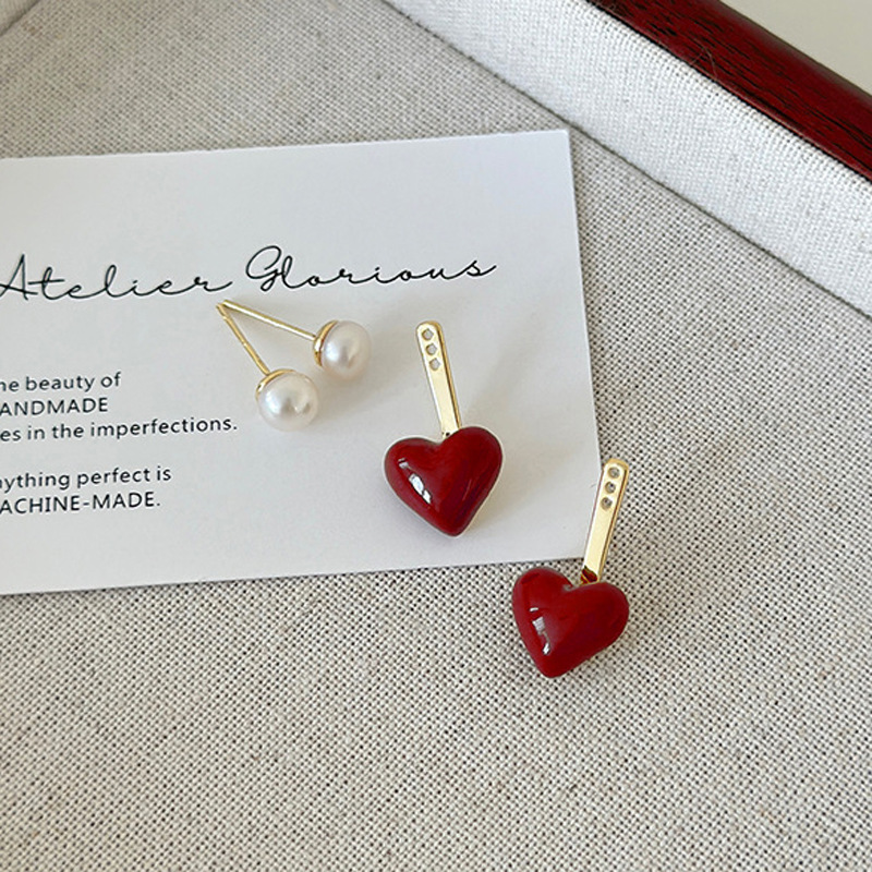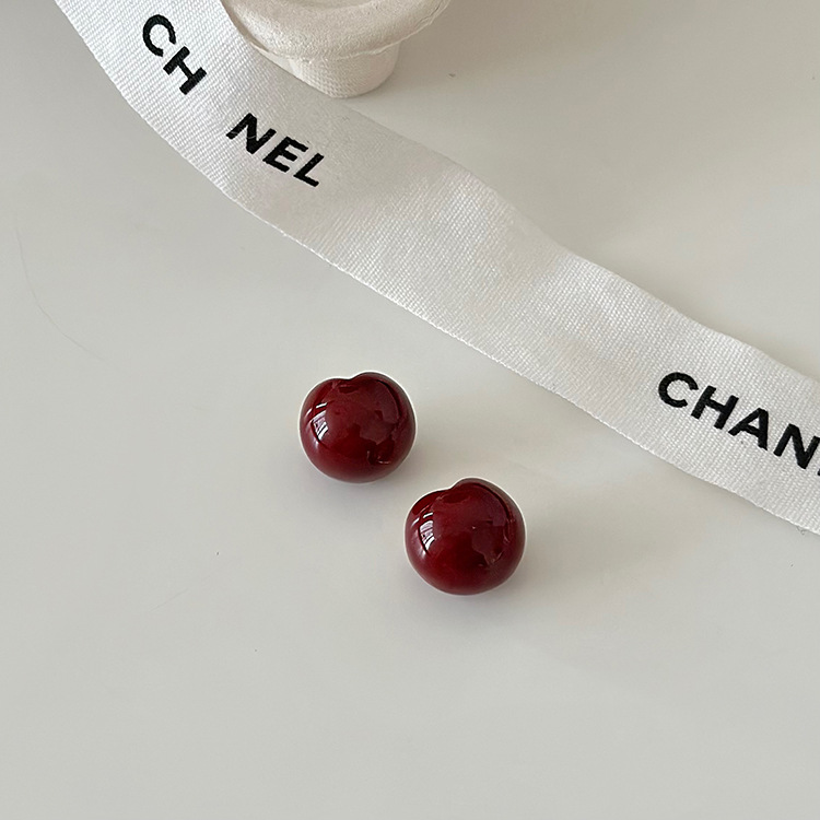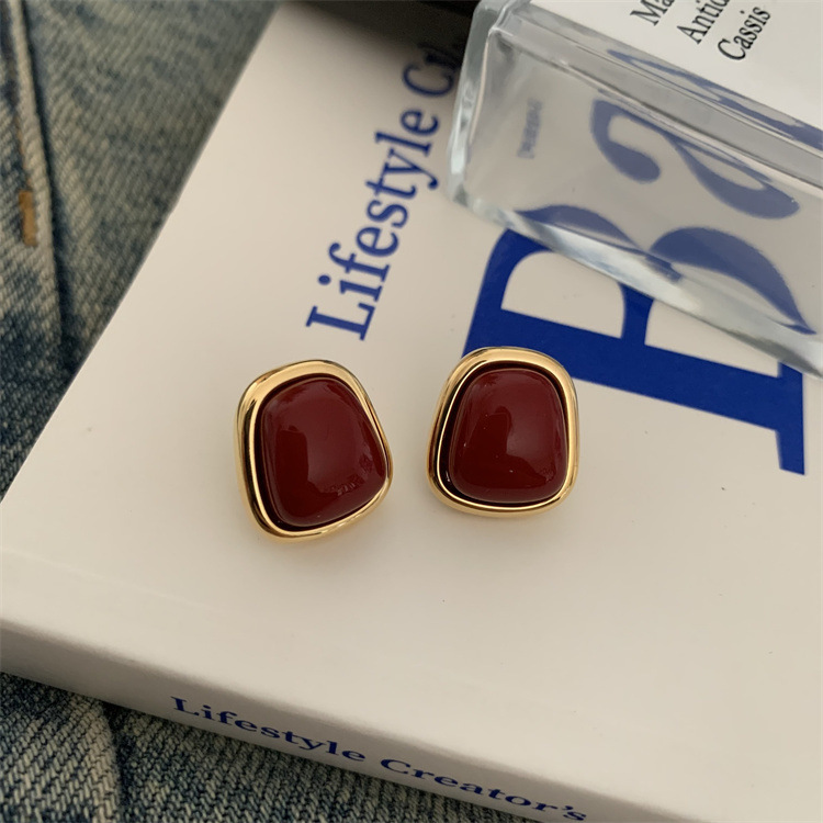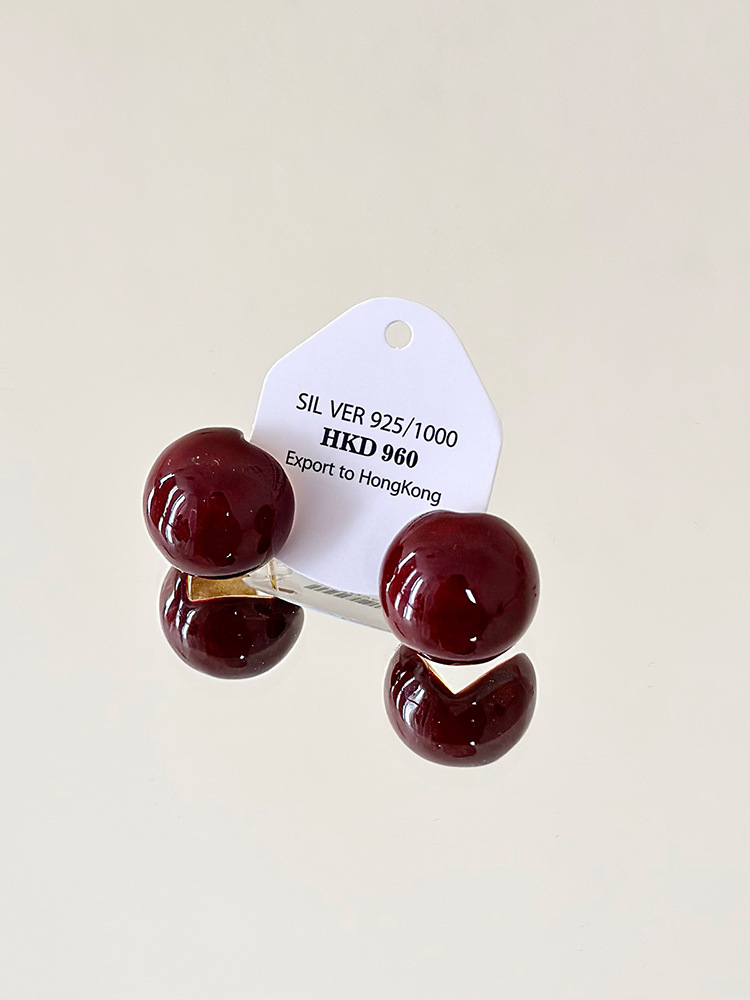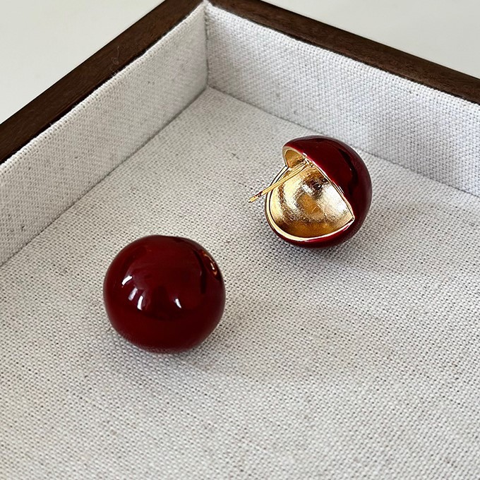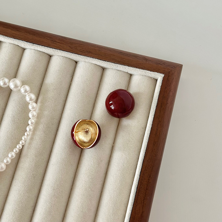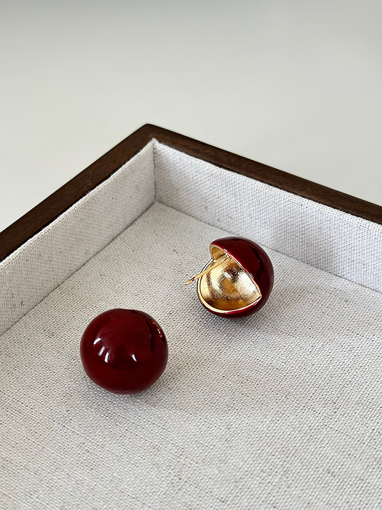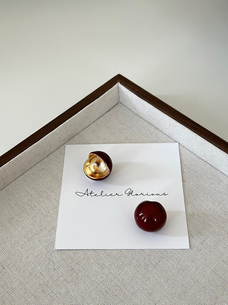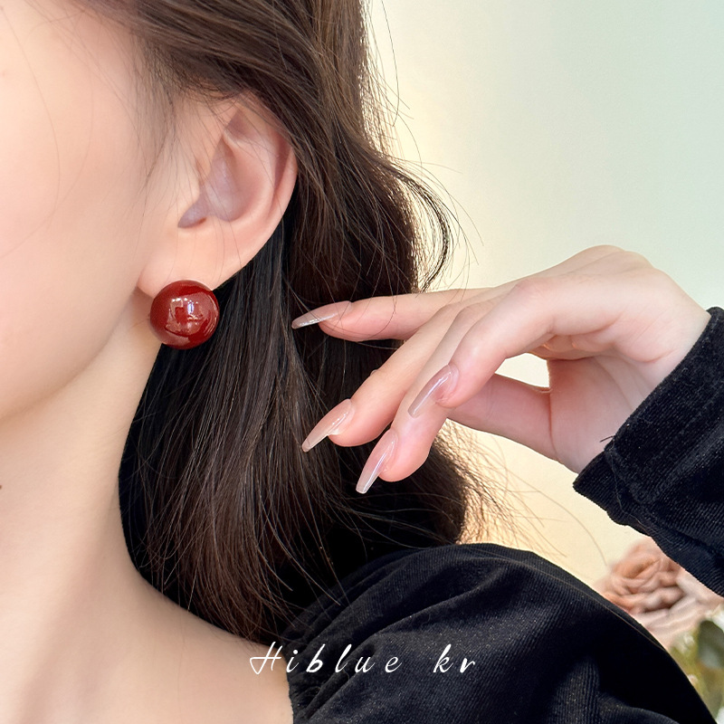 秋冬新年红色耳钉S925银针勃艮第红色滴油高级耳钉耳饰气质耳环