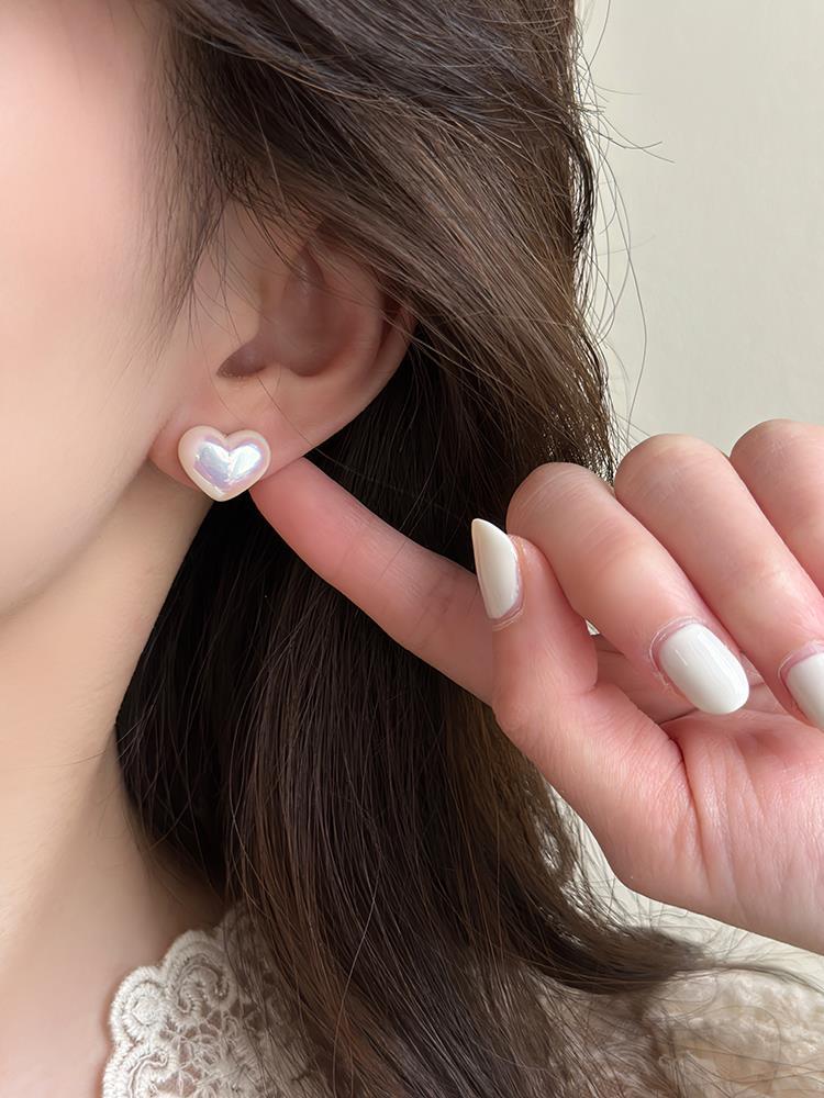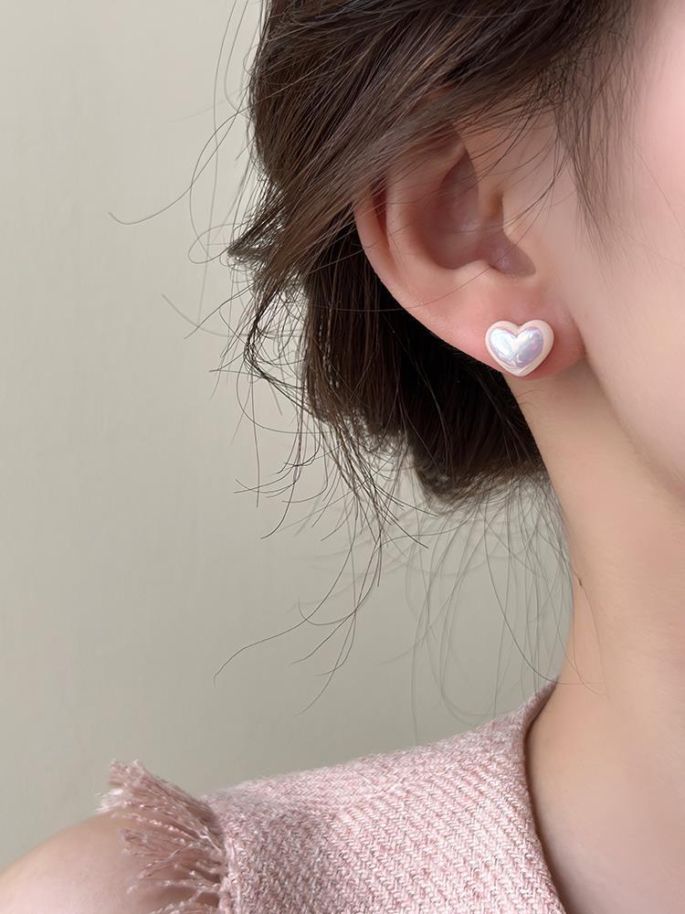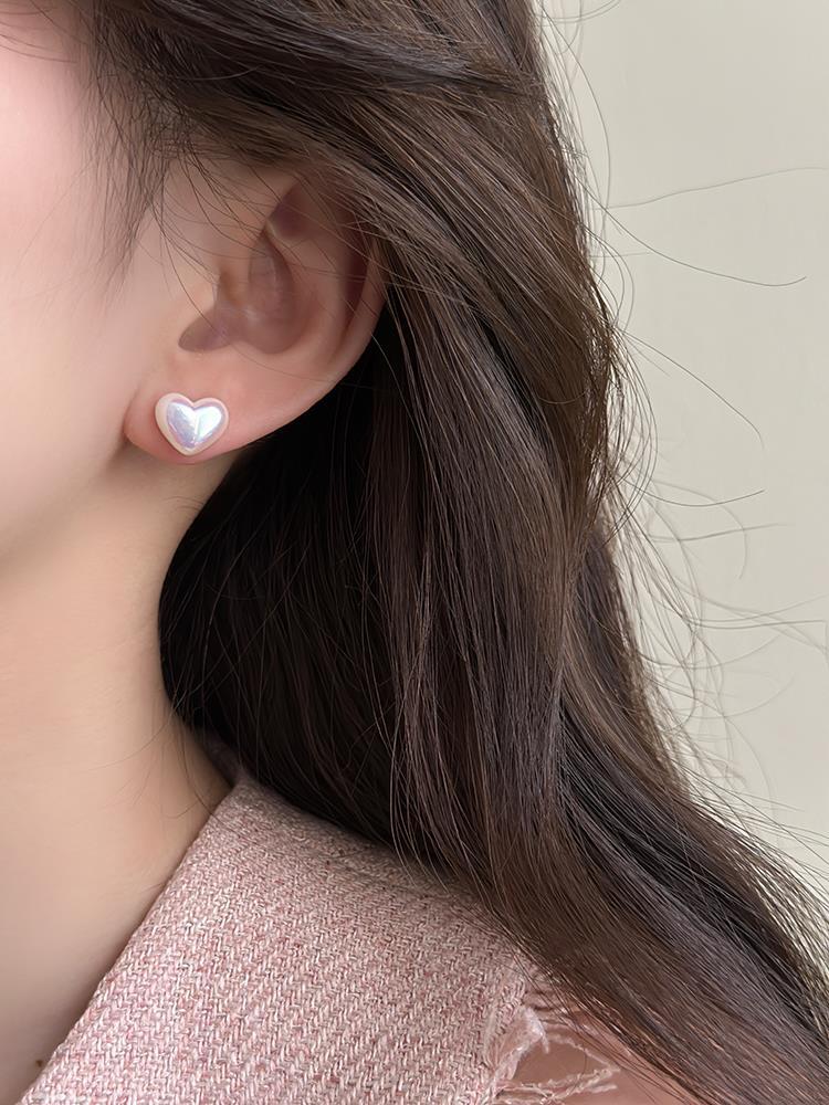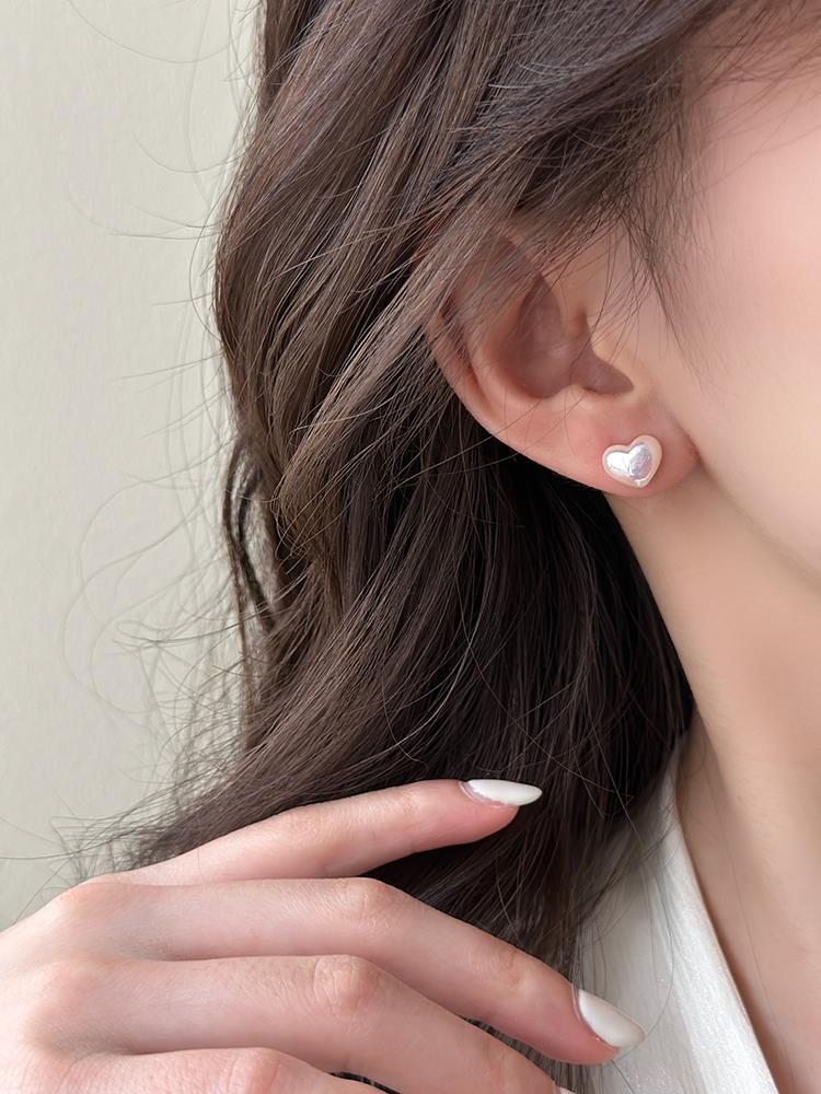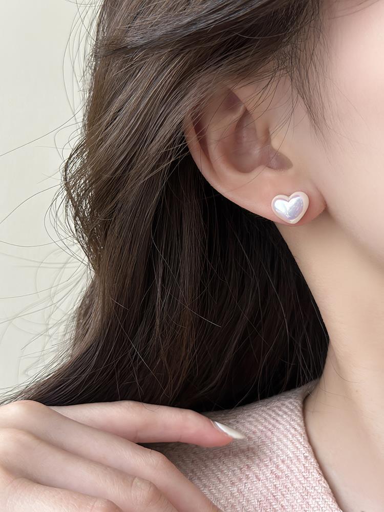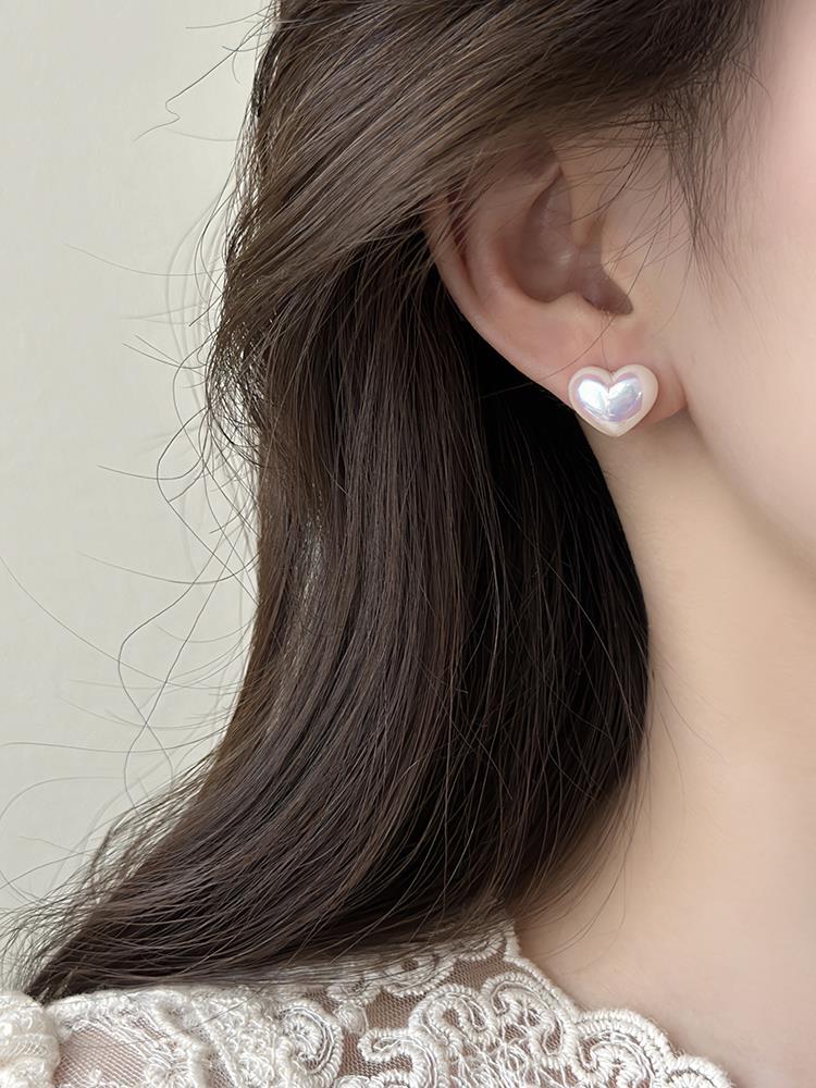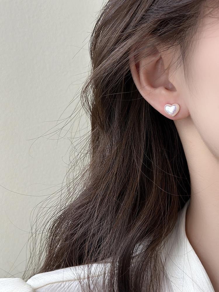 心形人鱼珠爱心耳钉高级感人鱼姬珍珠爱心耳钉女夏天2023新款爆款