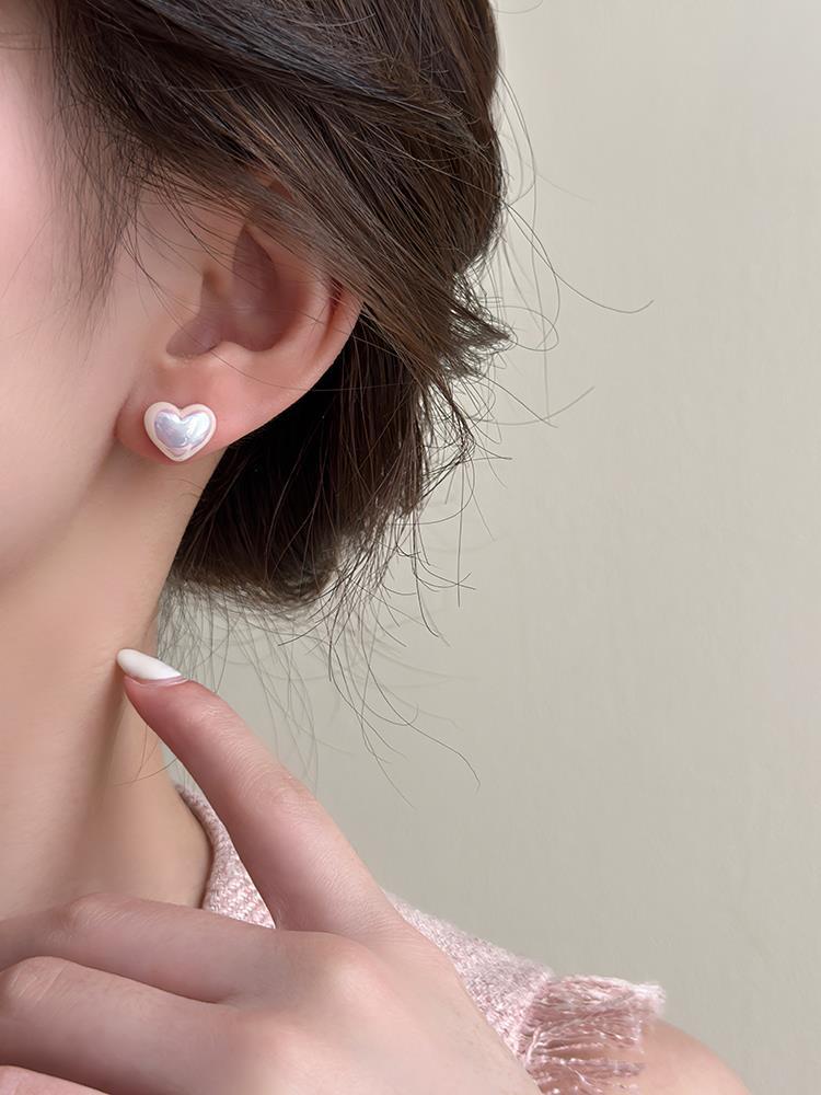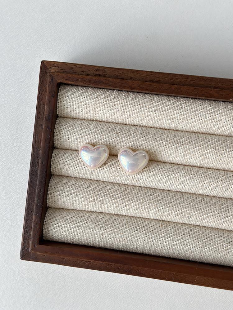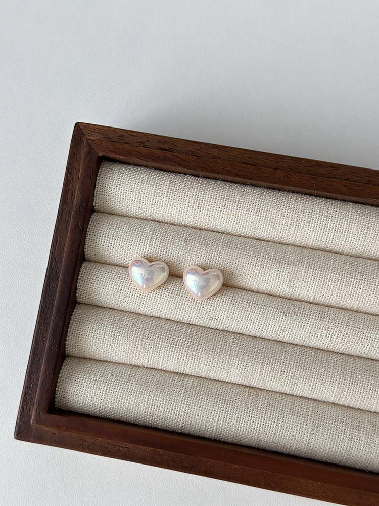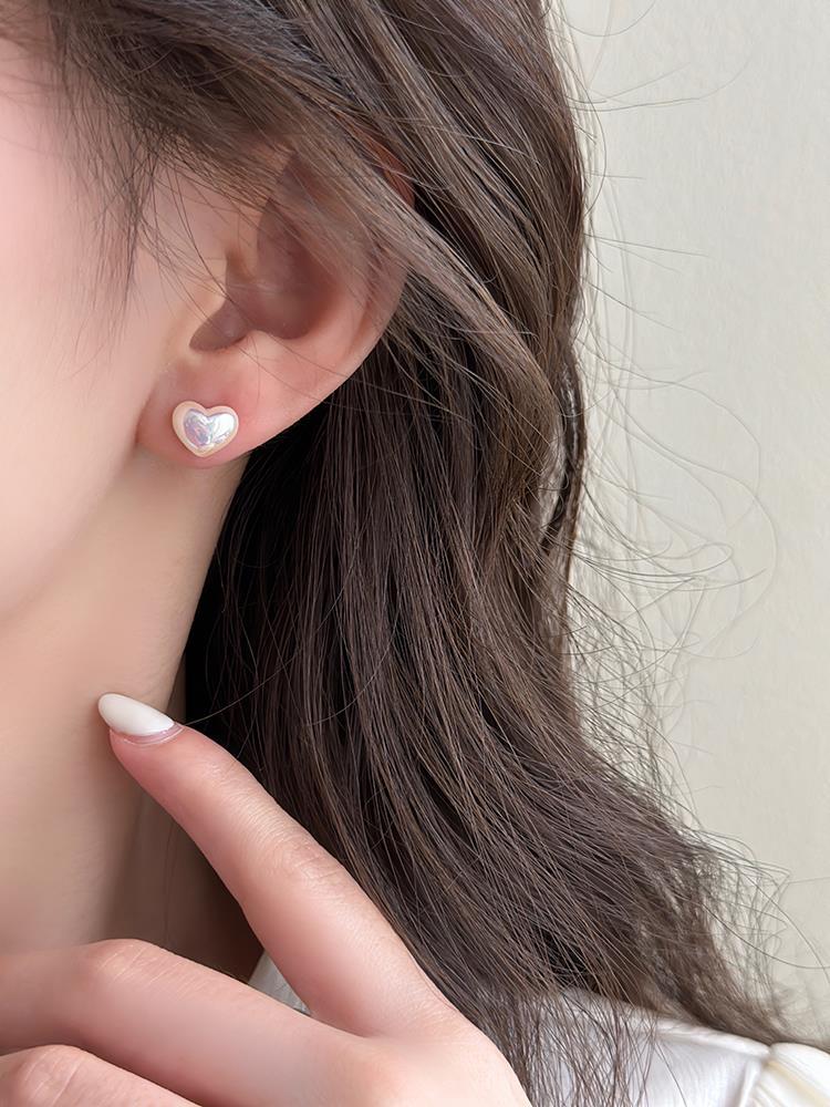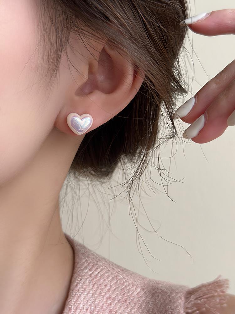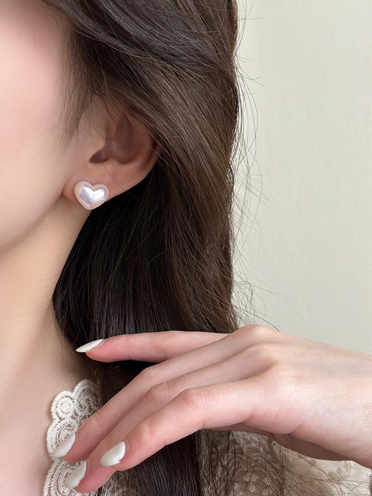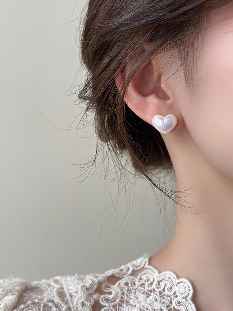 心形人鱼珠爱心耳钉高级感人鱼姬珍珠爱心耳钉女夏天2023新款爆款