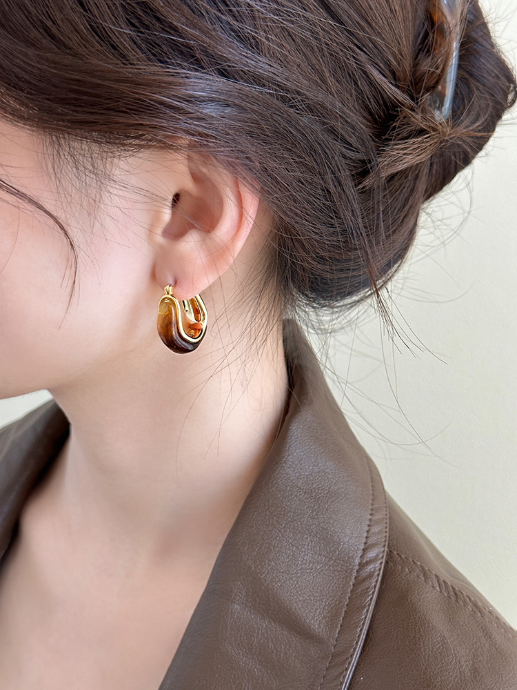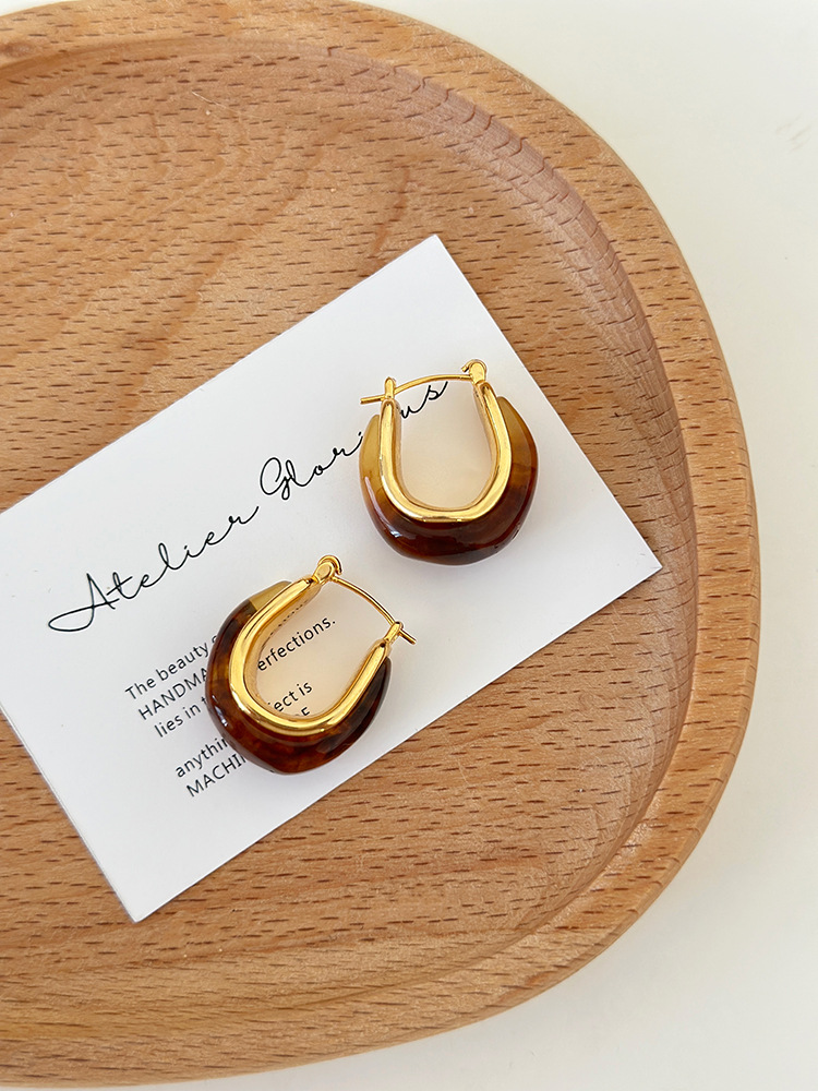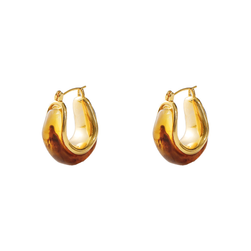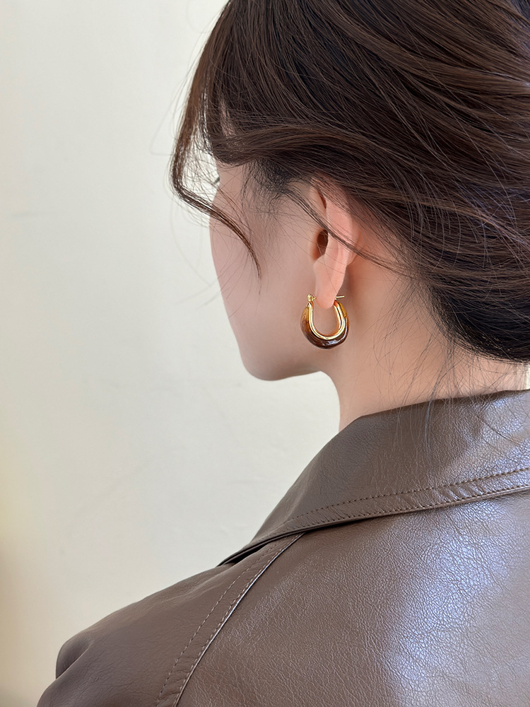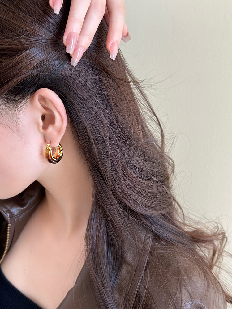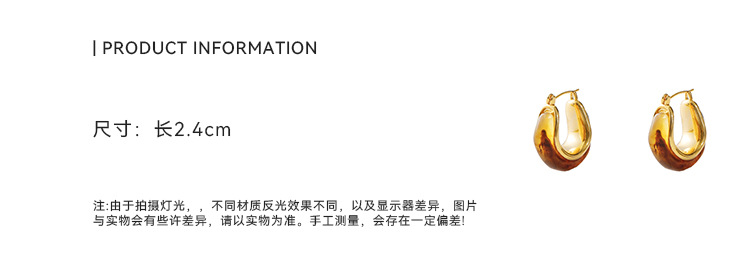 美拉德秋冬轻奢高级感耳环圈圈女圆形琥珀色耳饰琥珀色耳扣气质