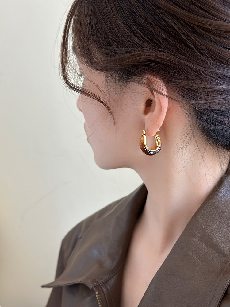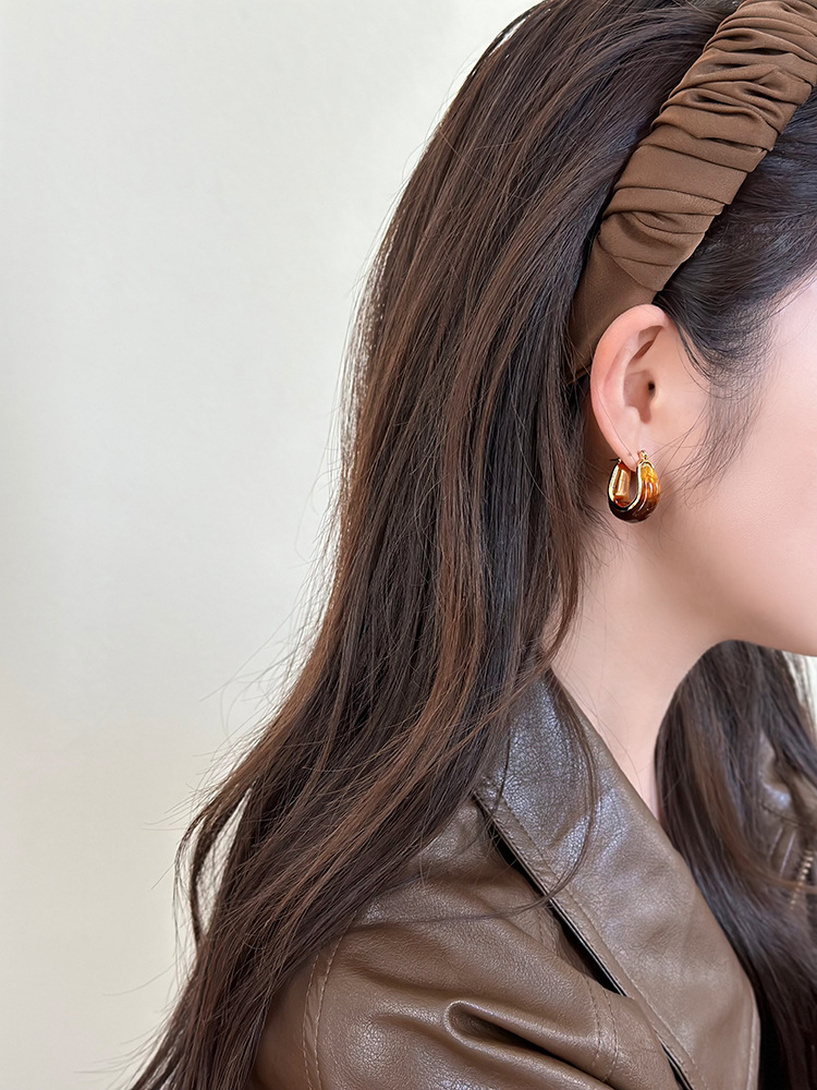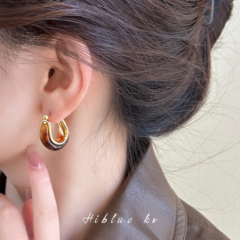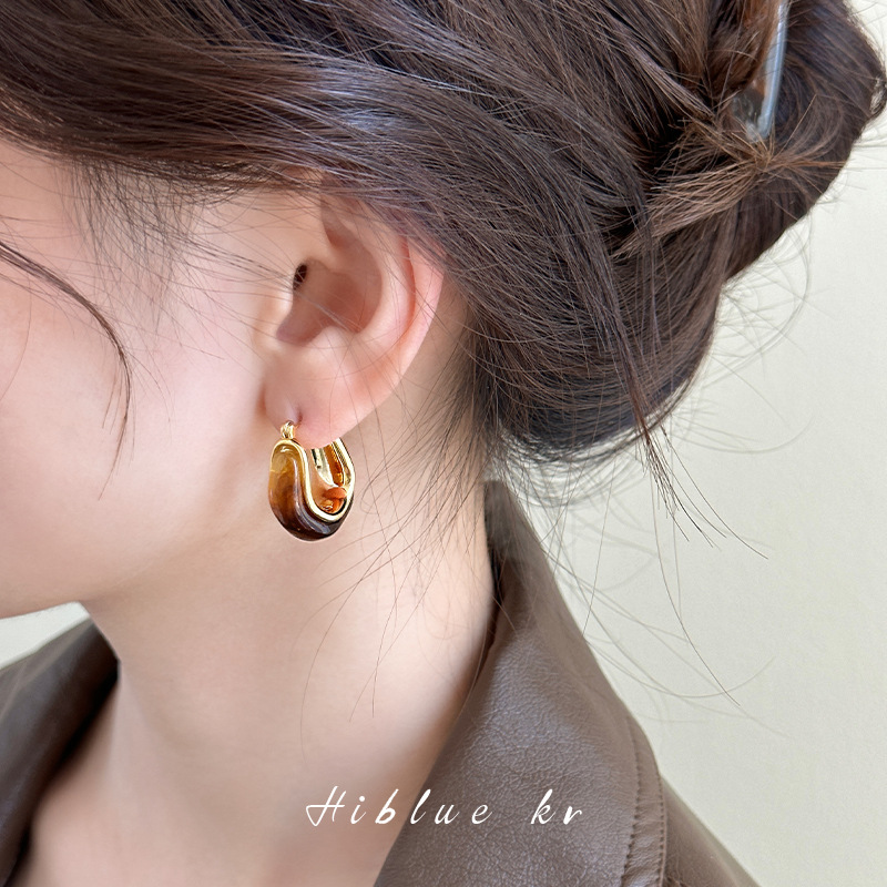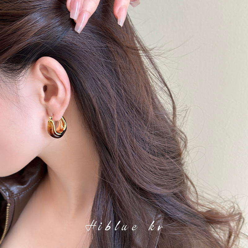 美拉德秋冬轻奢高级感耳环圈圈女圆形琥珀色耳饰琥珀色耳扣气质