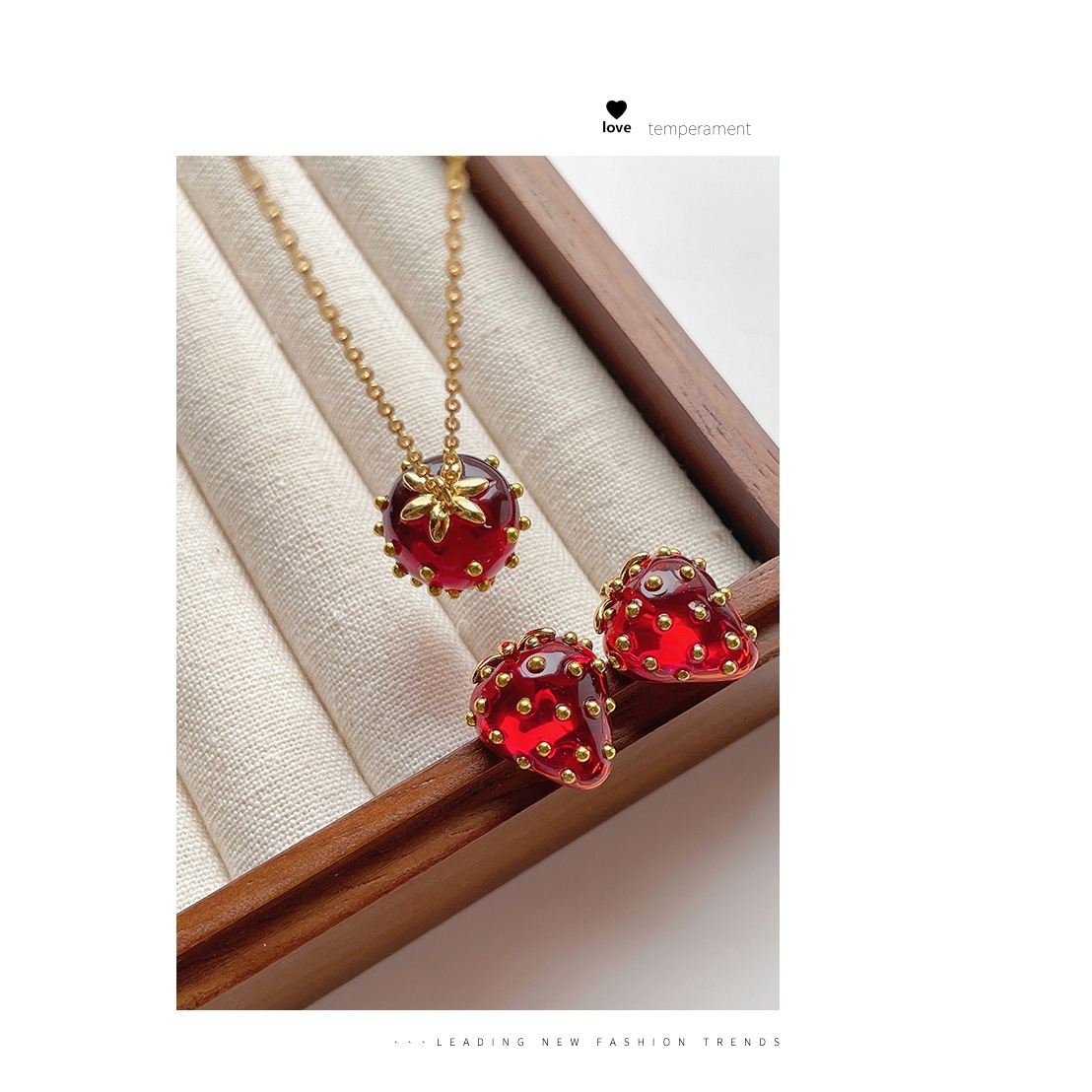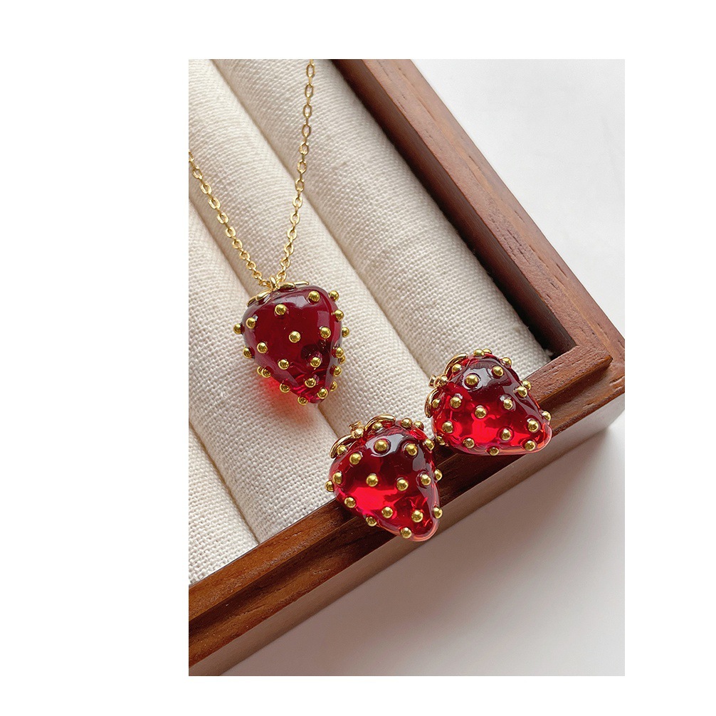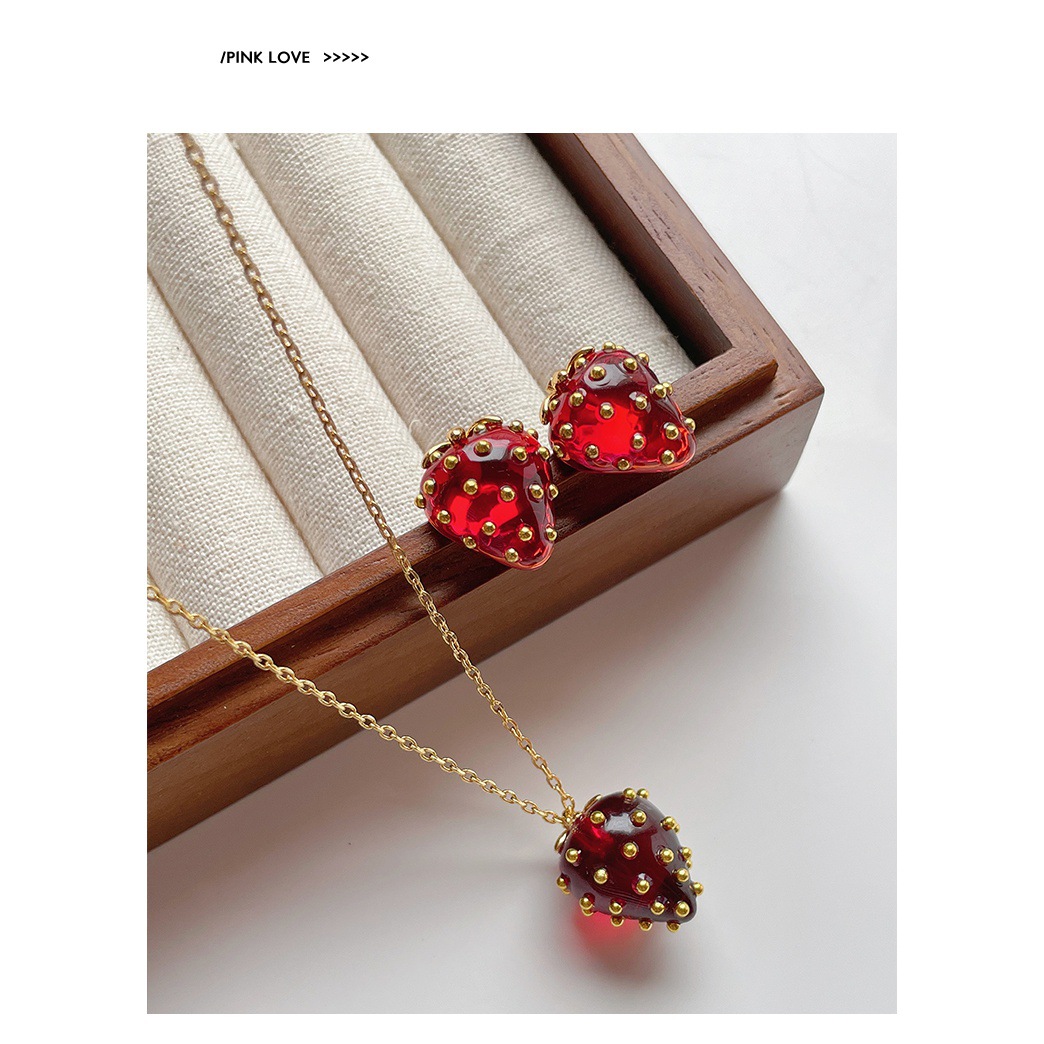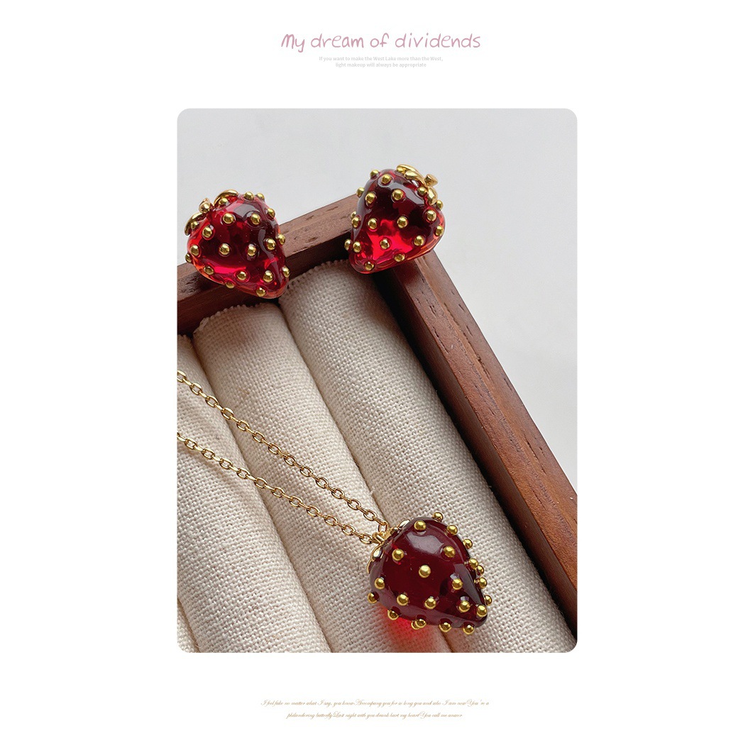 甜美可爱草莓耳钉项链温柔设计感简约树脂耳饰水果毛衣链
