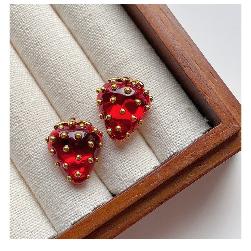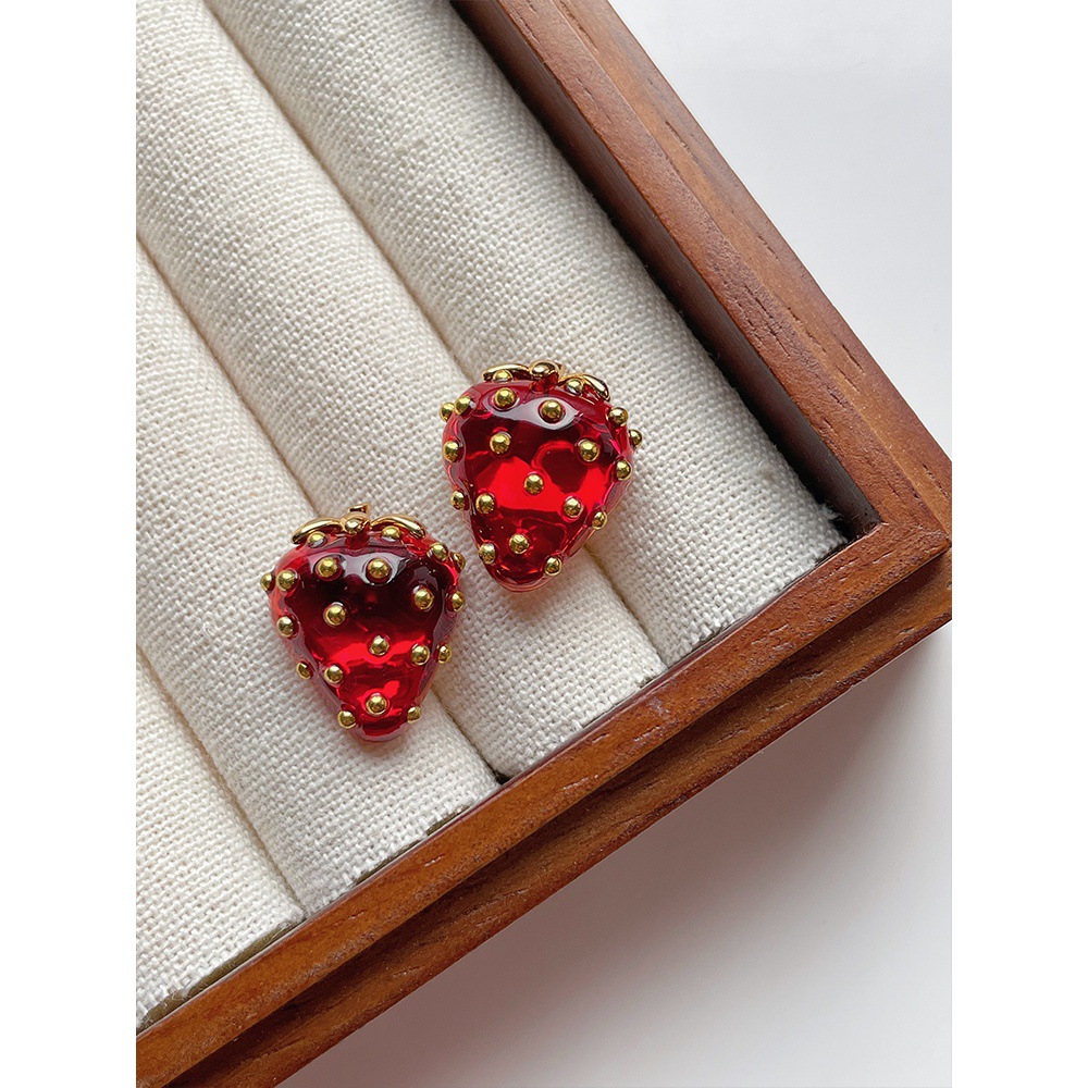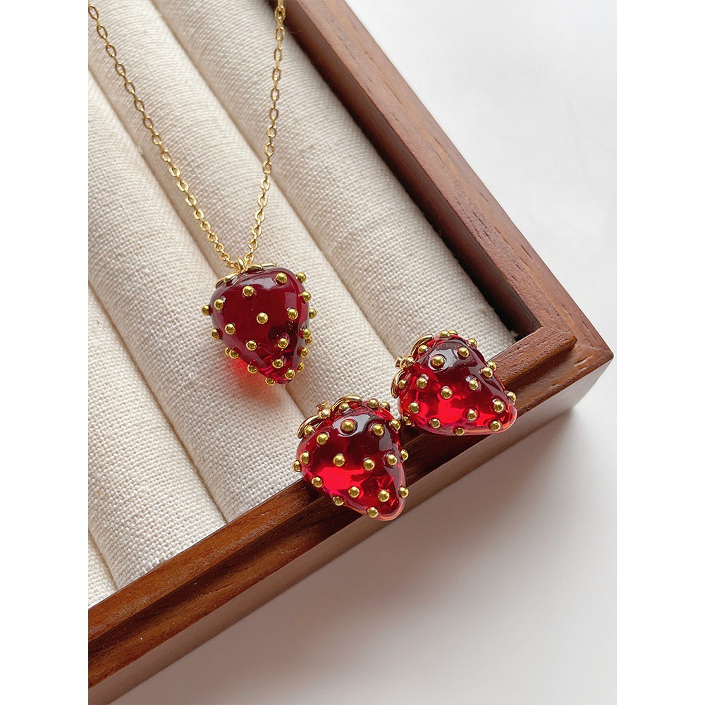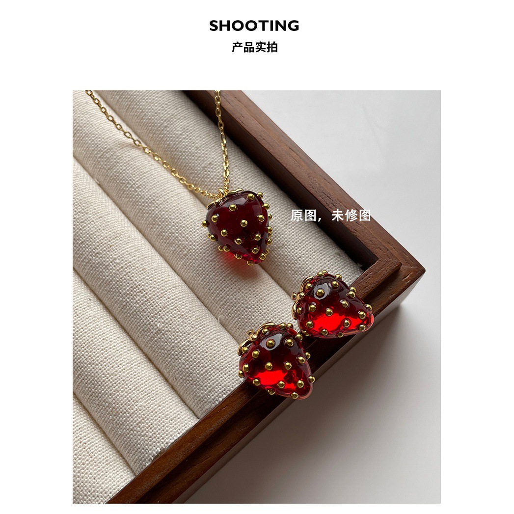甜美可爱草莓耳钉项链温柔设计感简约树脂耳饰水果毛衣链
