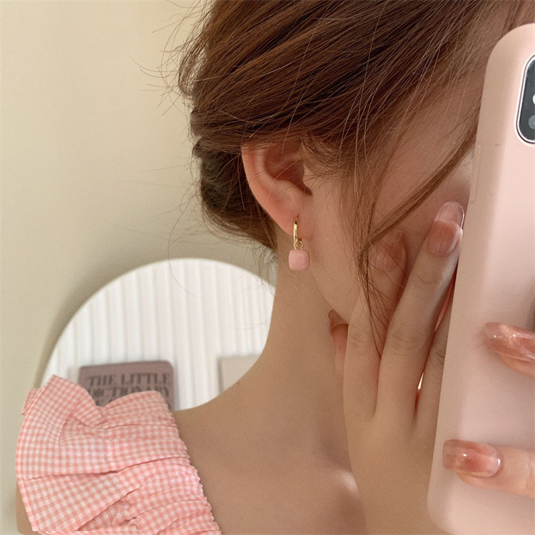 初春新款白色粉色滴油高级感滴釉一款两戴耳扣耳环女轻奢耳圈女