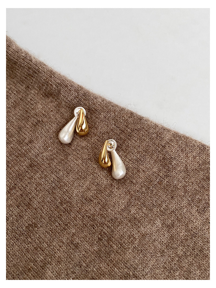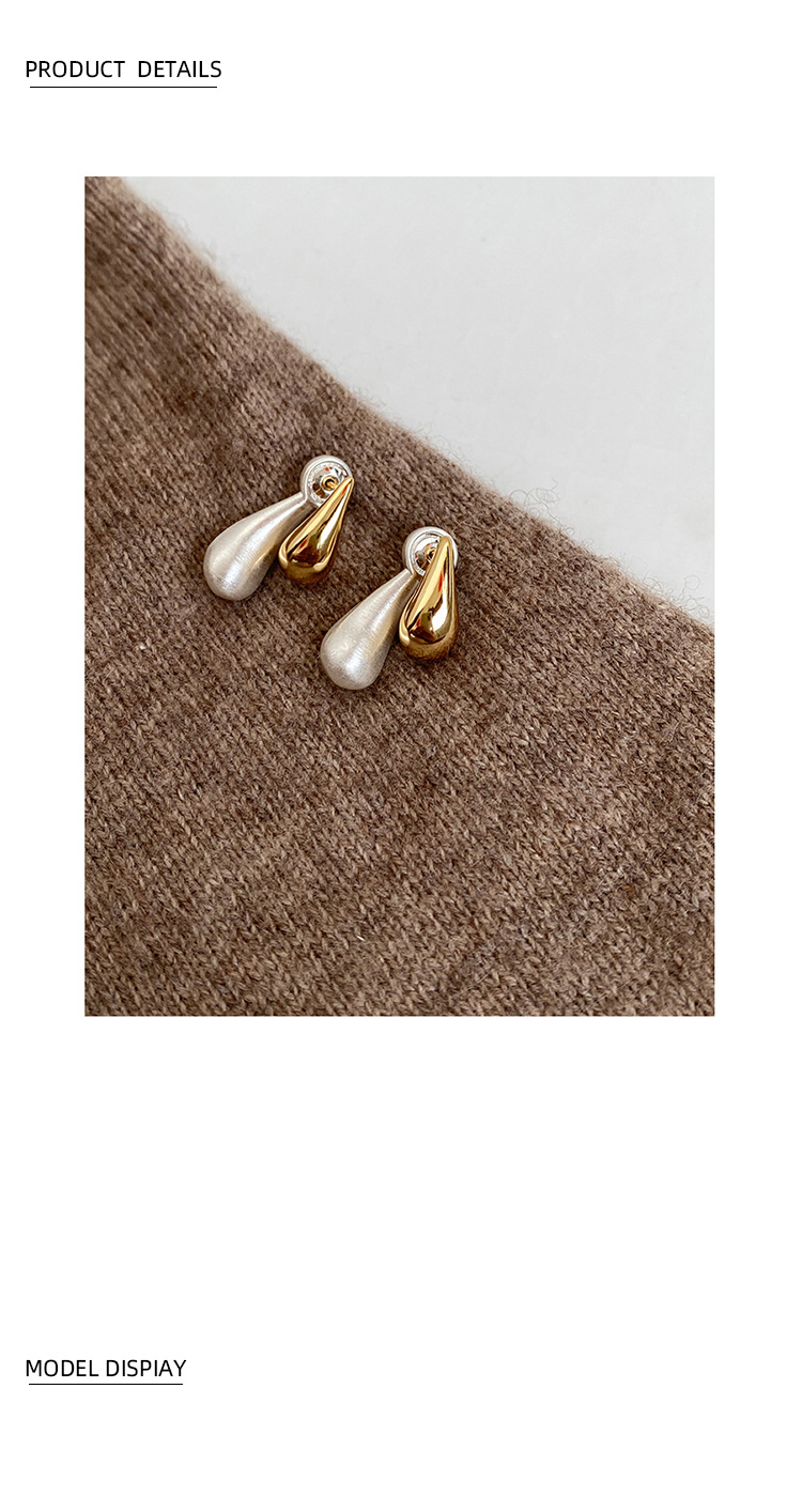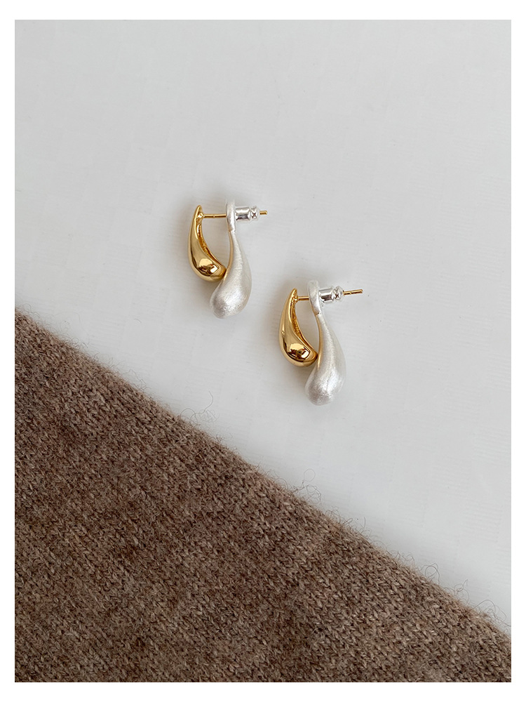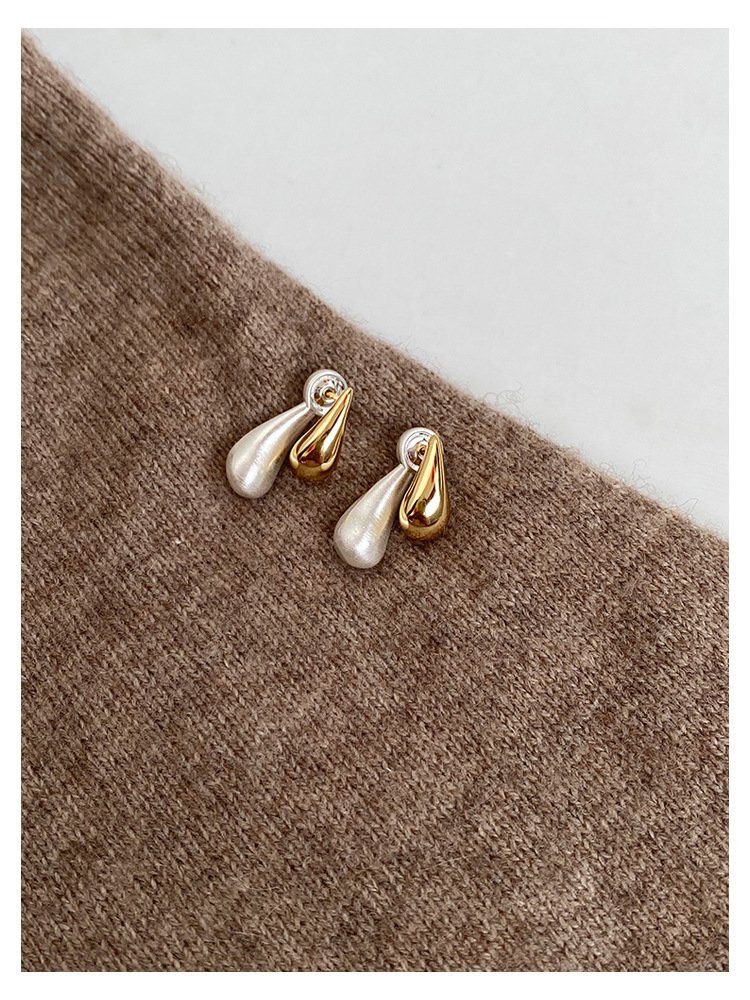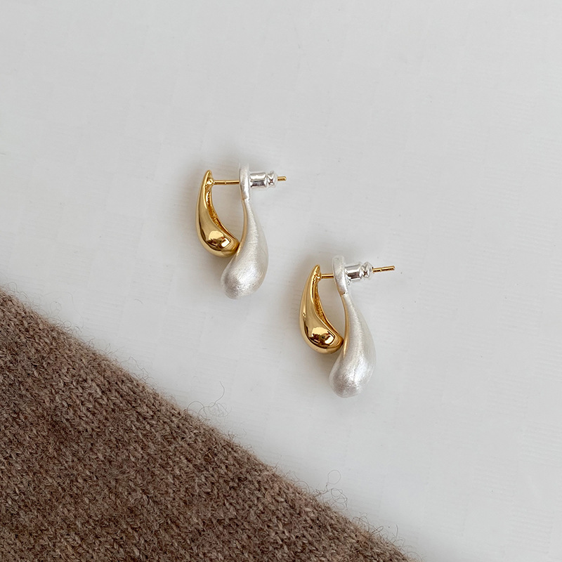 双色水滴S925银针耳环简单设计感个性百搭耳钉可两戴金银双拼耳饰