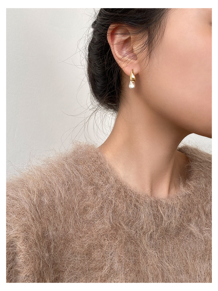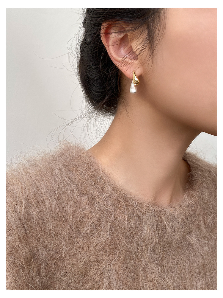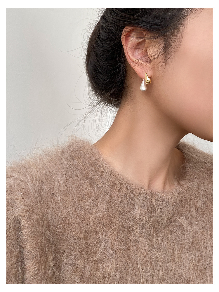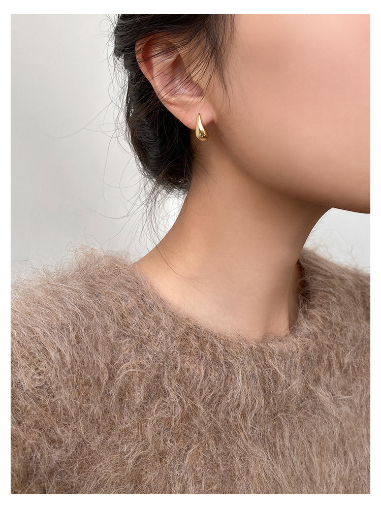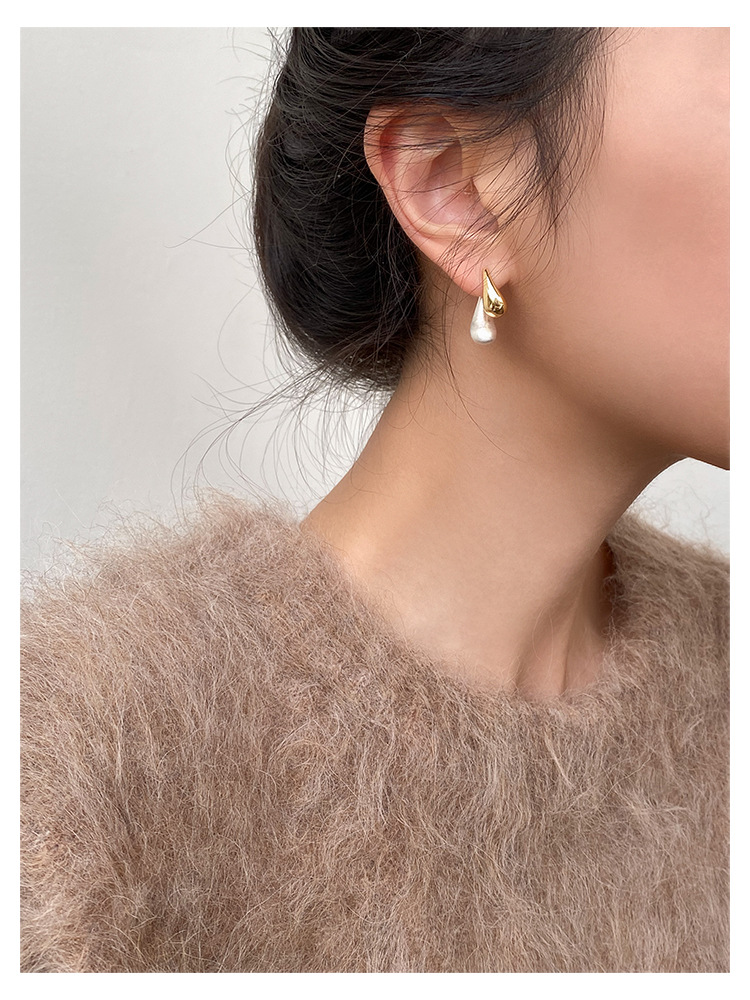 双色水滴S925银针耳环简单设计感个性百搭耳钉可两戴金银双拼耳饰