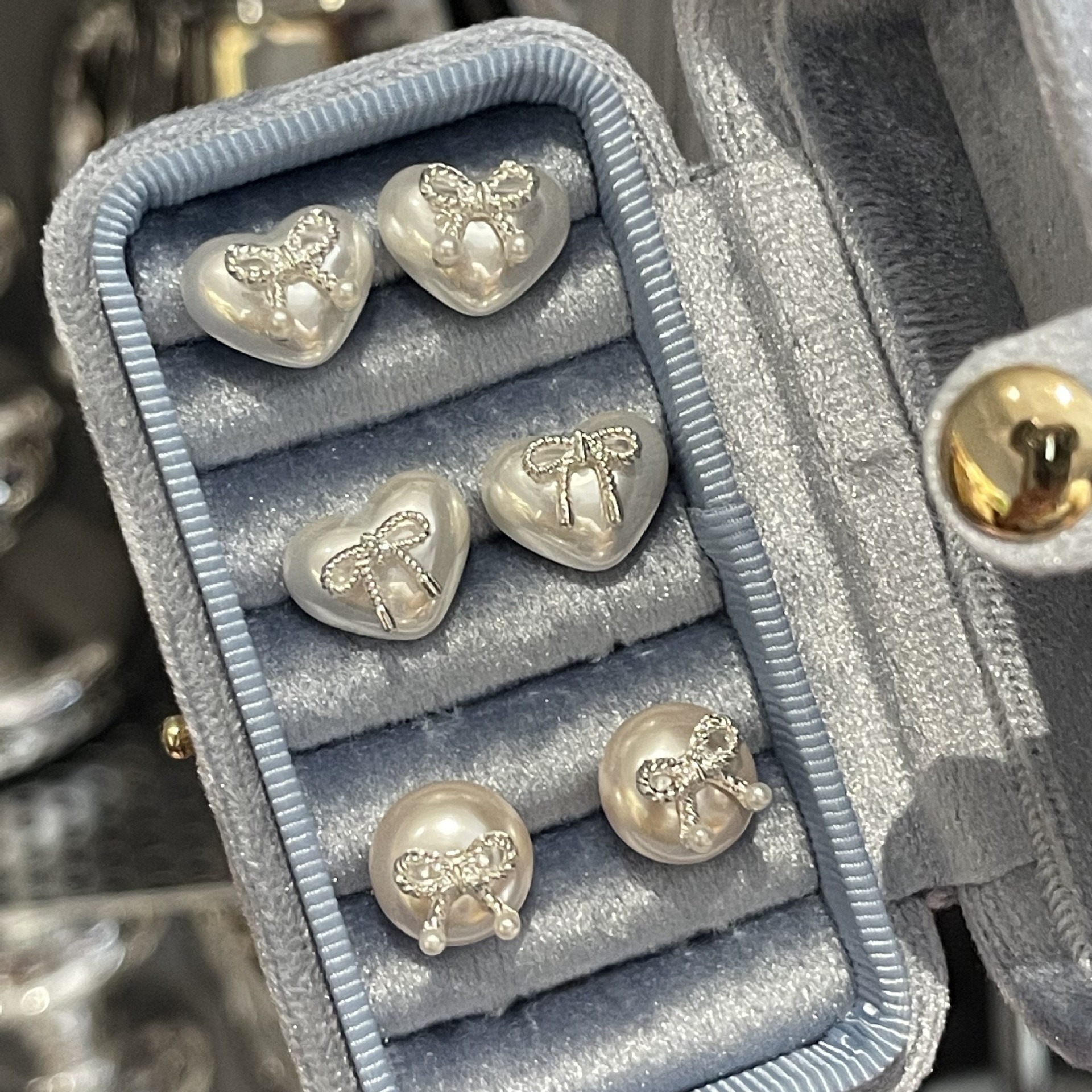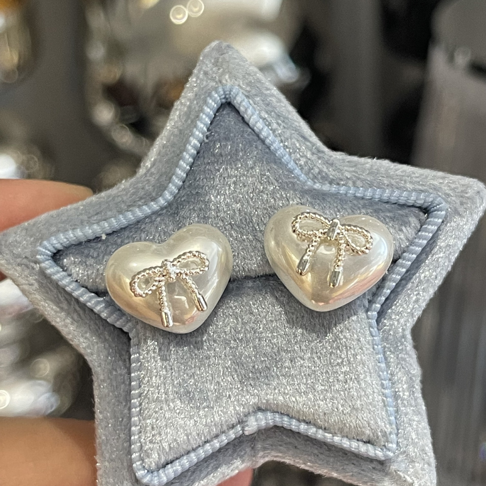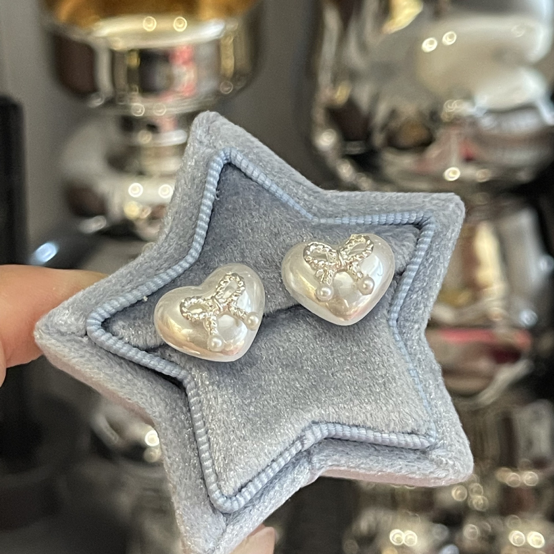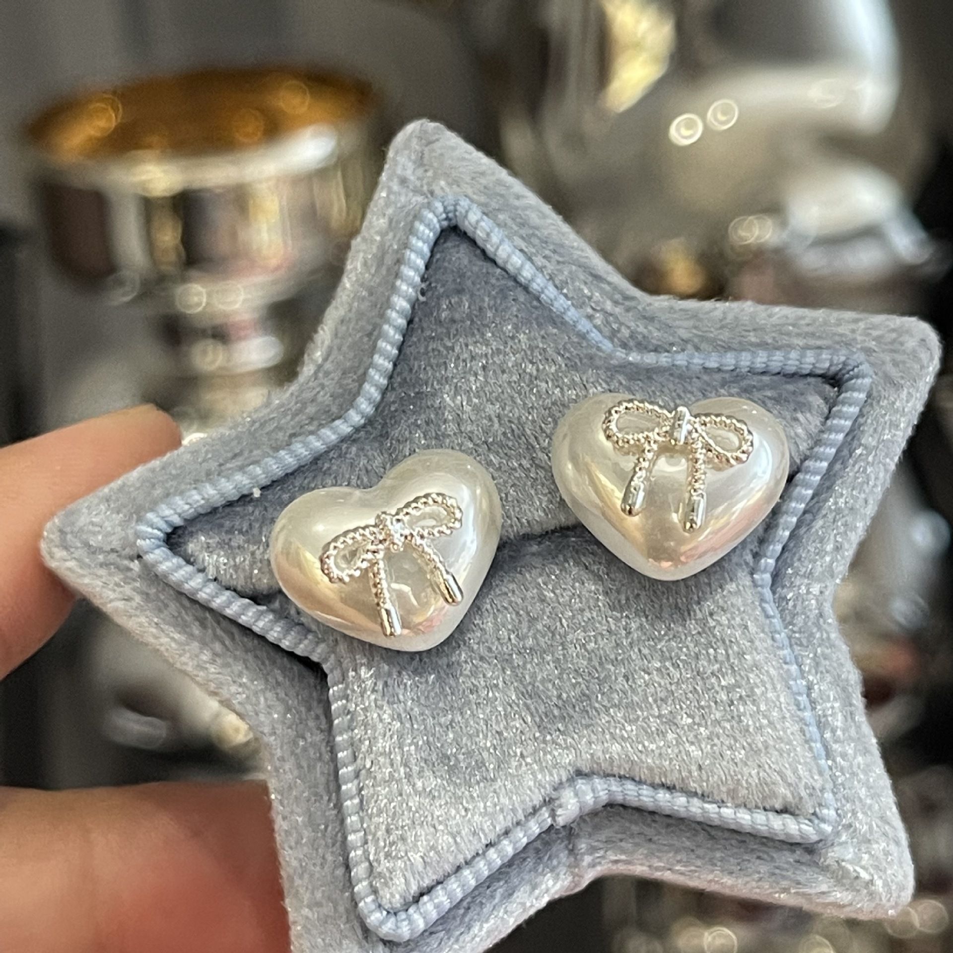 心形珍珠蝴蝶结小耳钉S925银针淑女气质百搭小巧可爱温柔气质精致