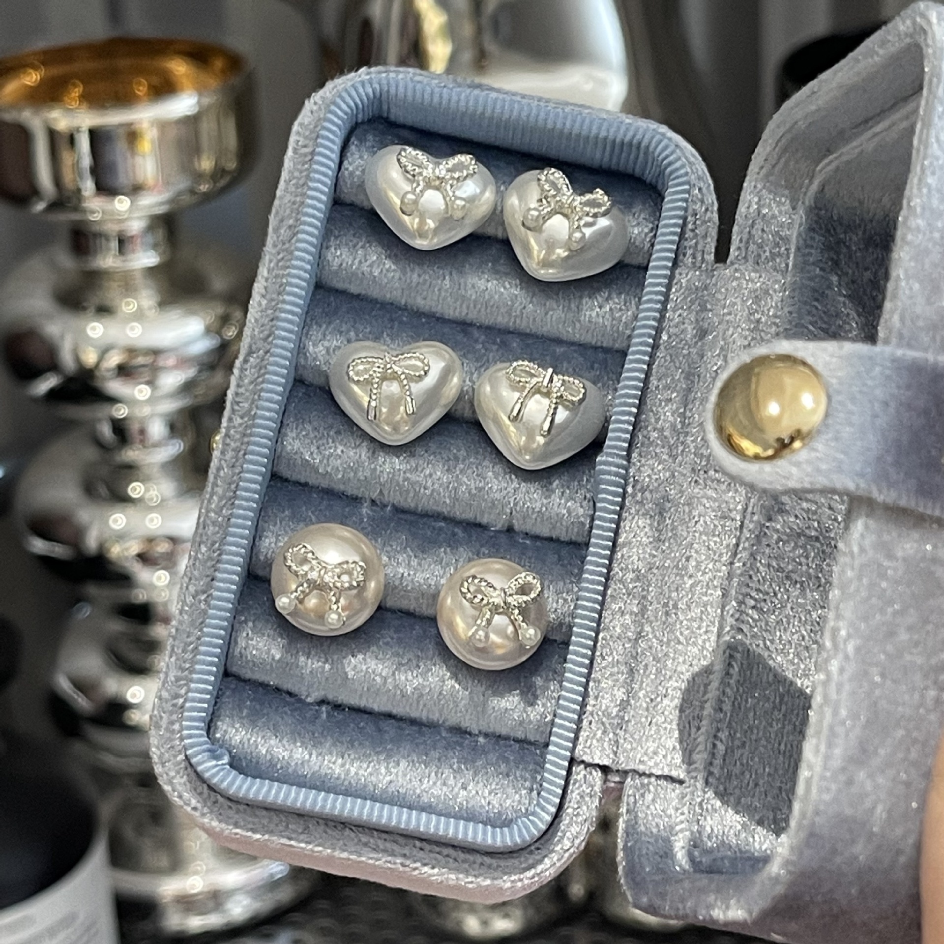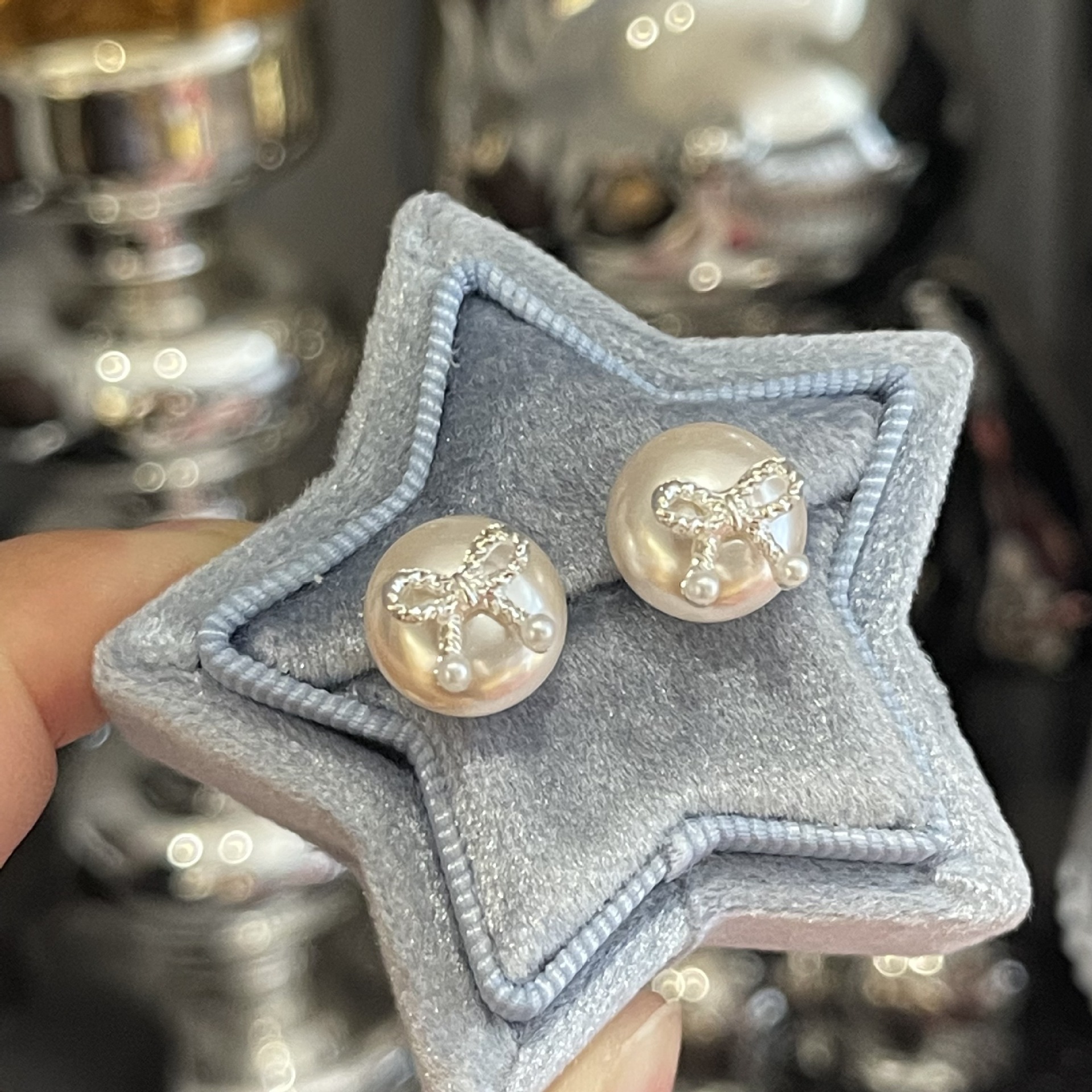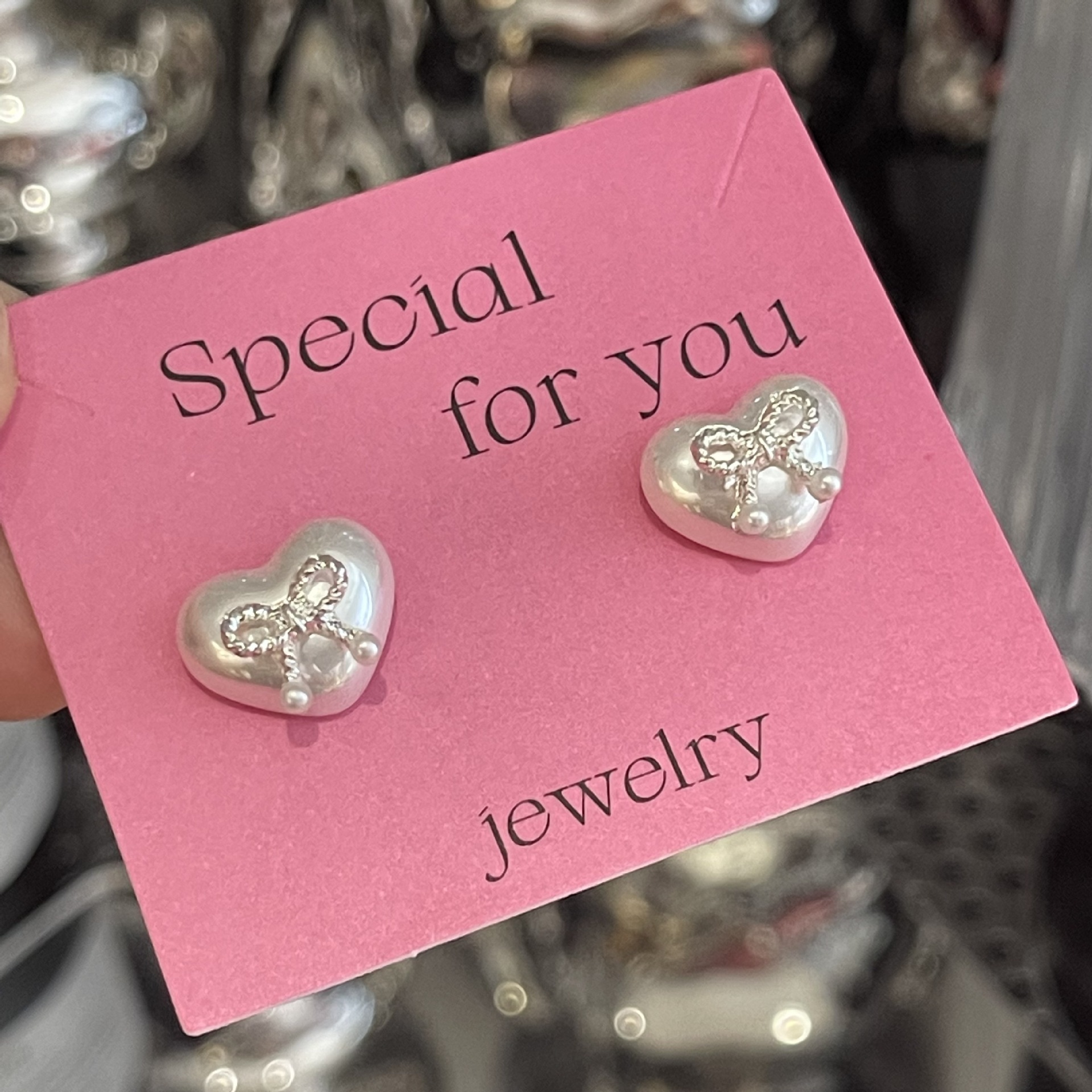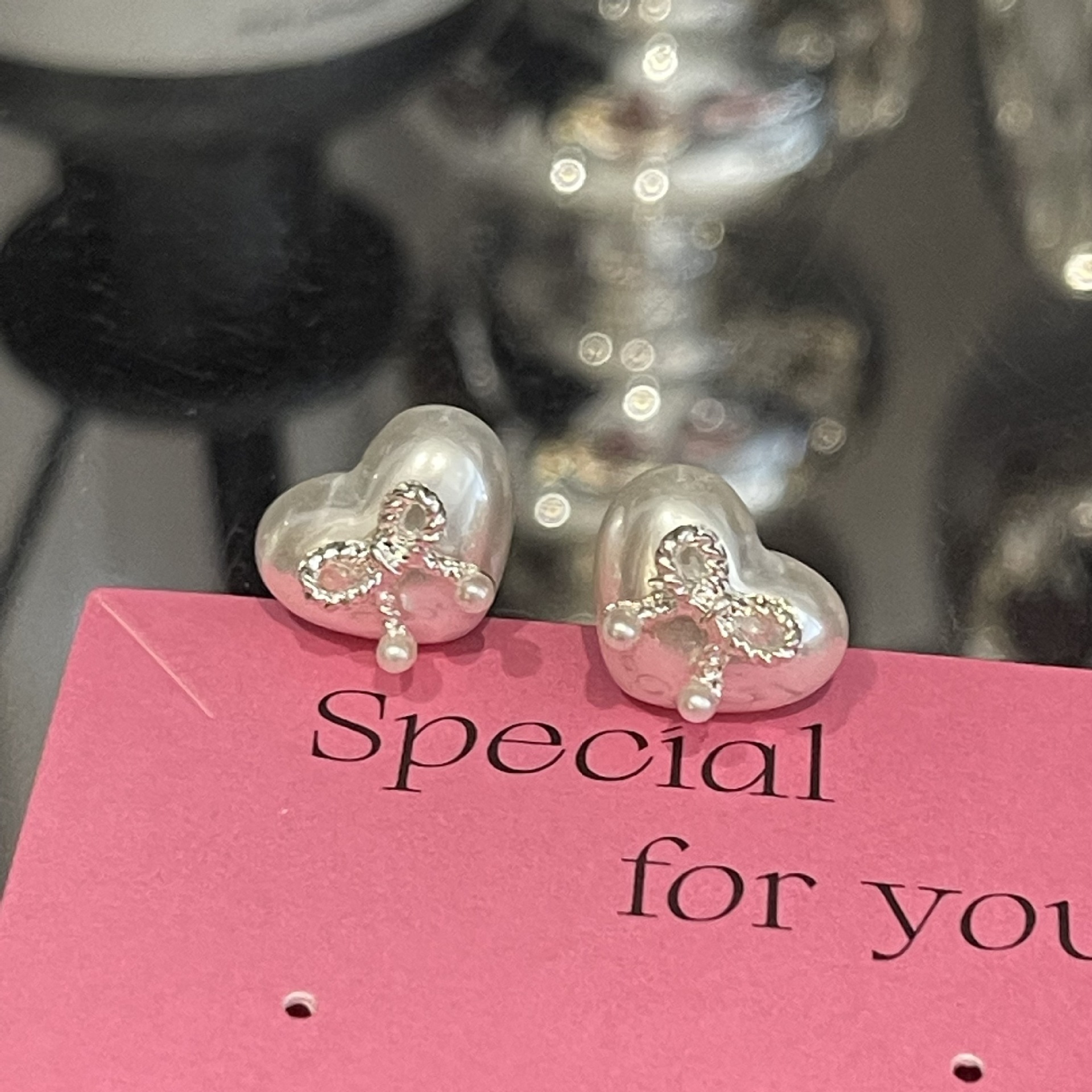 心形珍珠蝴蝶结小耳钉S925银针淑女气质百搭小巧可爱温柔气质精致