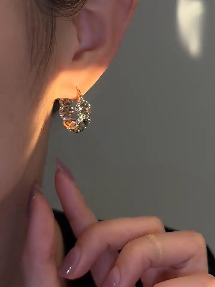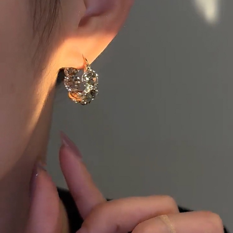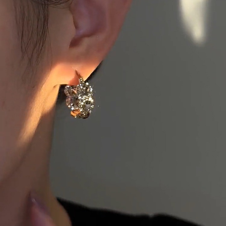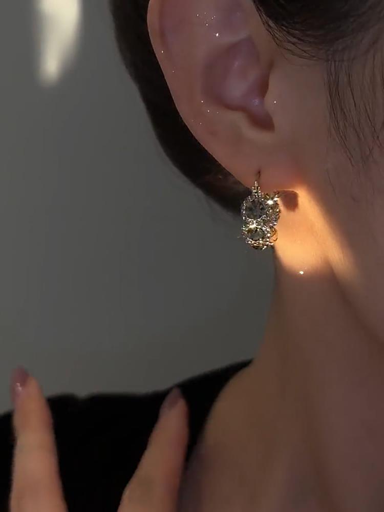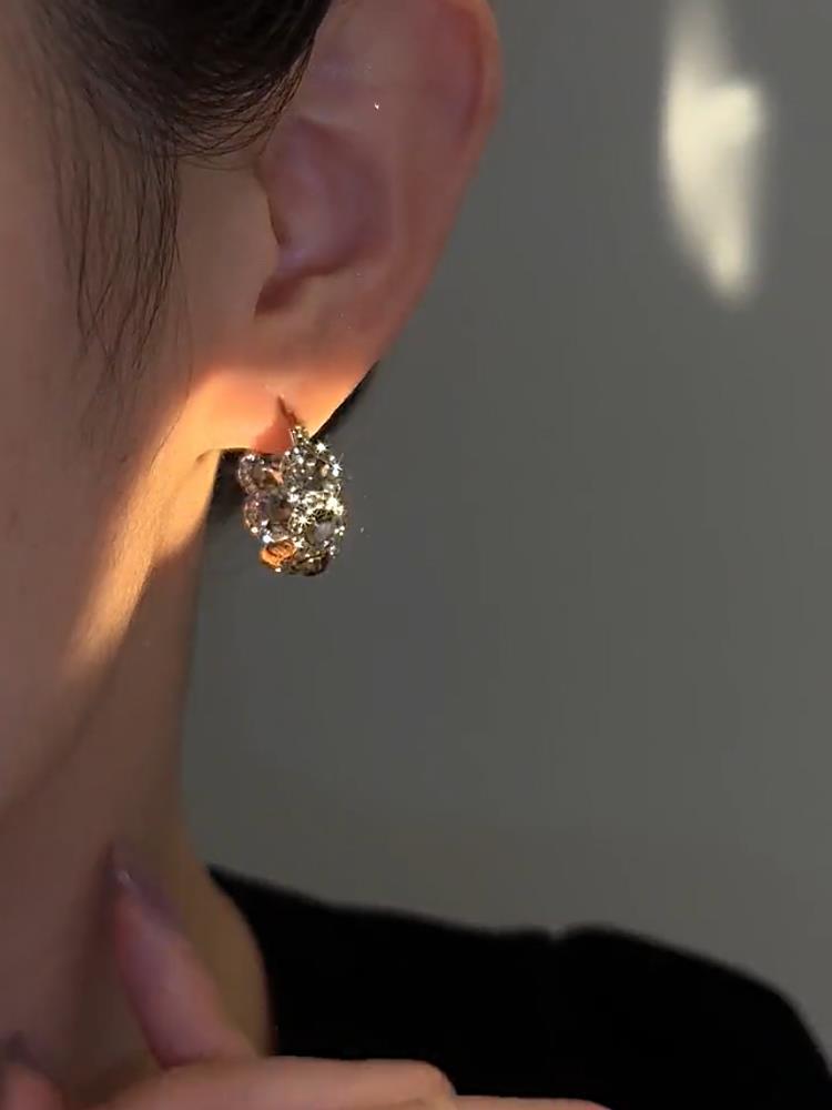 灰钻耳环爆款锆石圆圈耳扣耳环小众设计高级感轻奢气质百搭耳饰女