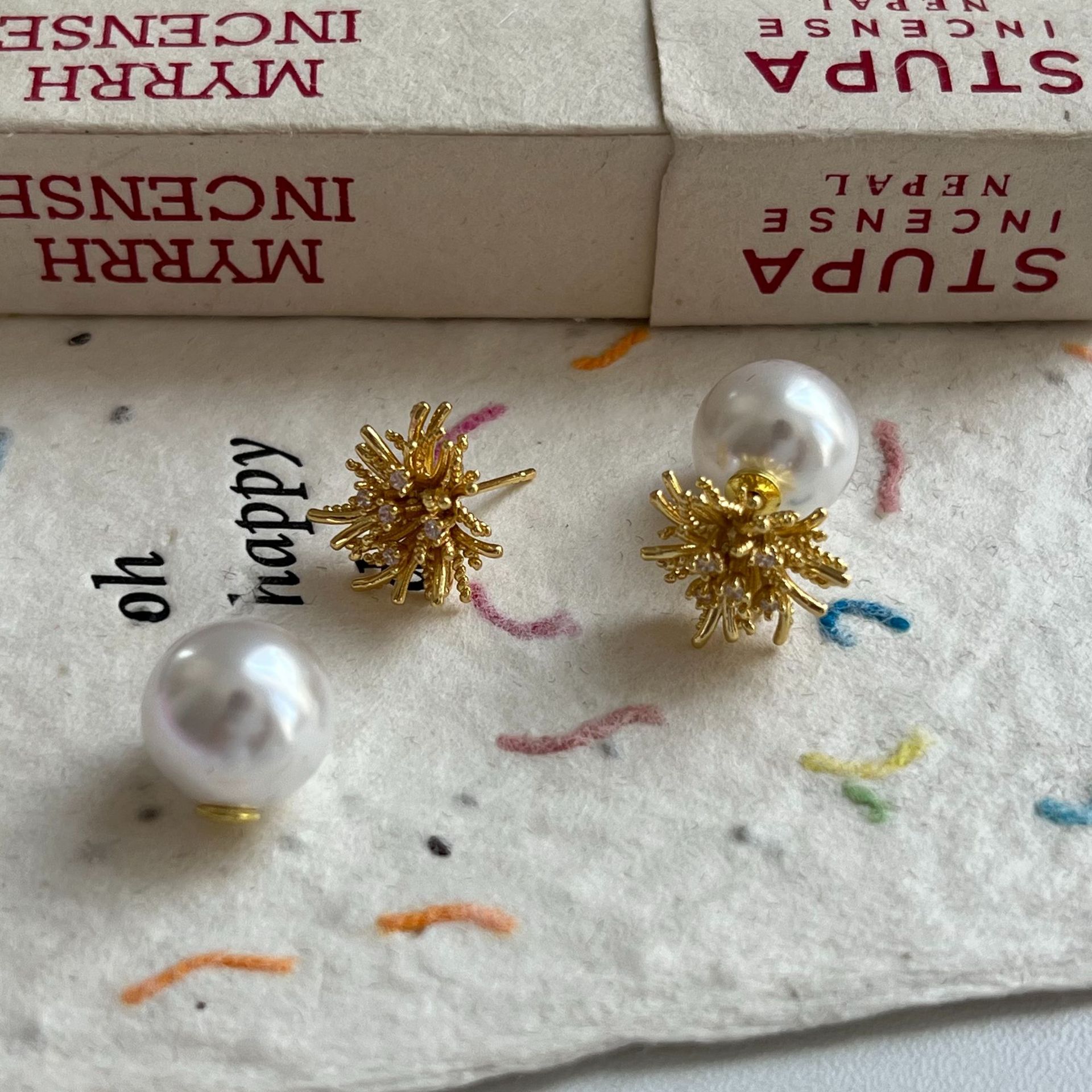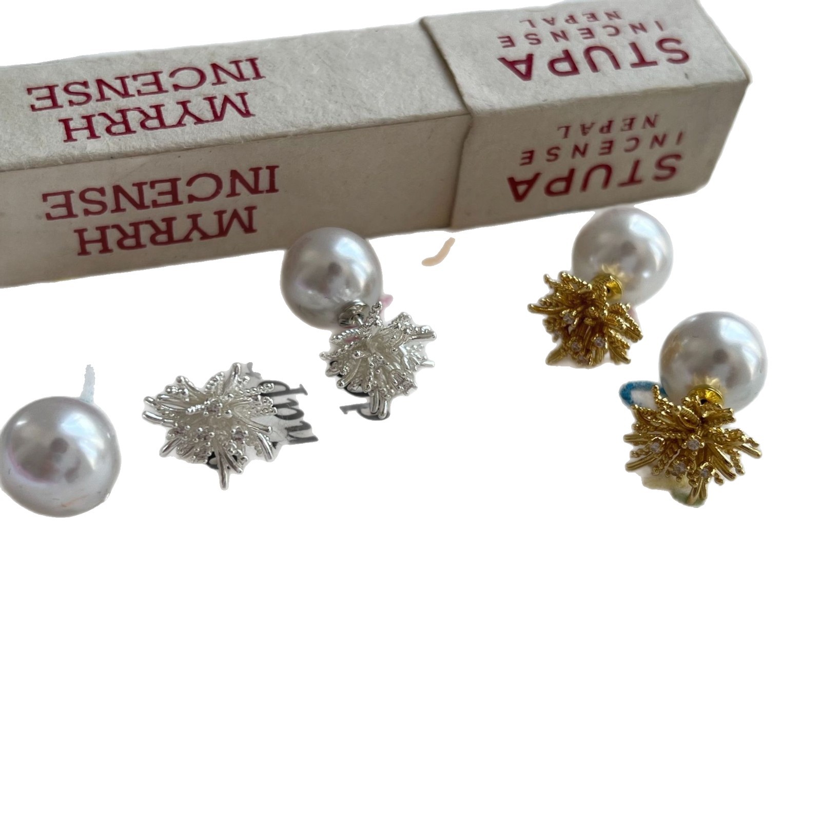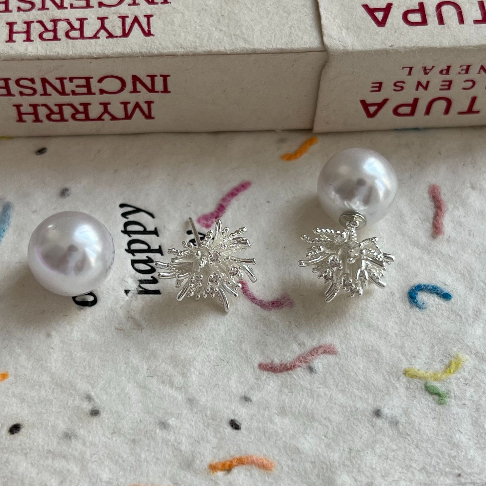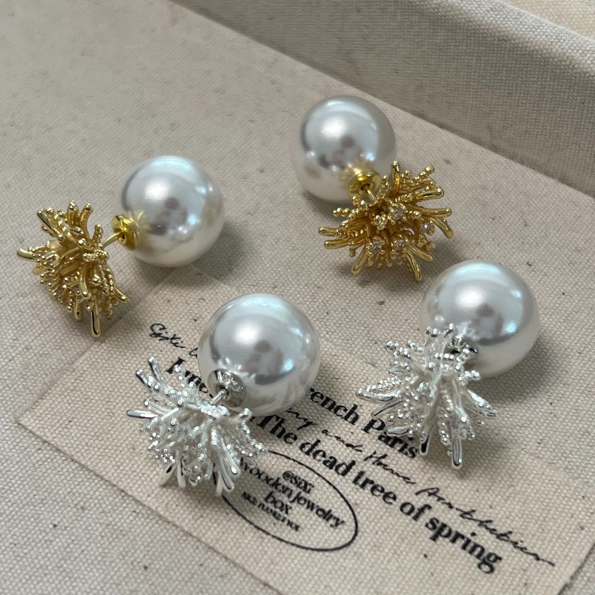 法式轻奢微镶锆石烟花珍珠耳钉s925银针一款两戴百搭耳环耳饰代发