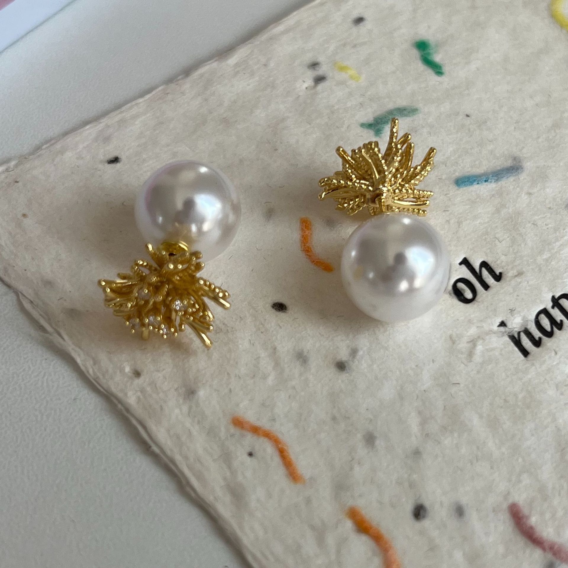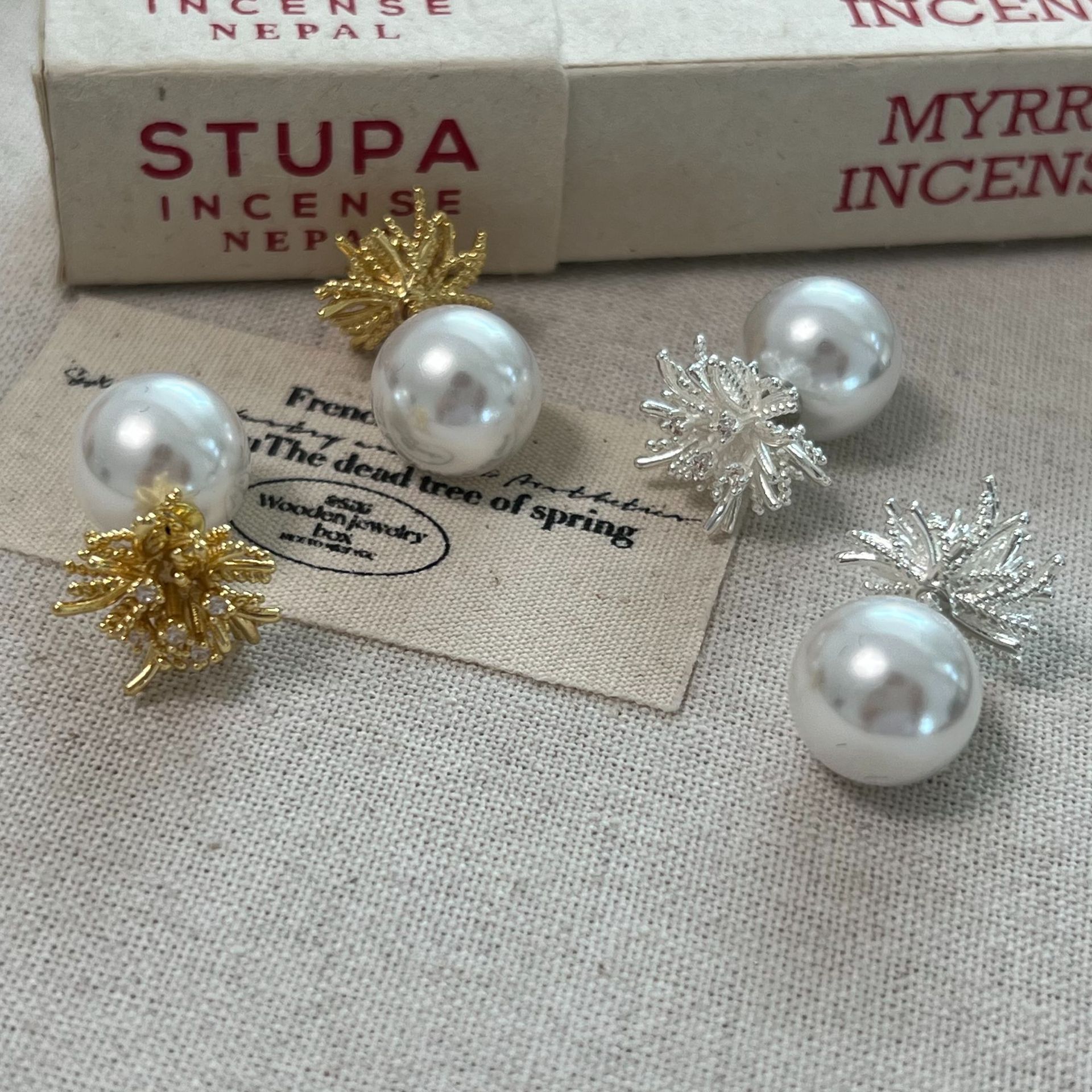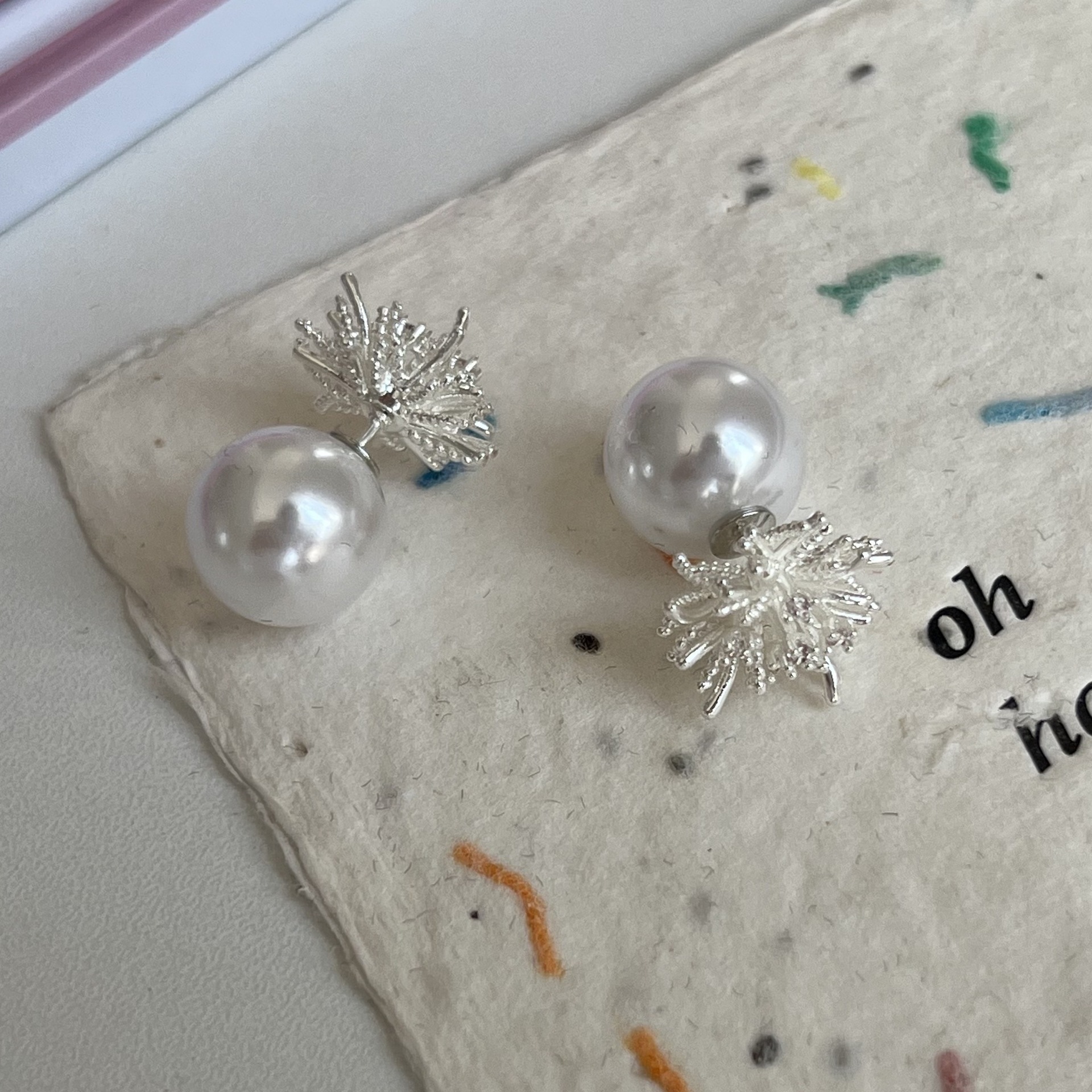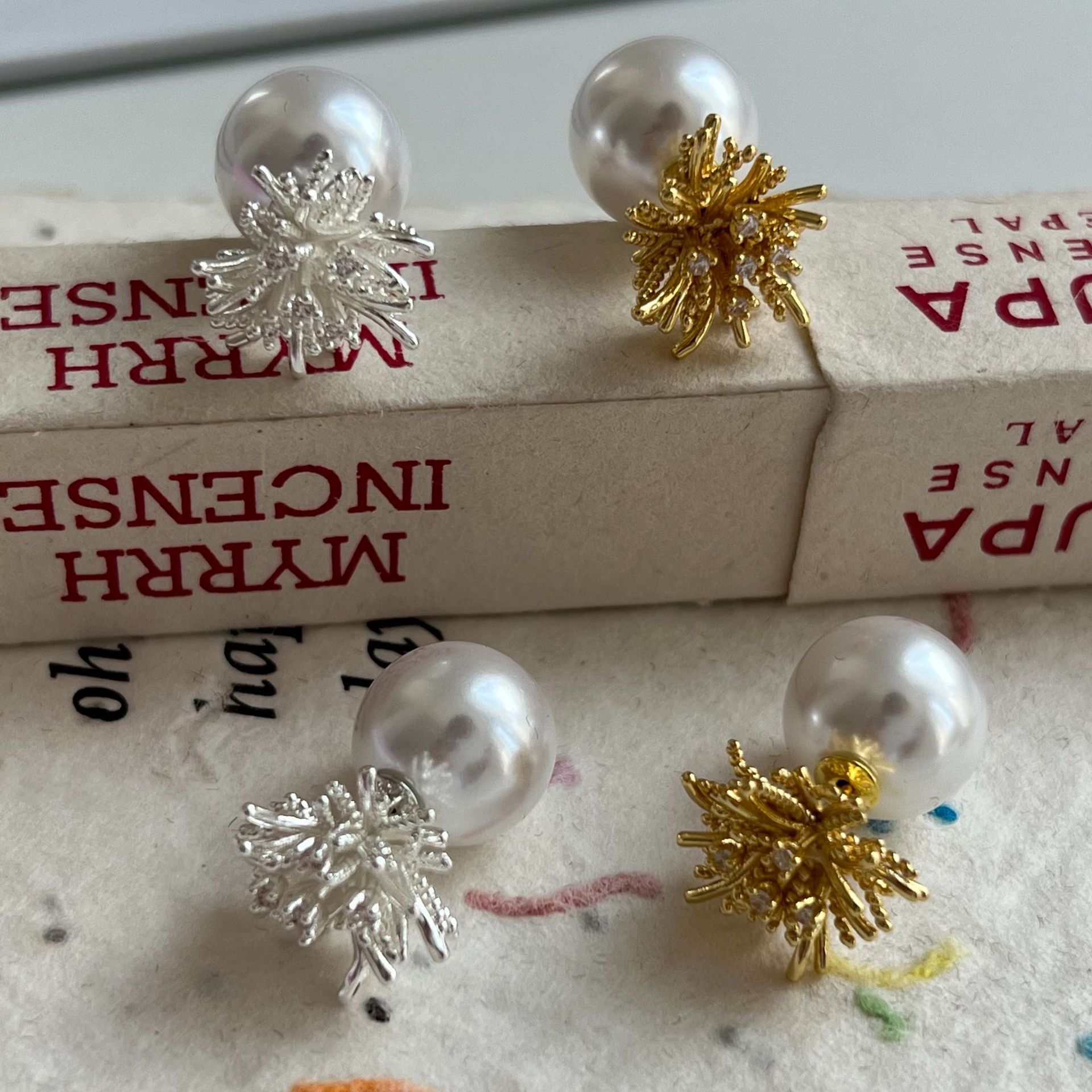 法式轻奢微镶锆石烟花珍珠耳钉s925银针一款两戴百搭耳环耳饰代发
