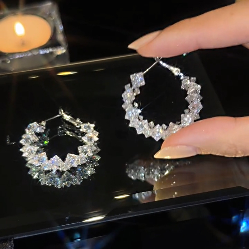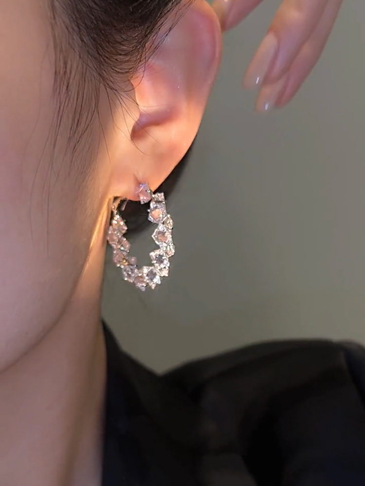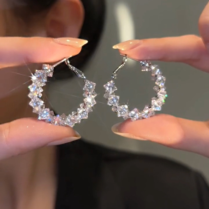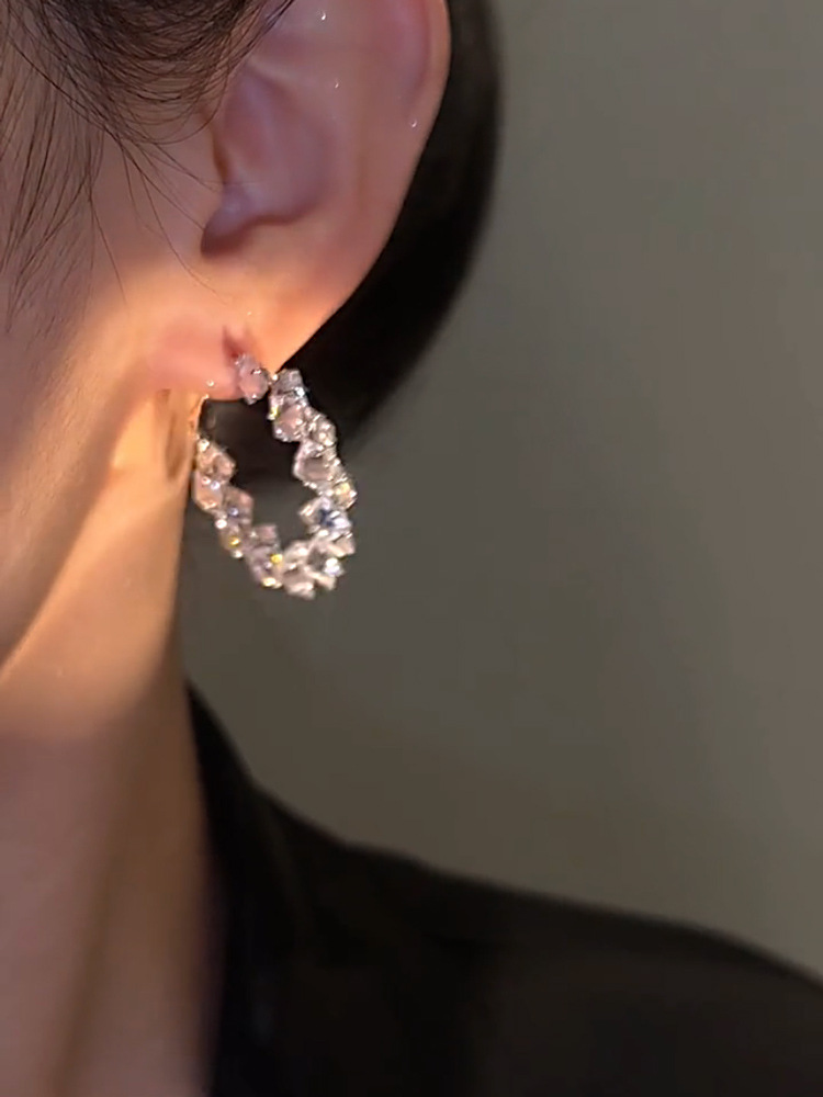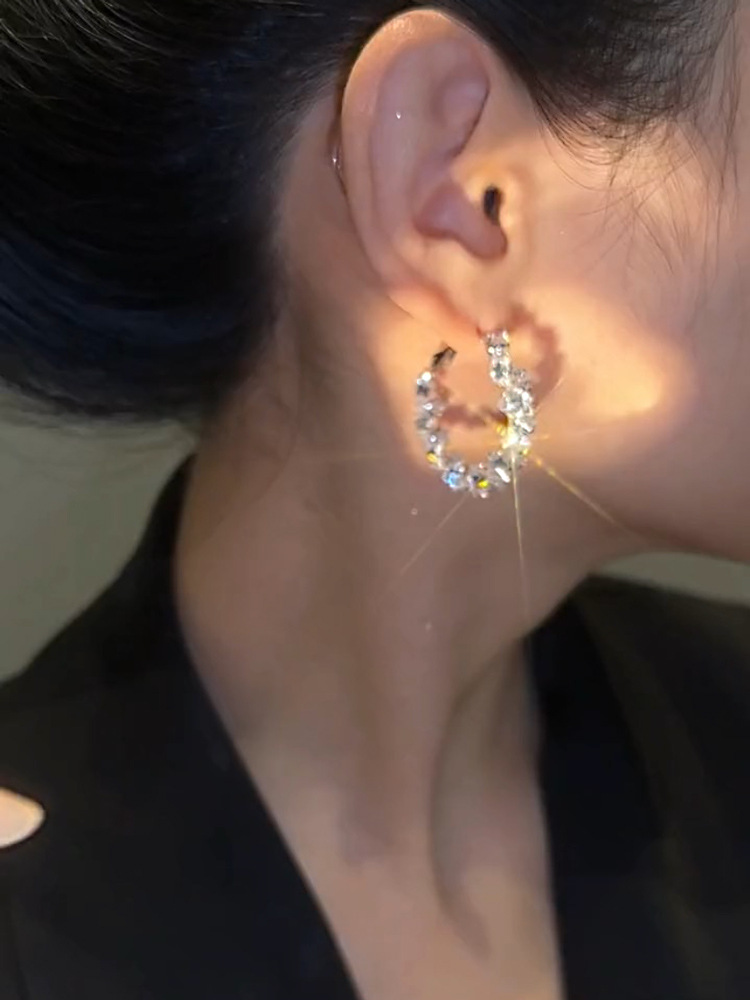 精致锆石水晶耳圈S925银针小众设计高级感圆圈耳环女潮水晶耳环